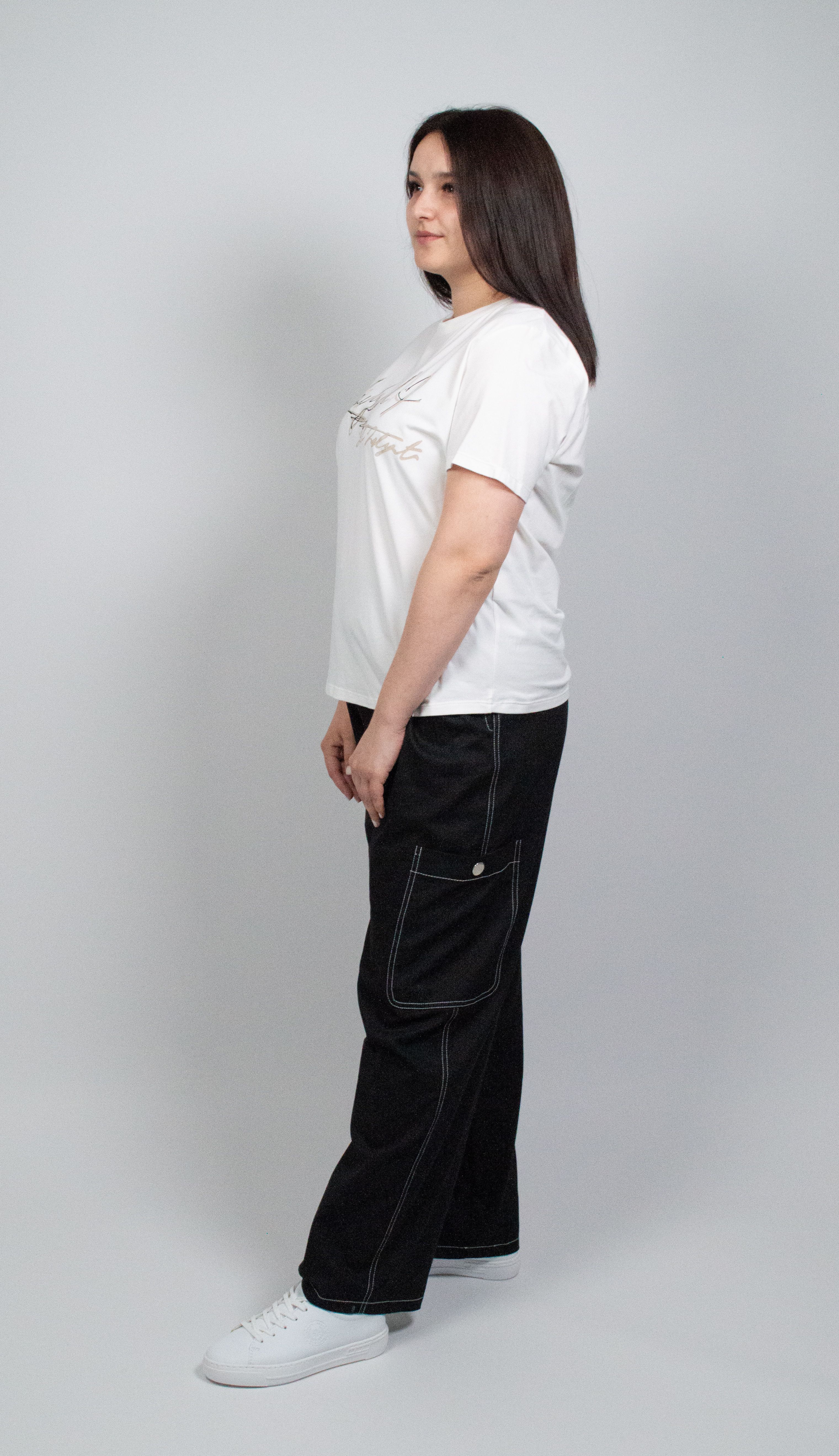 Костюм тройка женский классический джинсовый oversize – прекрасная основа для любого гардероба. Выполнен из премиальной хлопковой ткани. Можно носить как повседневный, офисный вариант, на работу, на учебу, деловую встречу. Прямой крой и комфортная длина не стесняет движения и подходит для любого роста и фигуры. Жакет с длинным рукавом прямого силуэта легко сочетать с другими брюками, джинсами, юбкой. Готовый образ - можно носить комплект, либо комбинировать с другими деталями. Элегантный брючный костюм женский выполнен из мягкой ткани, абсолютно не имеет запаха, не скатывается и не требует сложного ухода. Хлопок не вызывает аллергию, в нем не жарко и комфортно, тело дышит. Комплект пиджак + брюки + футболка с коротким рукавом оверсайз подойдет для на осень - весну или прохладное лето. Удобно носить под любую верхнюю одежду. Куртка джинсовая. Без подкладки. На молнии. Отложной классический воротник. Прямой втачной рукав. Накладные карманы. Брюки свободного кроя. Красиво садятся по фигуре. Накладные и боковые карманы. Майка свободного кроя с оригинальным принтом и овальным вырезом прекрано дополняет образ. Стильный костюм тройка для девушек и женщин предпочитающих комфорт в одежде. Подходит для прогулок или фотосессий. Модный жакет женский отлично сочетается с минималистичной бижутерией. Можно носить как основной слой, либо как верхний на майку, водолазку, лонгслив. Брюки также легко комбинировать с другими деталями одежды. Благодаря строгому стилю и свободному крою является универсальной формой одежды и подходит для праздника и работы. Костюм женский больших размеров хорошо смотрится на полных, а на стройных модель выглядит как oversize. Современный классический стиль прекрасно подходит для высоких и невысоких, для беременных. Позволяет чувствовать себя увереннее. Станет отличным подарком на день рождения, как новогодний сюрприз, любимой женщине, дочке, сестре, маме. Подойдёт для дня рождения, для дружественной вечеринки, различных торжественных мероприятий, на новый год, на свадьбу, корпоратив, юбилей, 8 Марта, День Влюблённых. В таком модном образе Вы будете выглядеть великолепно!