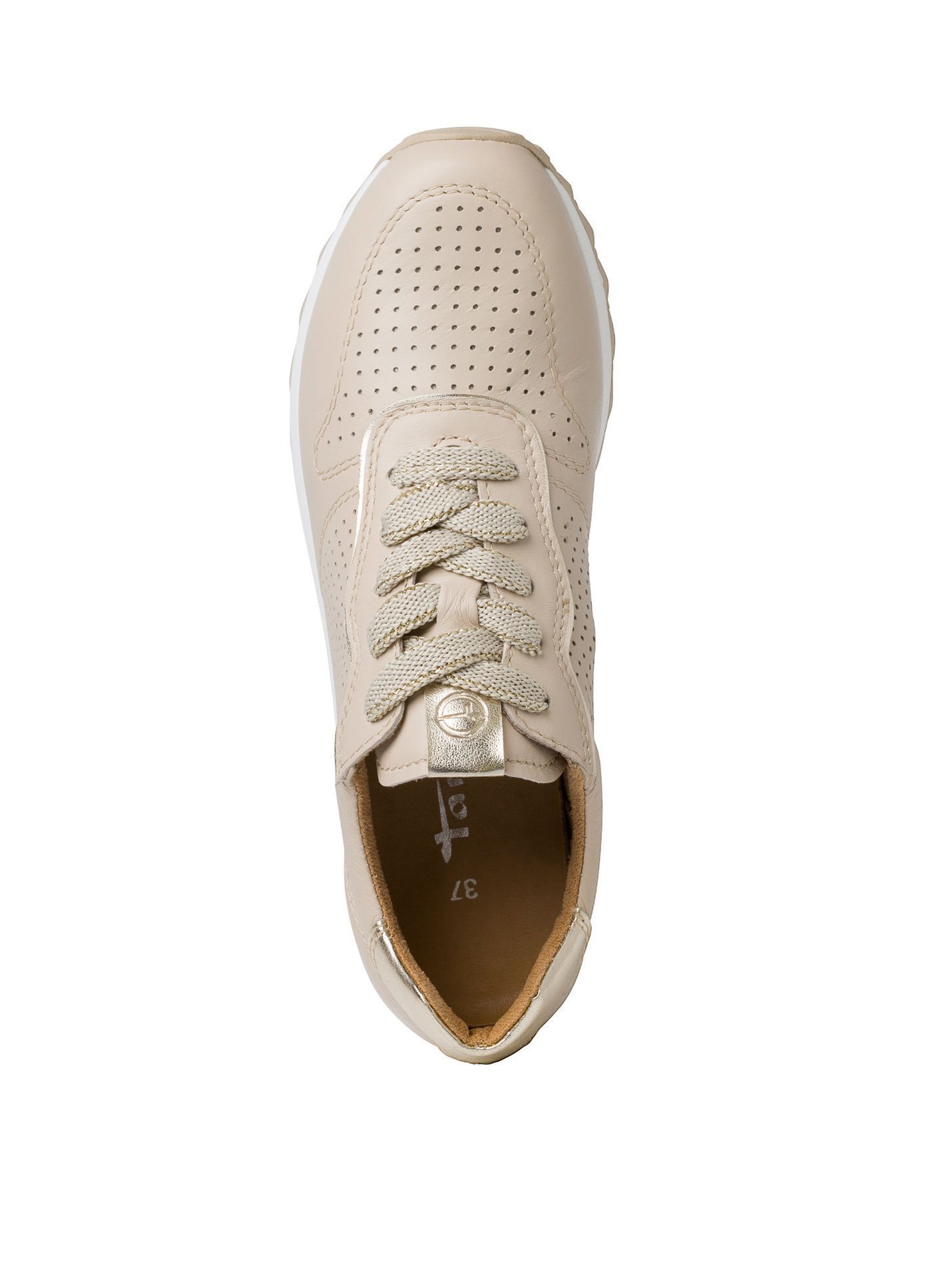 Кроссовки женские немецкого бренда Tamaris. Верх изготовлен из натуральной кожи бежевого цвета. Материал подкладки текстиль. Идеально подойдут на лето и станут отличным завершением к Вашему гардеробу.