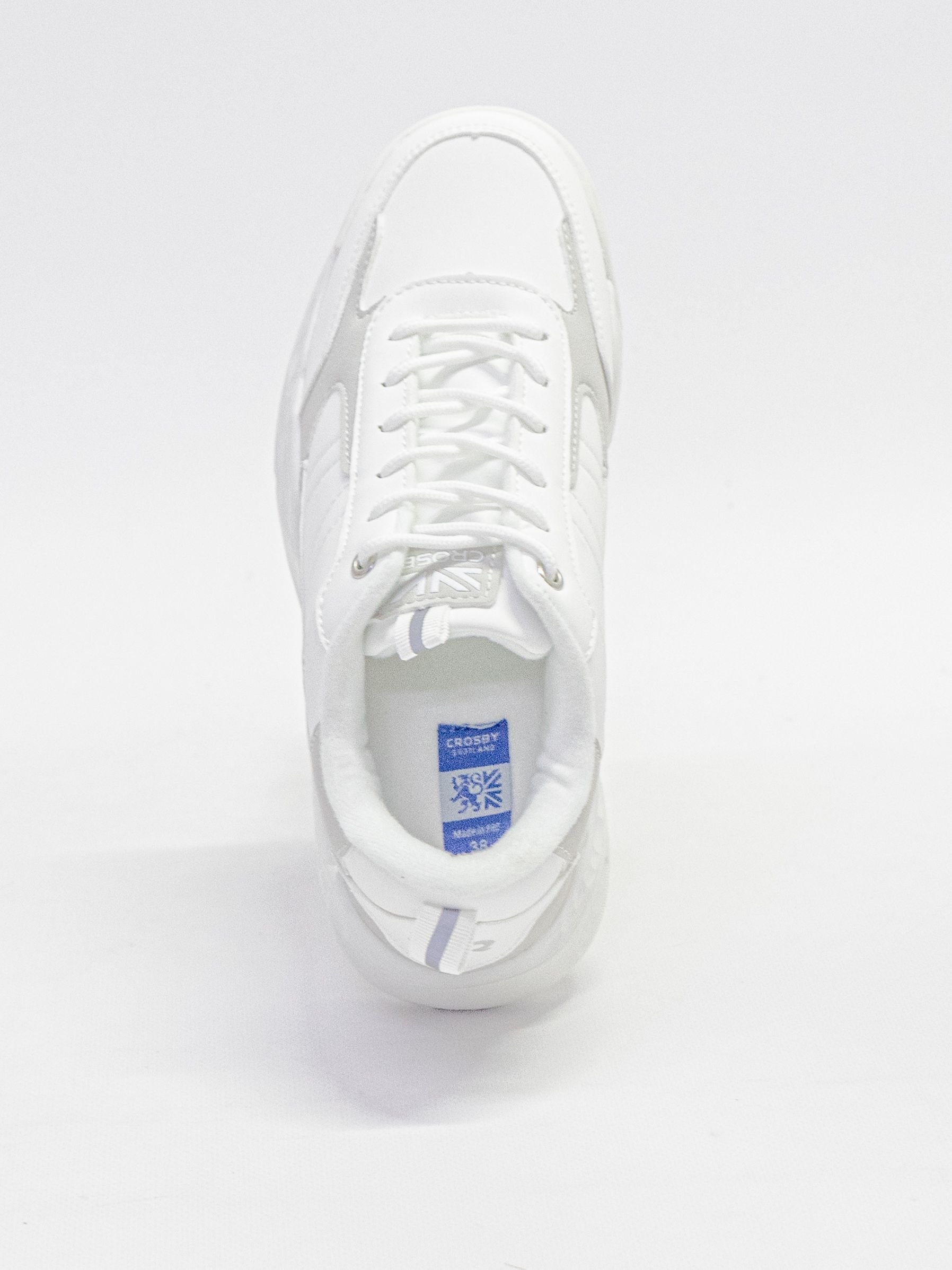 Кроссовки женские известного бренда CROSBY. Верх изготовлен искусственной кожи белого и серого цветов. Материал подкладки байка. Идеально подойдут на осень-весну и станут отличным завершением к Вашему гардеробу.