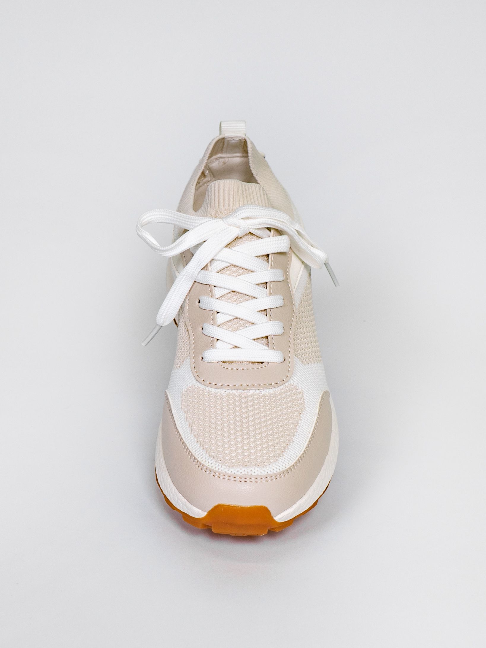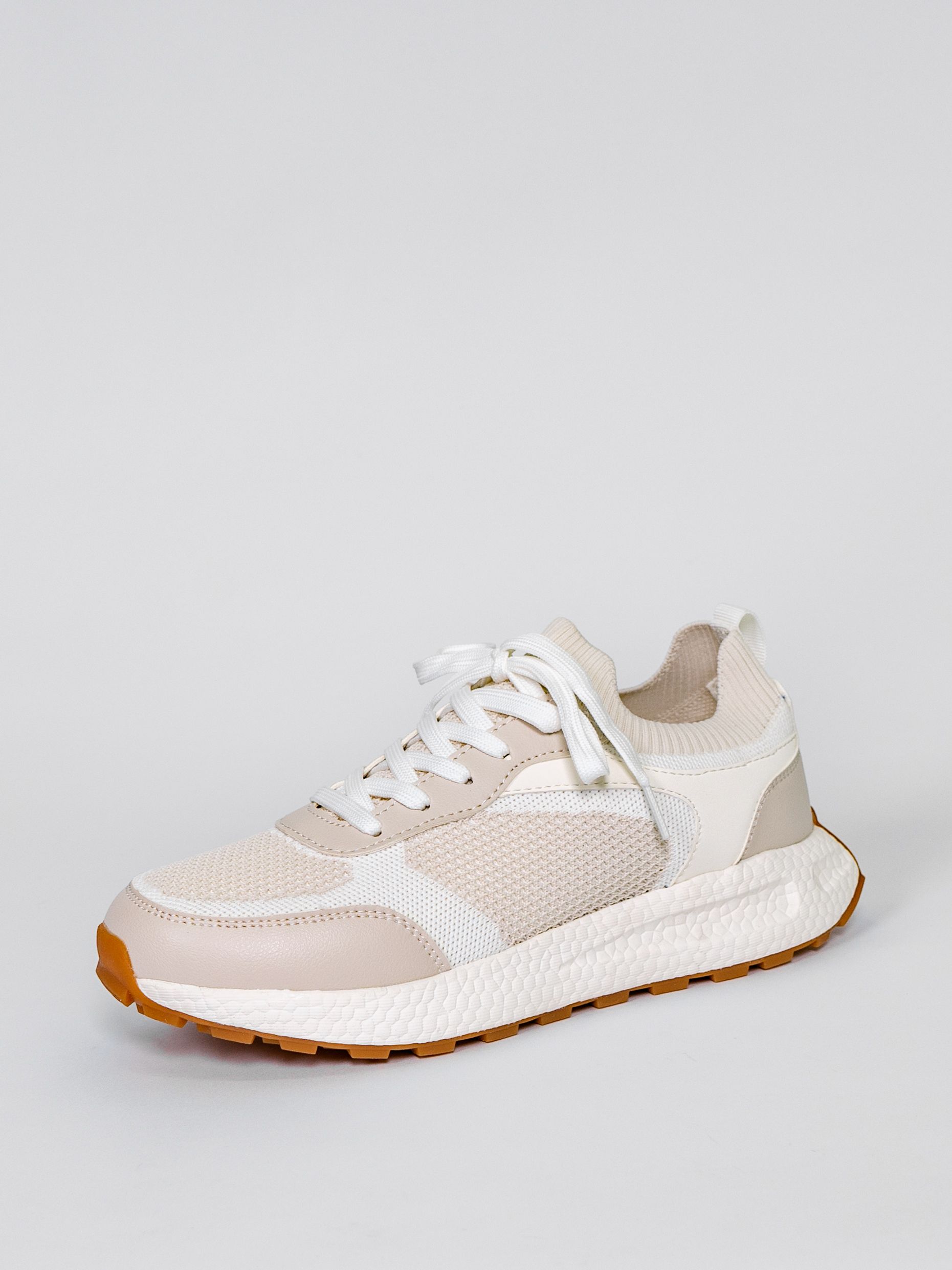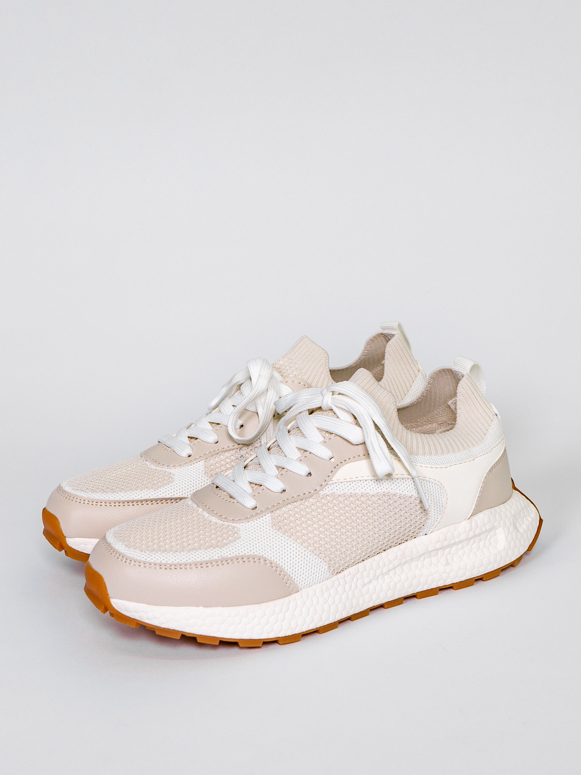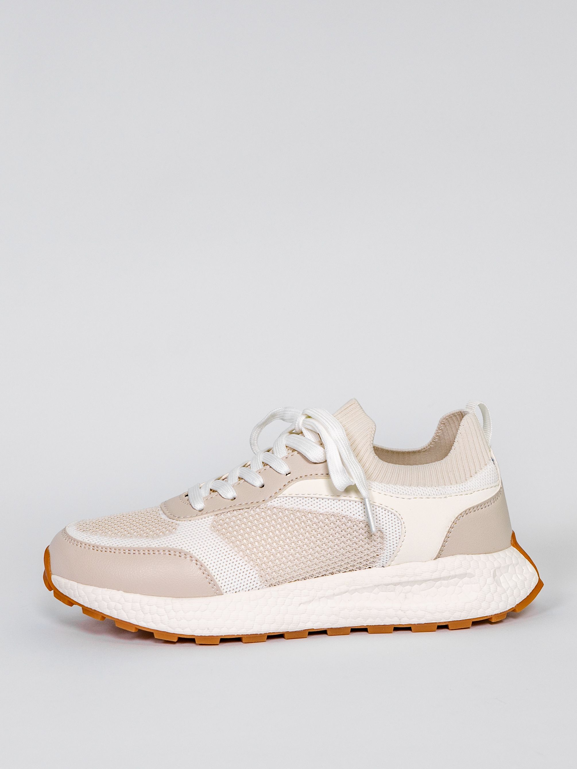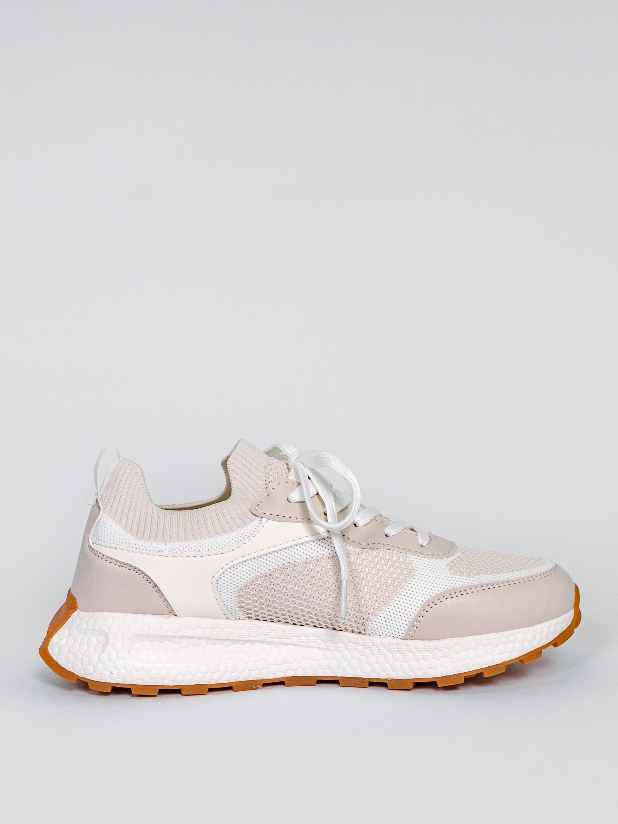 Кроссовки женские светло-бежевого цвета разработаны с учетом анатомических особенностей стопы и гарантируют комфорт даже при длительной носке, а отсутствие подкладки позволяет стопе дышать.