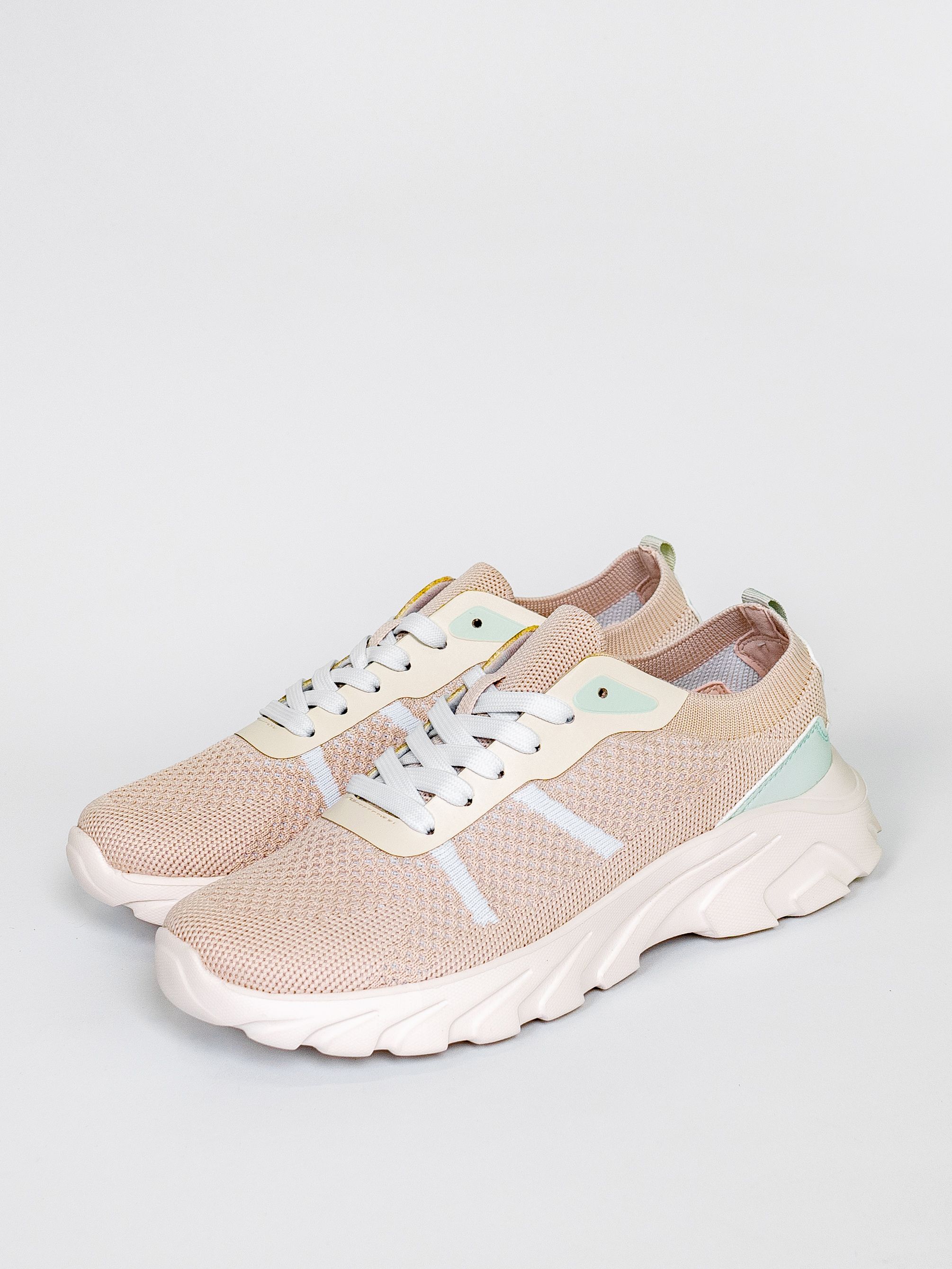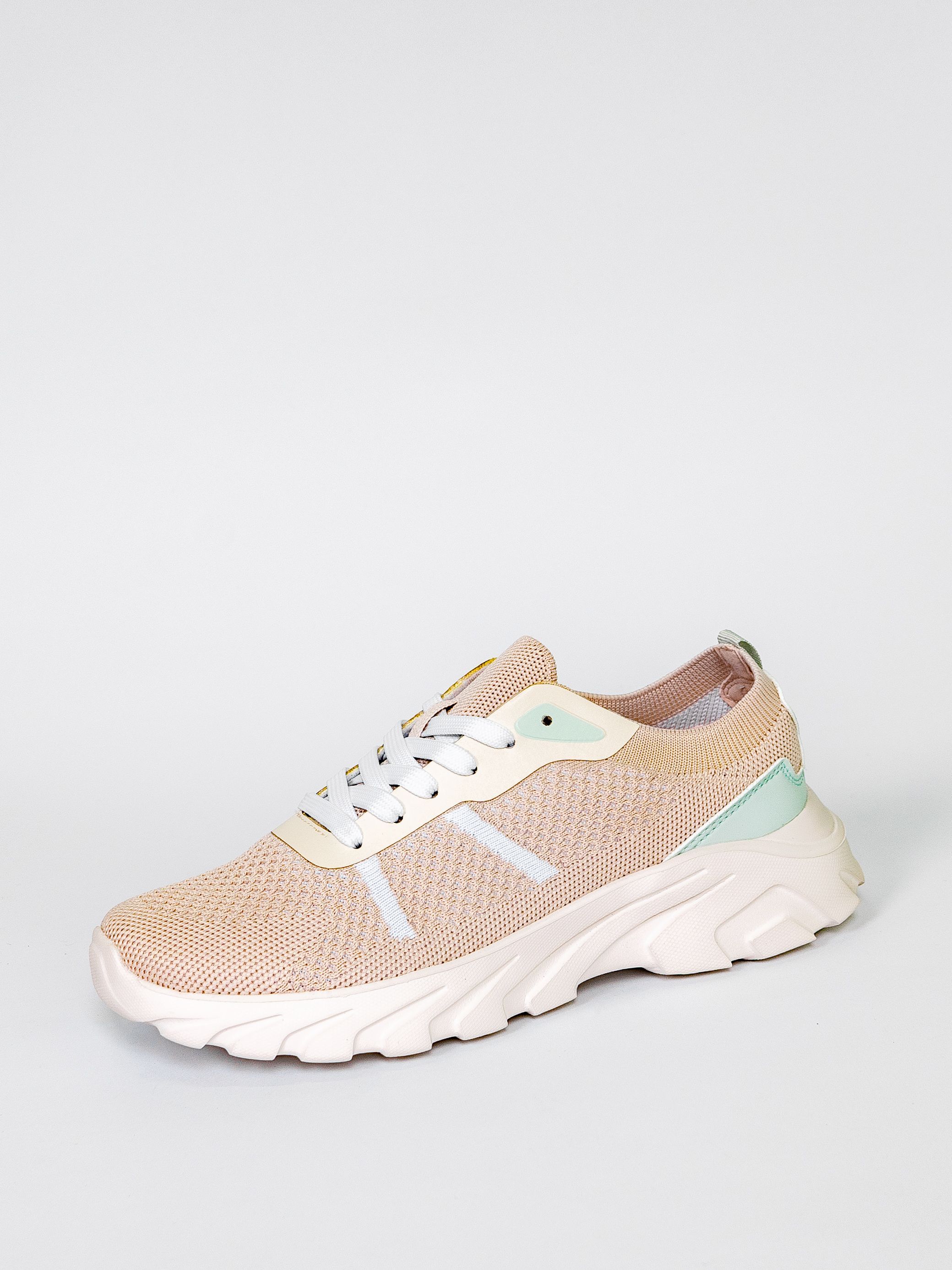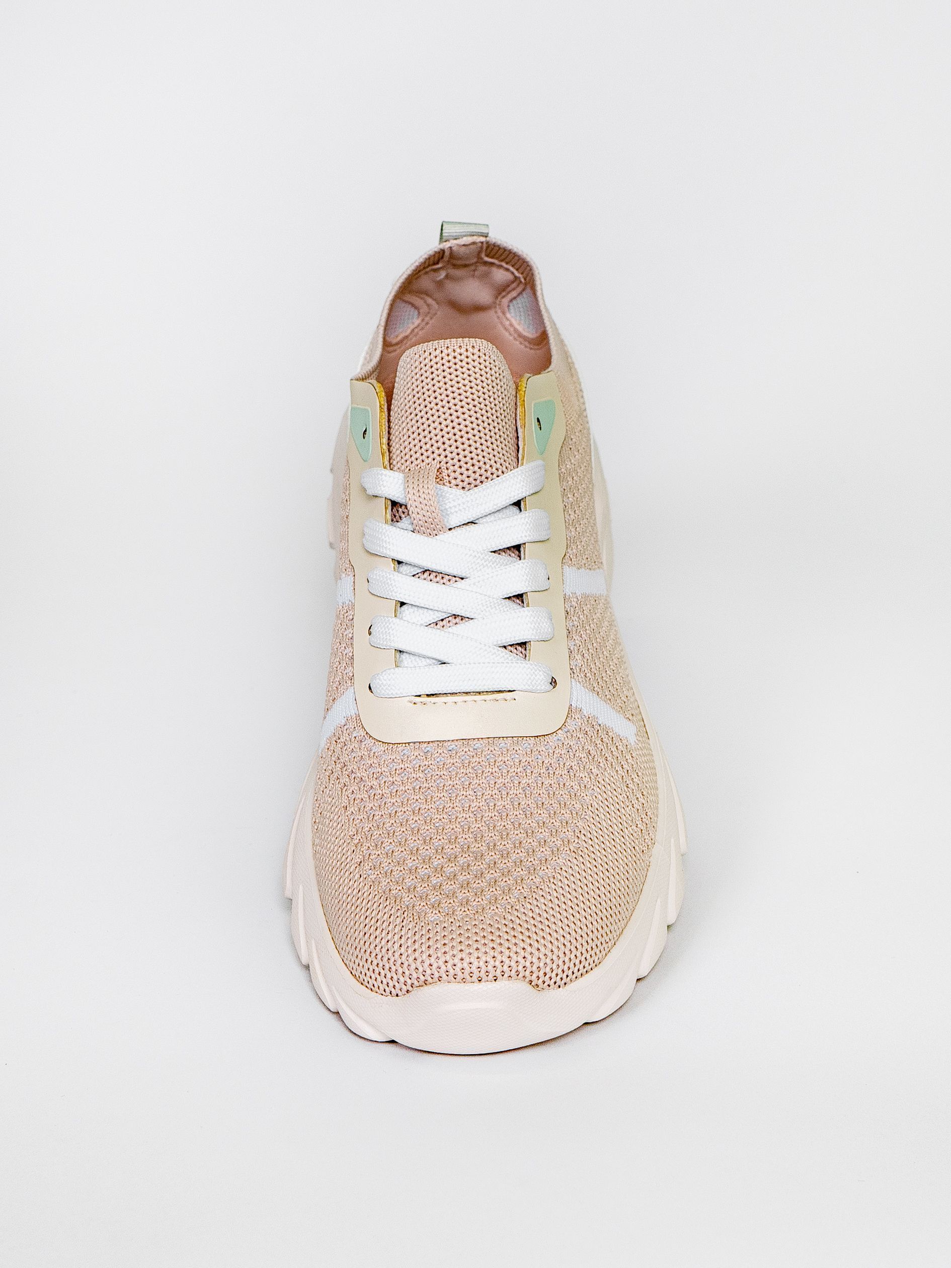 Кроссовки женские бежевого цвета разработаны с учетом анатомических особенностей стопы и гарантируют комфорт даже при длительной носке, а отсутствие подкладки позволяет стопе дышать.