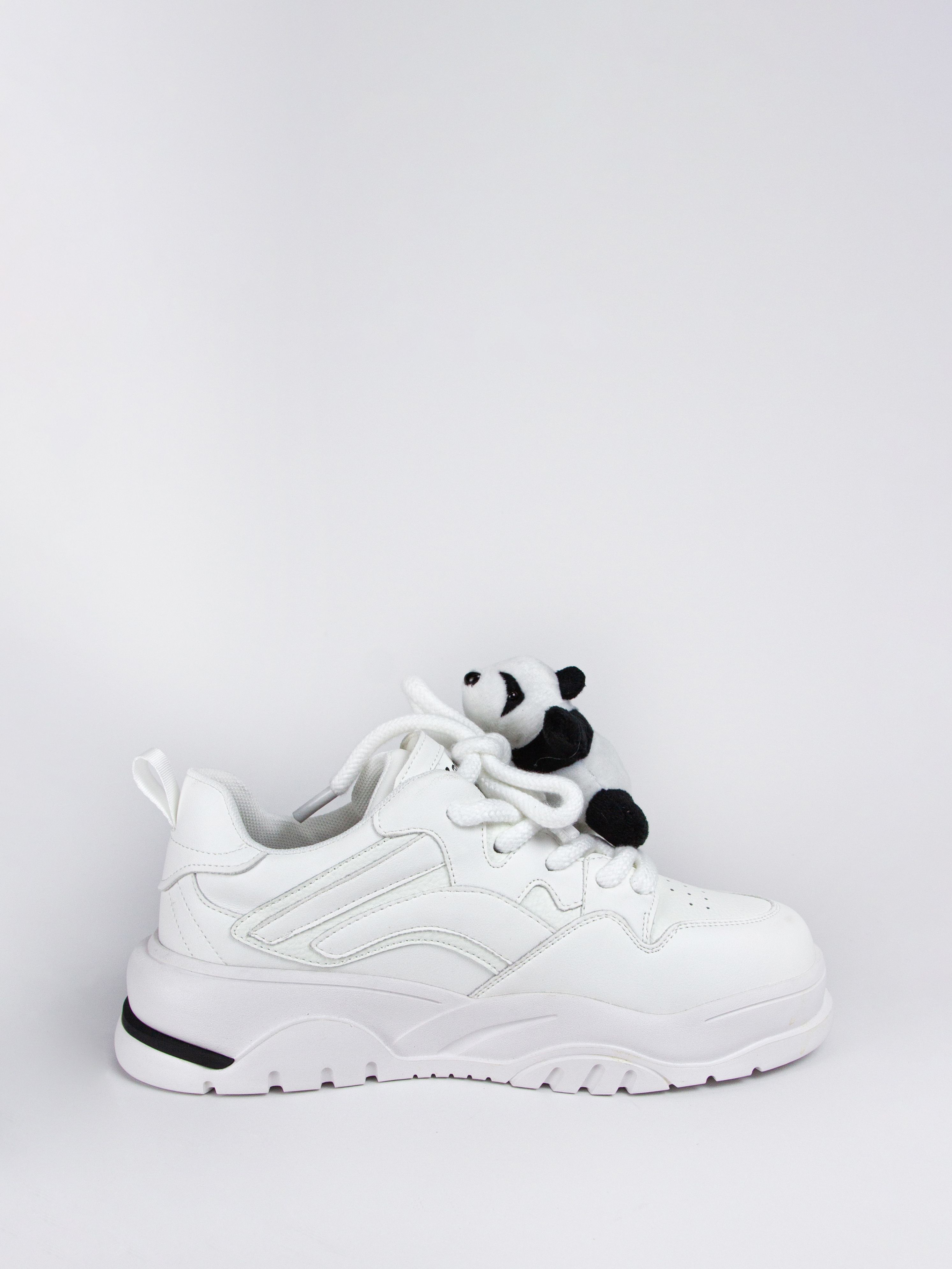 Легкие и удобные городские полуботинки отлично подойдут для прогулок весной, осенью и нежарким летом. Комфортные кеды имеют стильный дизайн, поэтому будут отлично сочетаться с платьями, джинсами, комбинезонами и брюками карго. Удобные женские кроссовки из натуральной кожи будут не только удобны в носке, но и сохранят микроклимат ваших ног в течение всего дня. Мягкая стелька и легкая амортизирующая подошва снижает нагрузку на стопу и предотвращает усталость. Модель представлена в белом цвета и дополнена утолщенной шнуровкой, а также съемным декором в виде мягкой панды, которую можно снять или прикрепить в зависимости от вашего образа и настроения.