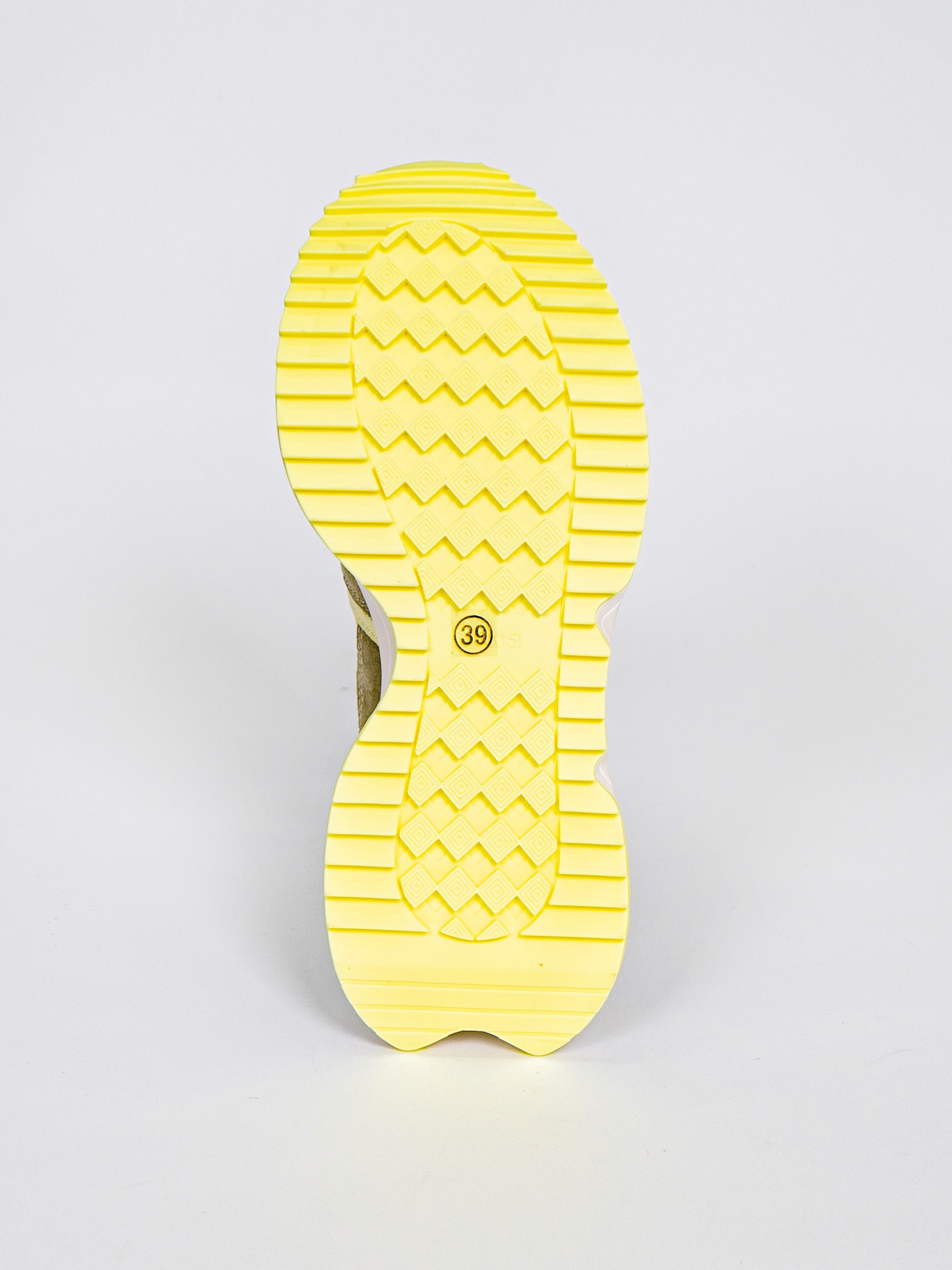 Кроссовки женские желтого цвета с бежевыми вставками разработаны с учетом анатомических особенностей стопы и гарантируют комфорт даже при длительной носке, а мягкая подкладка позволяет ноге находиться в комфорте на протяжении всего времени.