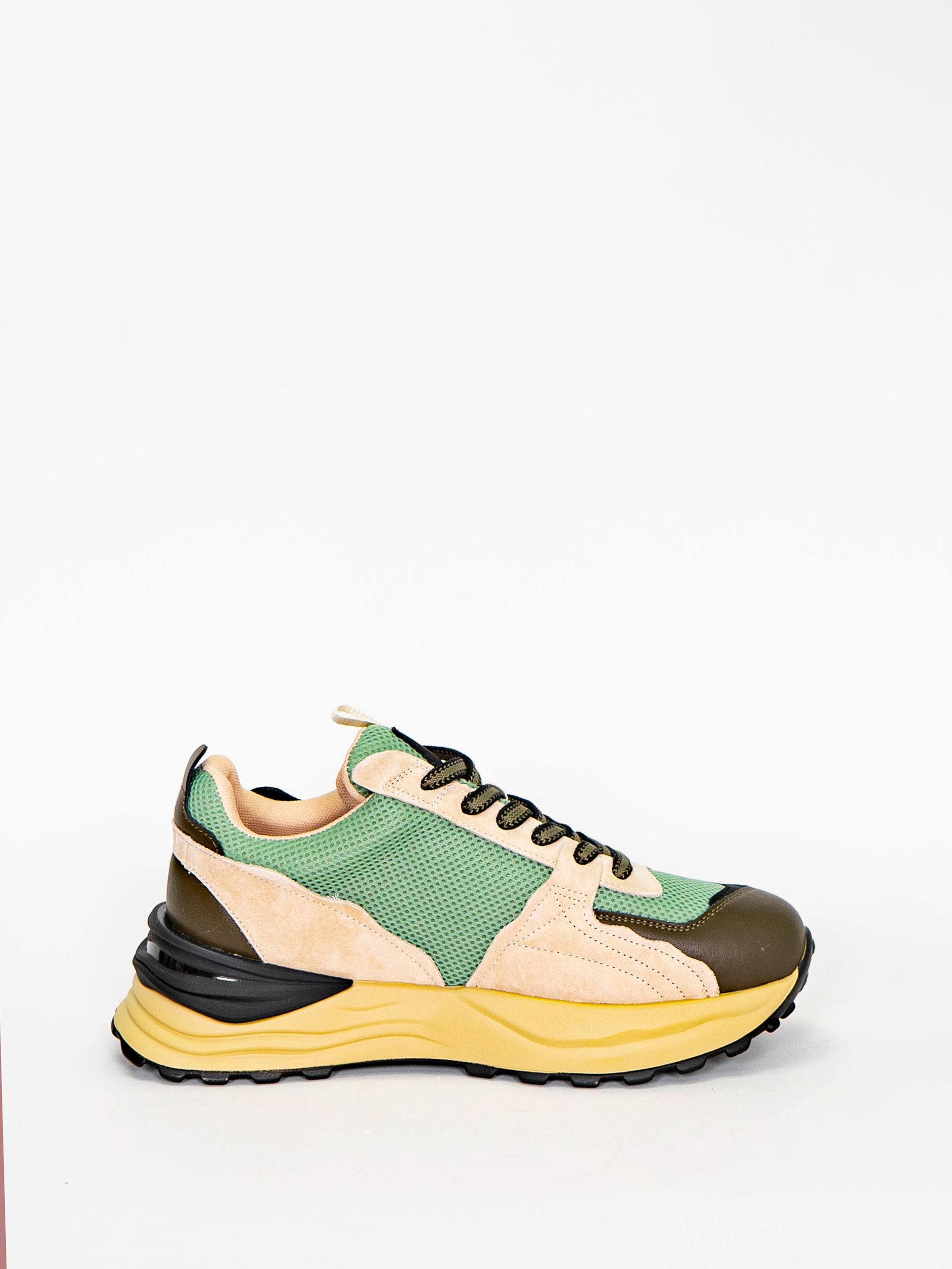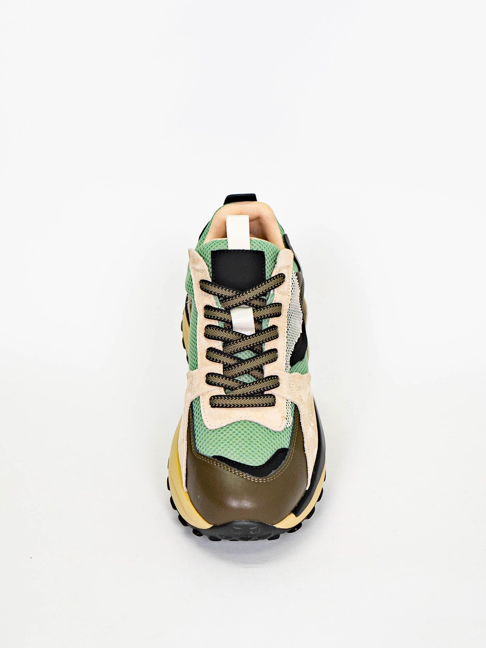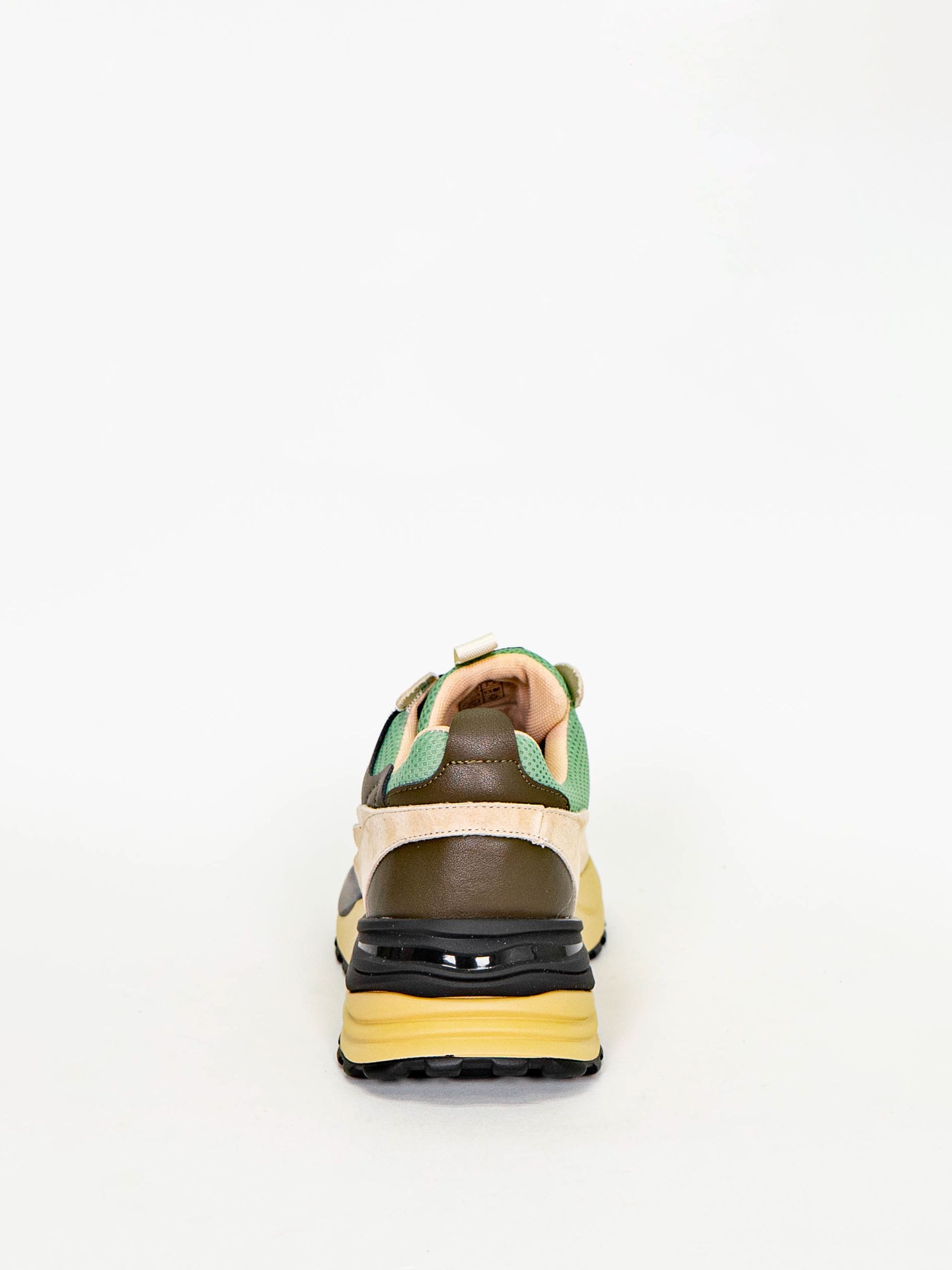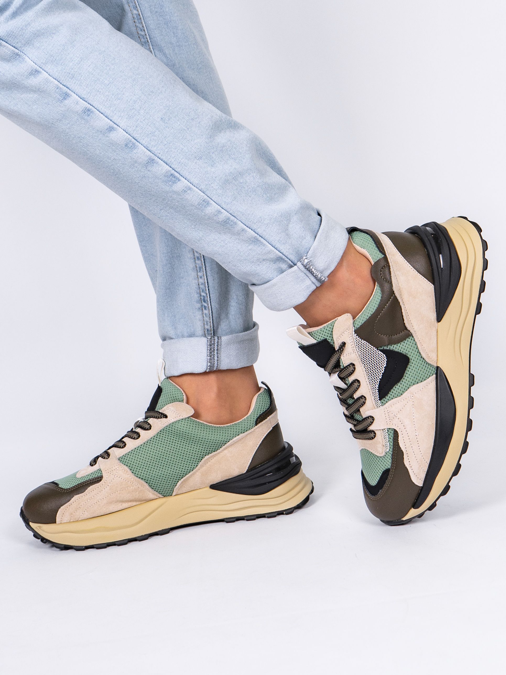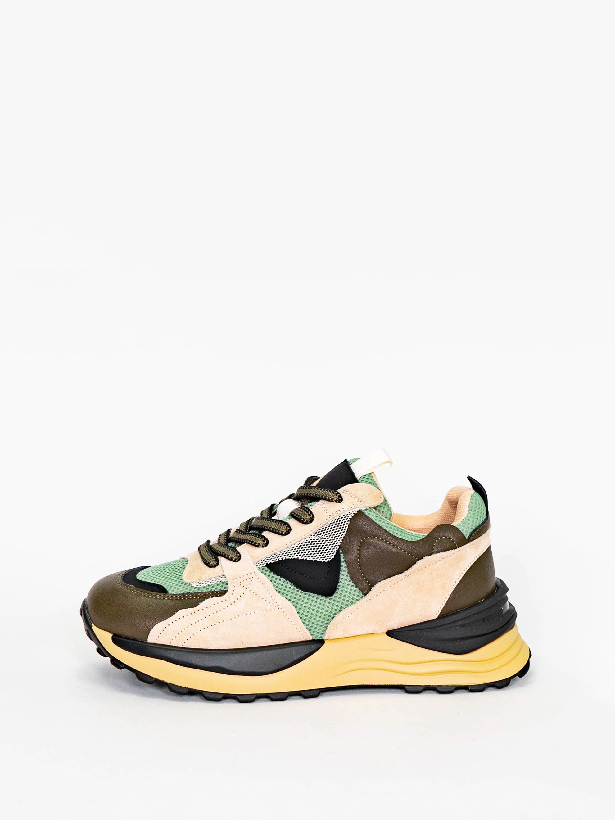 Кроссовки женские бежевого цвета с черными и зелеными вставками разработаны с учетом анатомических особенностей стопы и гарантируют комфорт даже при длительной носке, а мягкая подкладка позволяет ноге находиться в комфорте на протяжении всего времени.