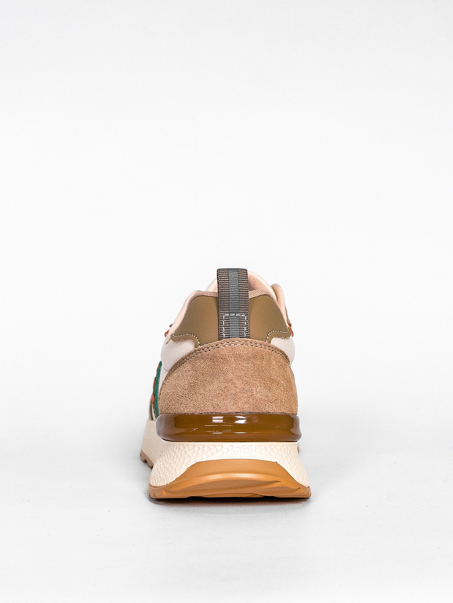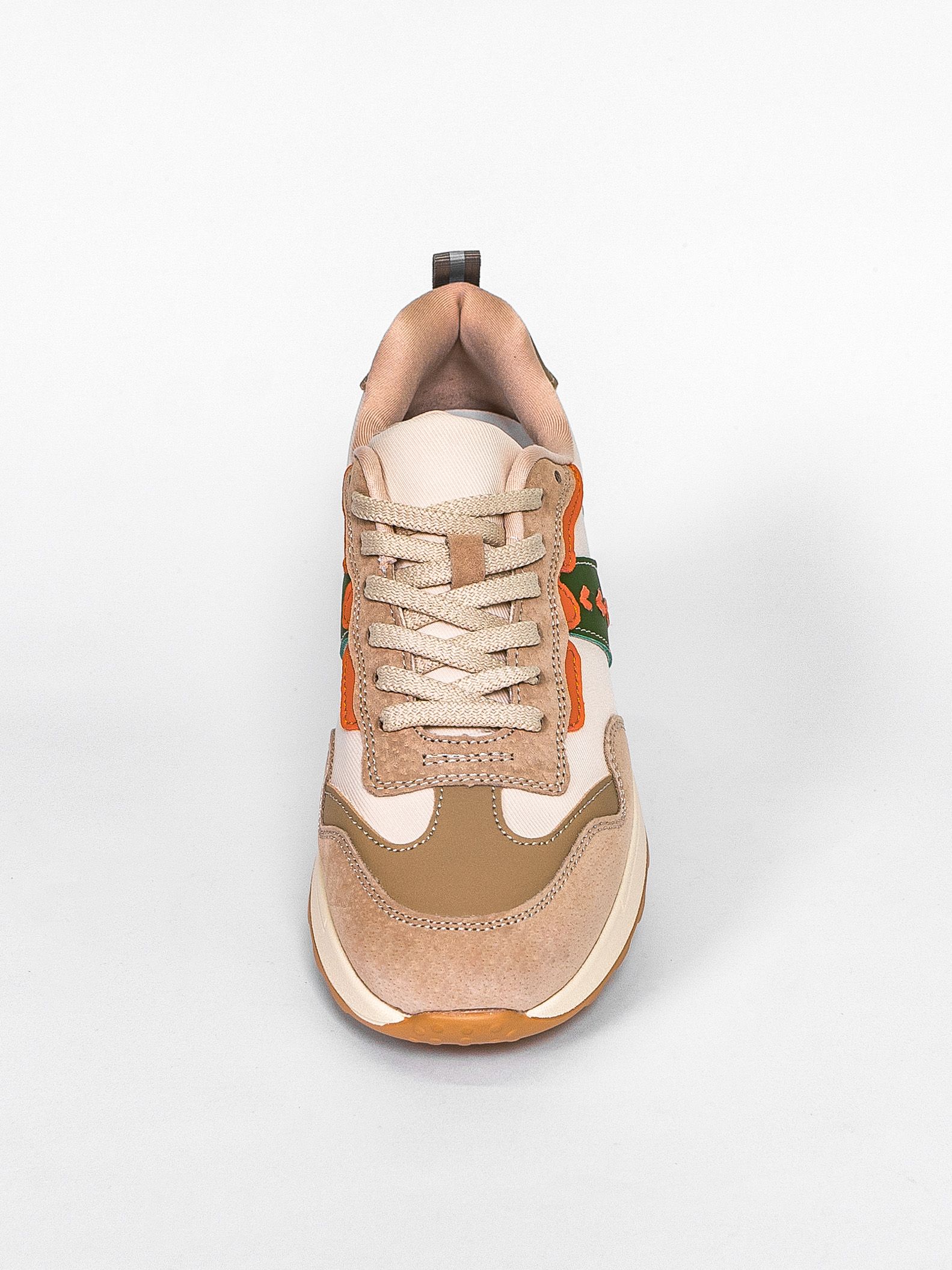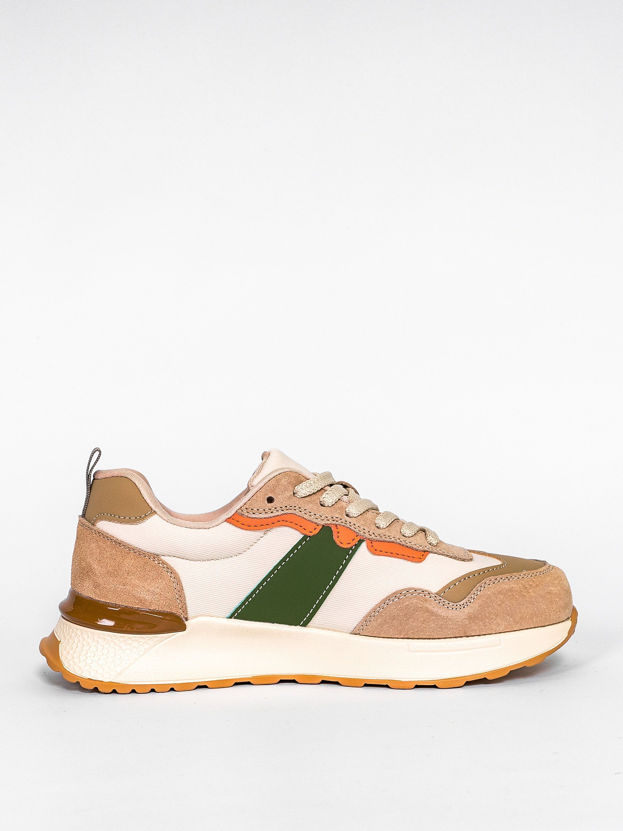 Кроссовки женские бежевого цвета с зелеными и оранжевыми вставками разработаны с учетом анатомических особенностей стопы и гарантируют комфорт даже при длительной носке, а мягкая подкладка позволяет ноге находиться в комфорте на протяжении всего времени.