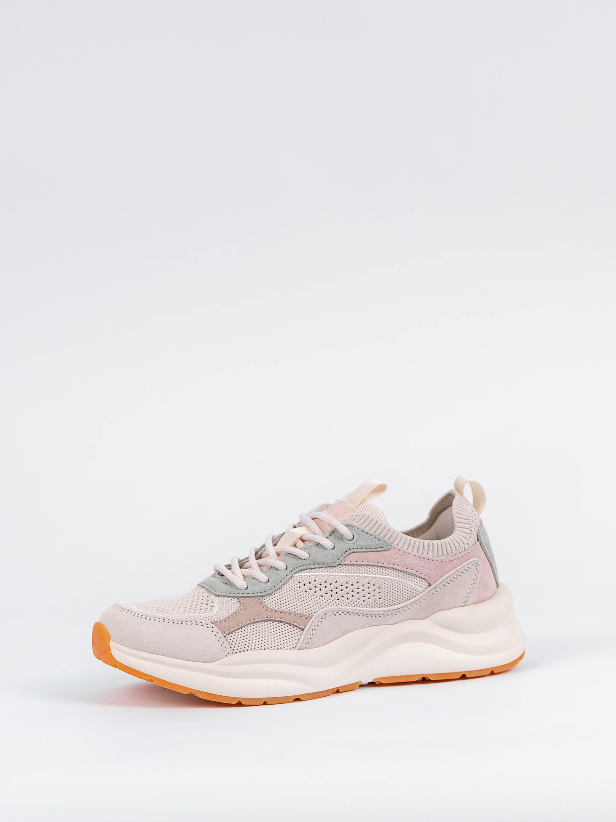 Кроссовки бежевого цвета с розовыми и зелеными вставками сочетаются с разной палитрой одежды и сделают Ваш образ более ярким и привлекательным.