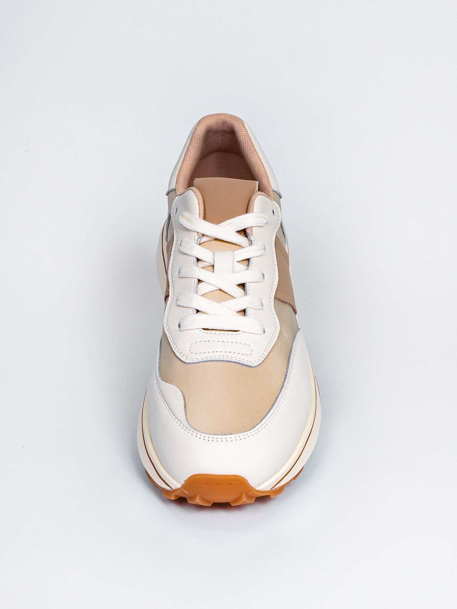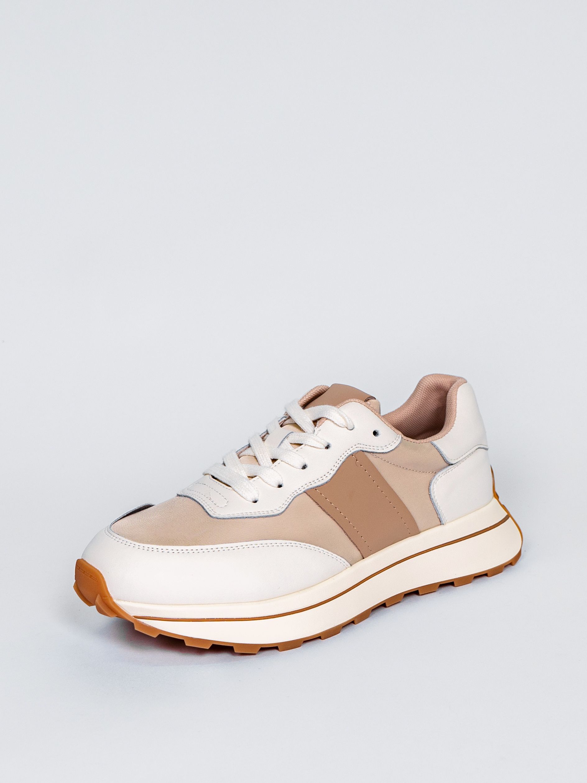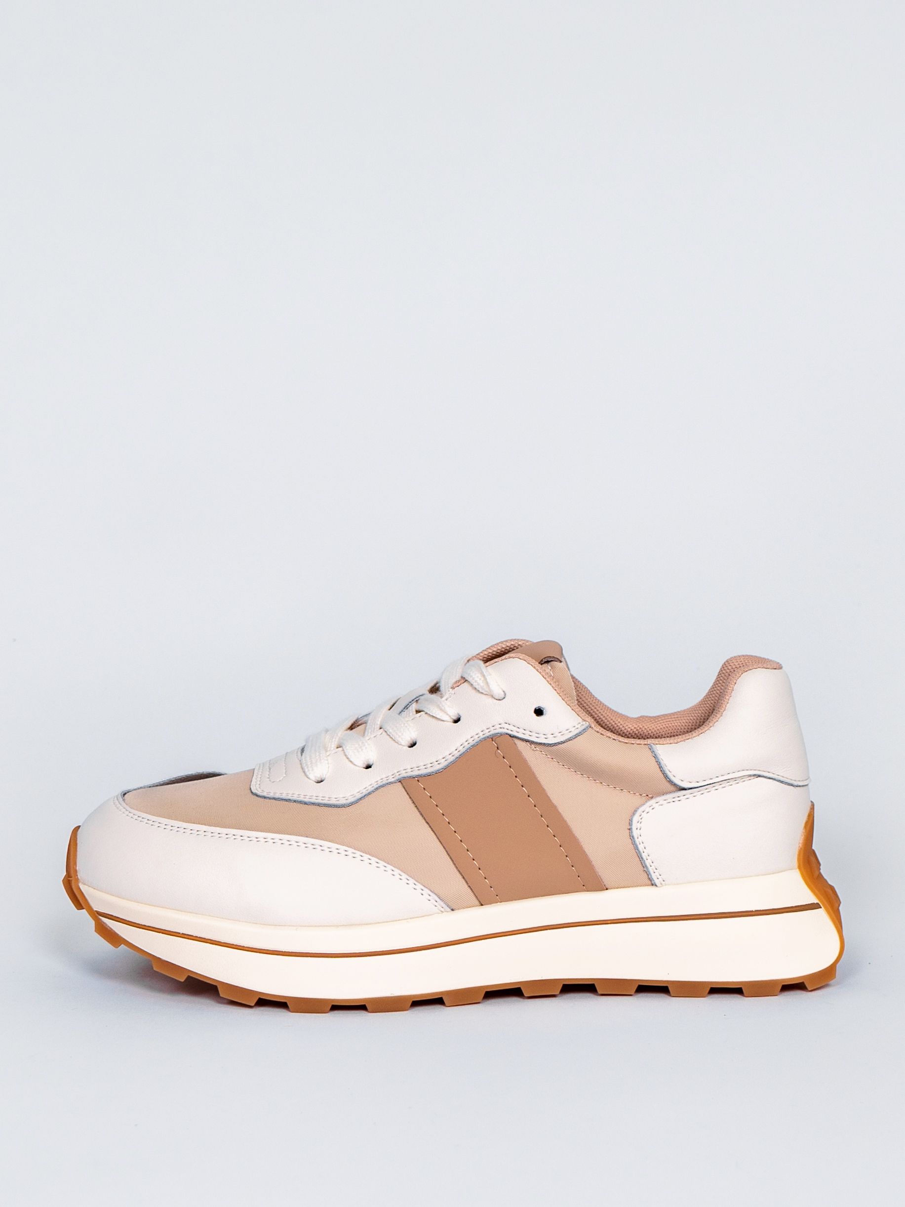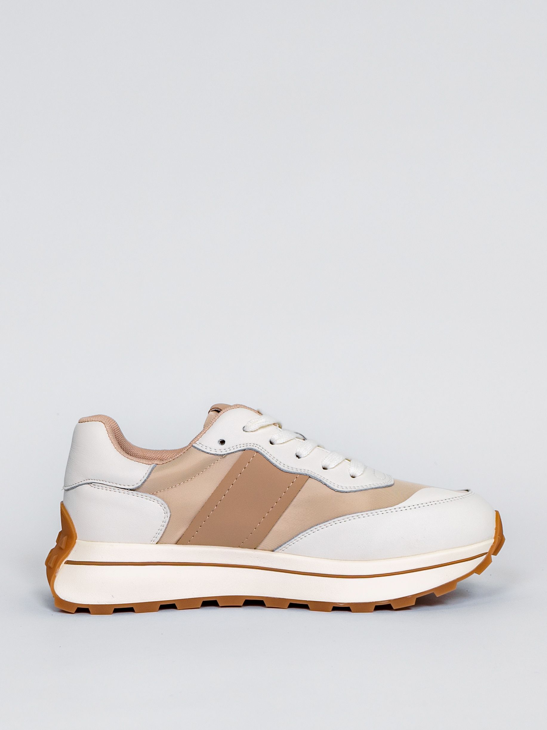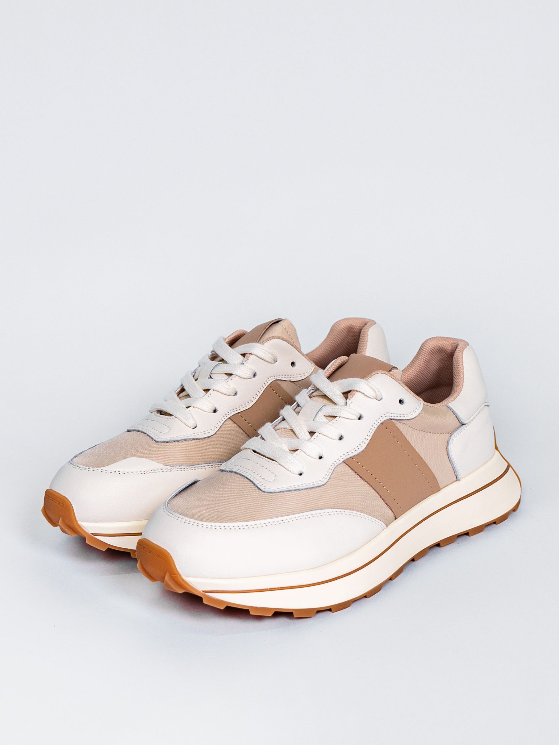 Цветовая гамма представлена в универсальном бежевом цвете с яркими акцентами, что позволяет сочетать кроссовки с различными элементами гардероба.