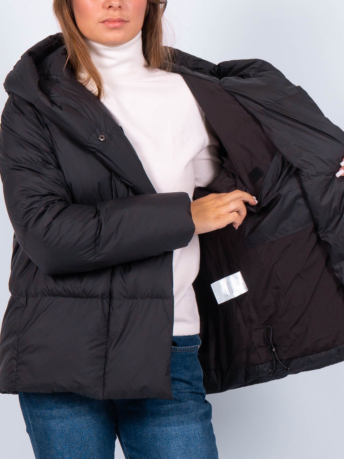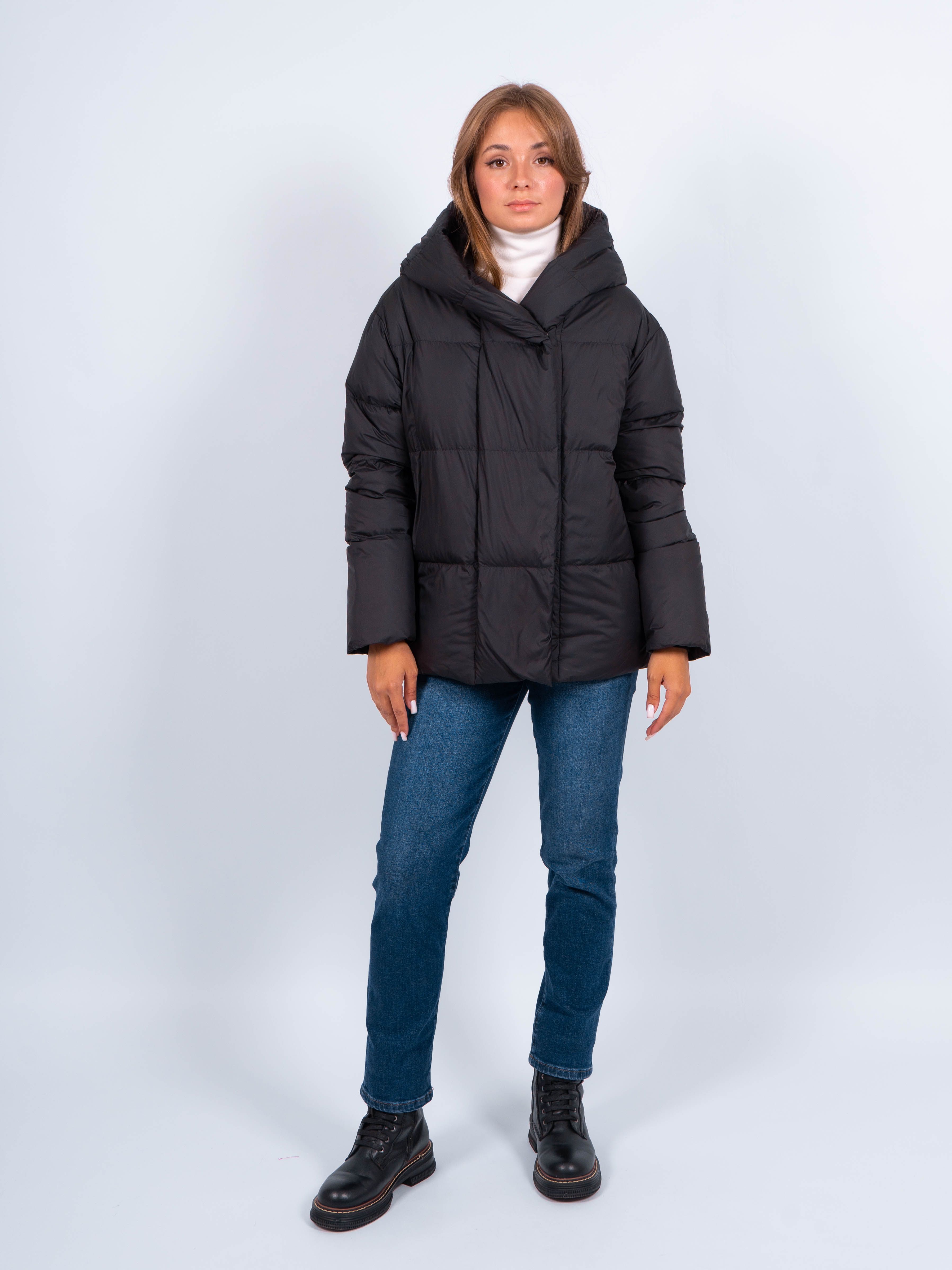 Дизайн данной куртки очаровывает своей простотой и изысканностью. Она имеет удобную застежку на молнию и кнопки, что позволяет легко и быстро надевать и снимать куртку. Капюшон не отстегивается, внутренняя кулиска снизу. Карманы на молнии не только добавляют функциональности, но и являются стильным акцентом на модели. Вы сможете без проблем хранить в них необходимые мелочи или просто разместить руки для дополнительного комфорта. Есть внутренний карман. Длина изделия 68 см.