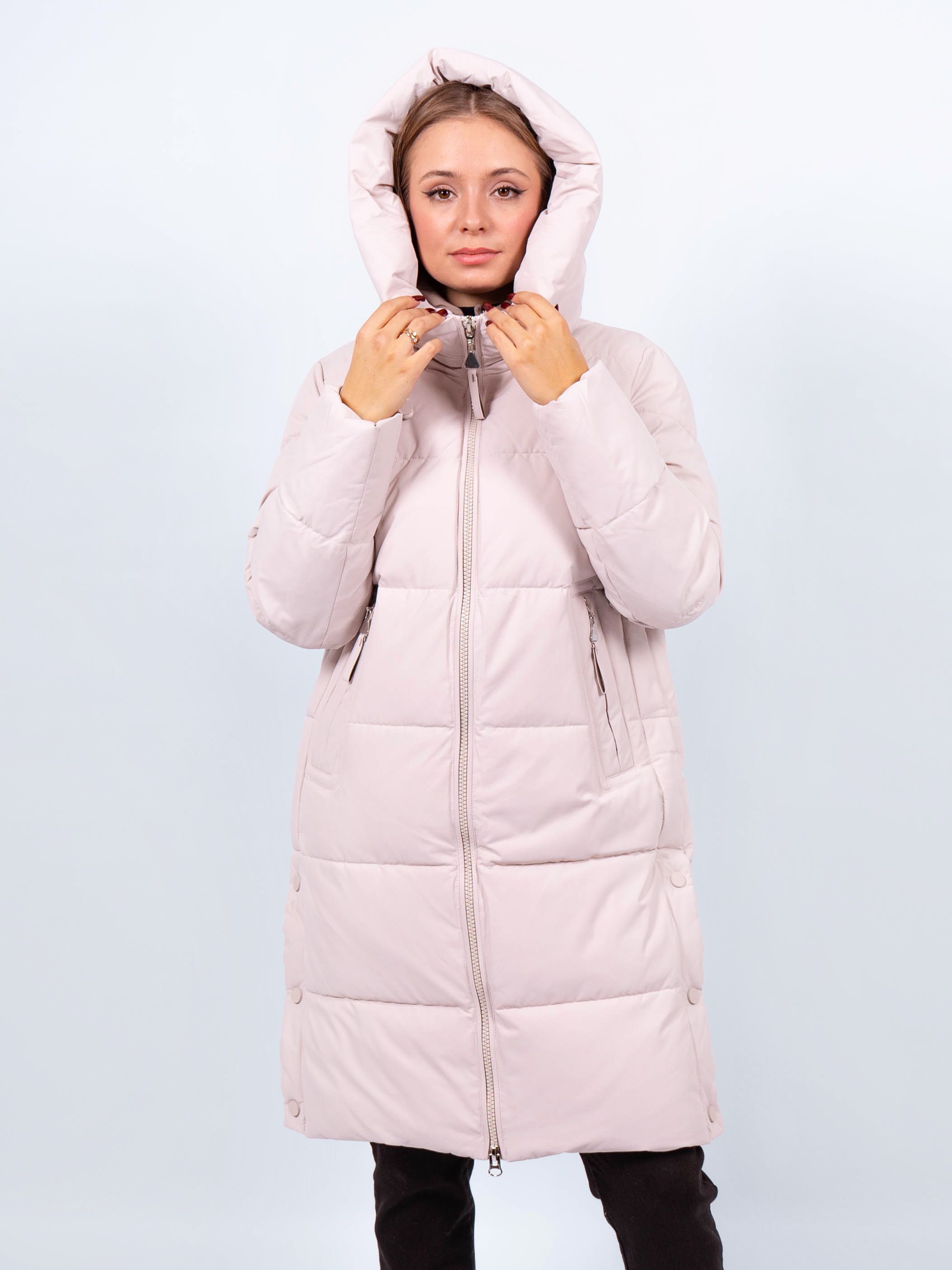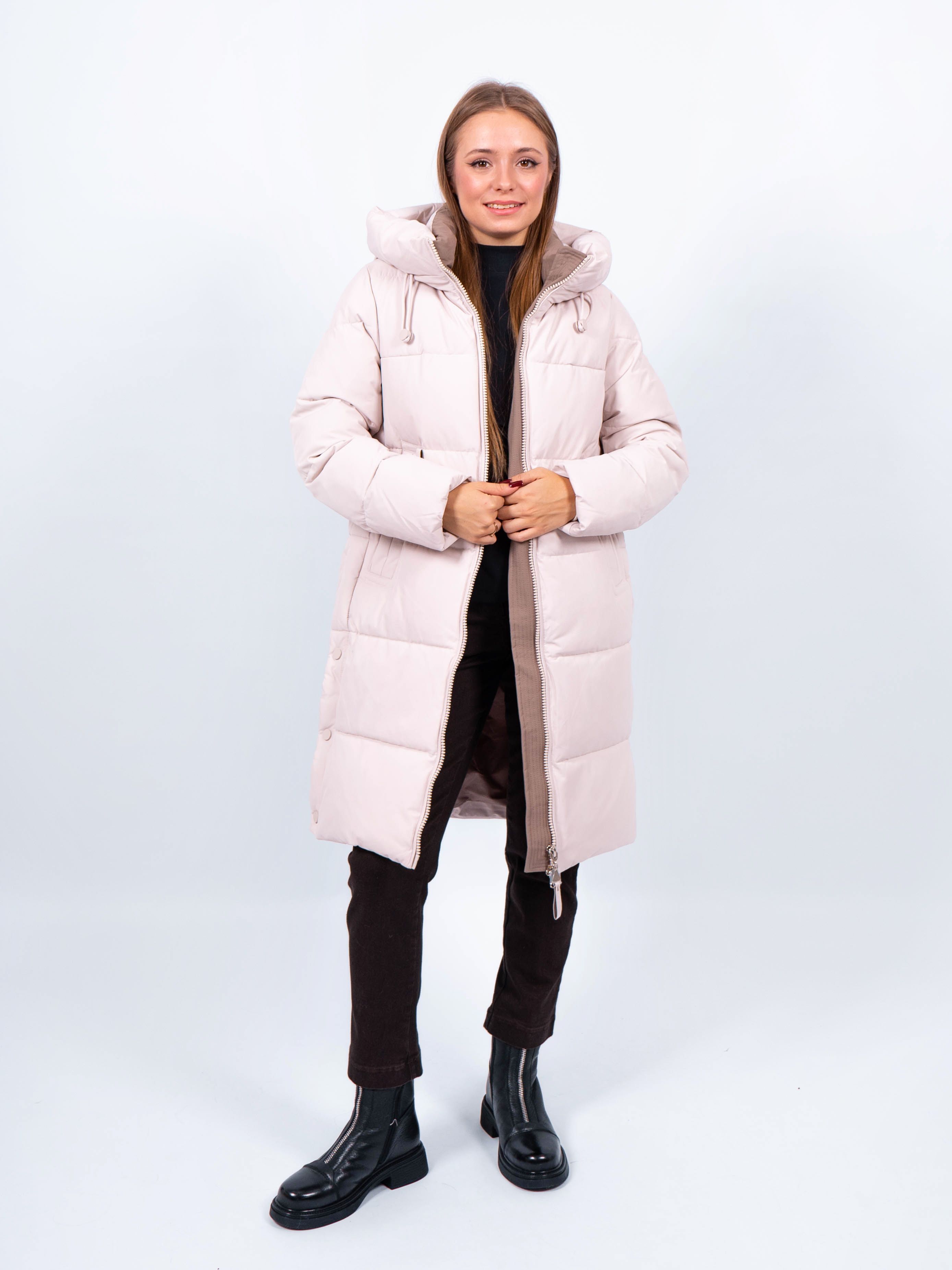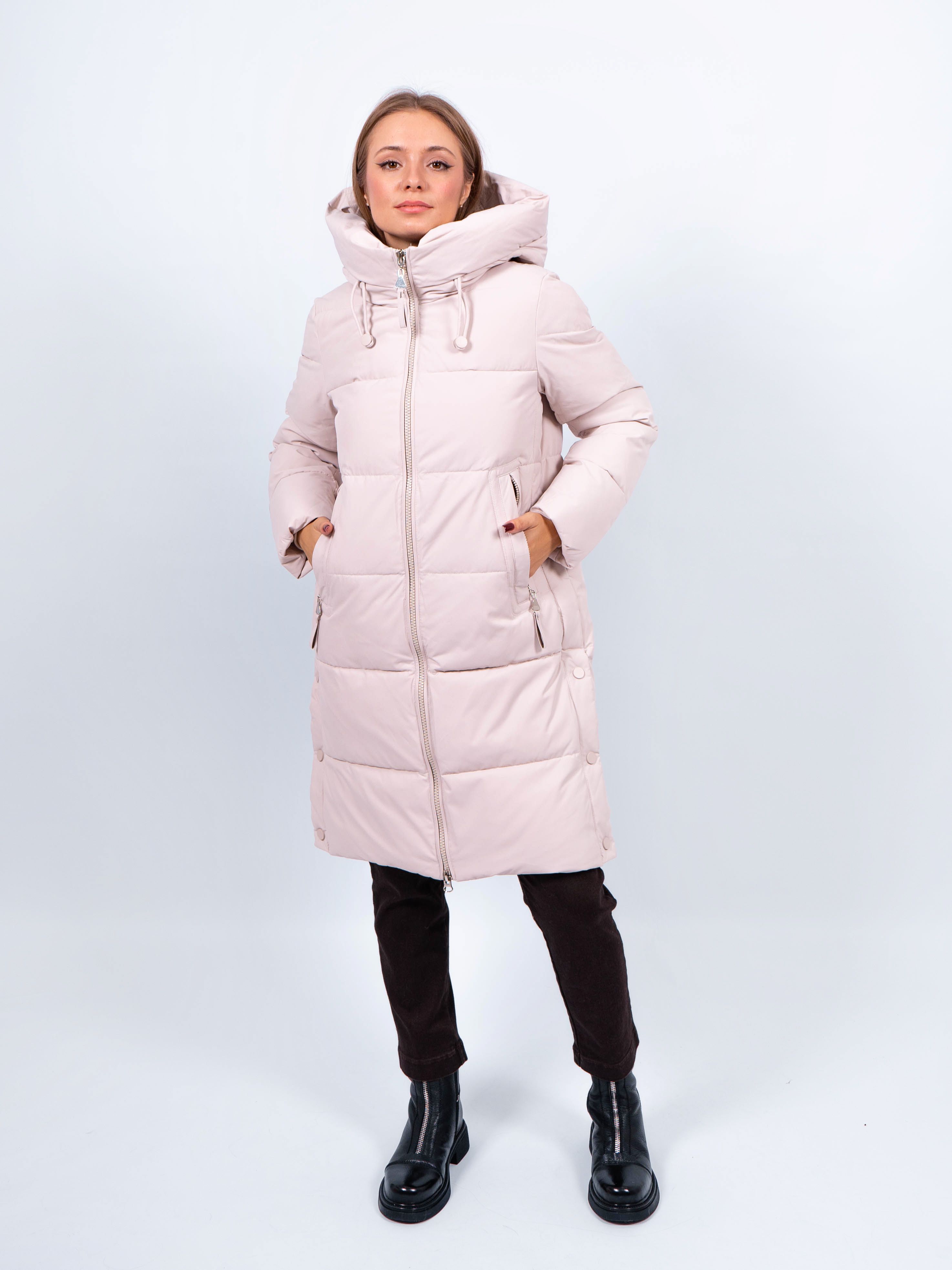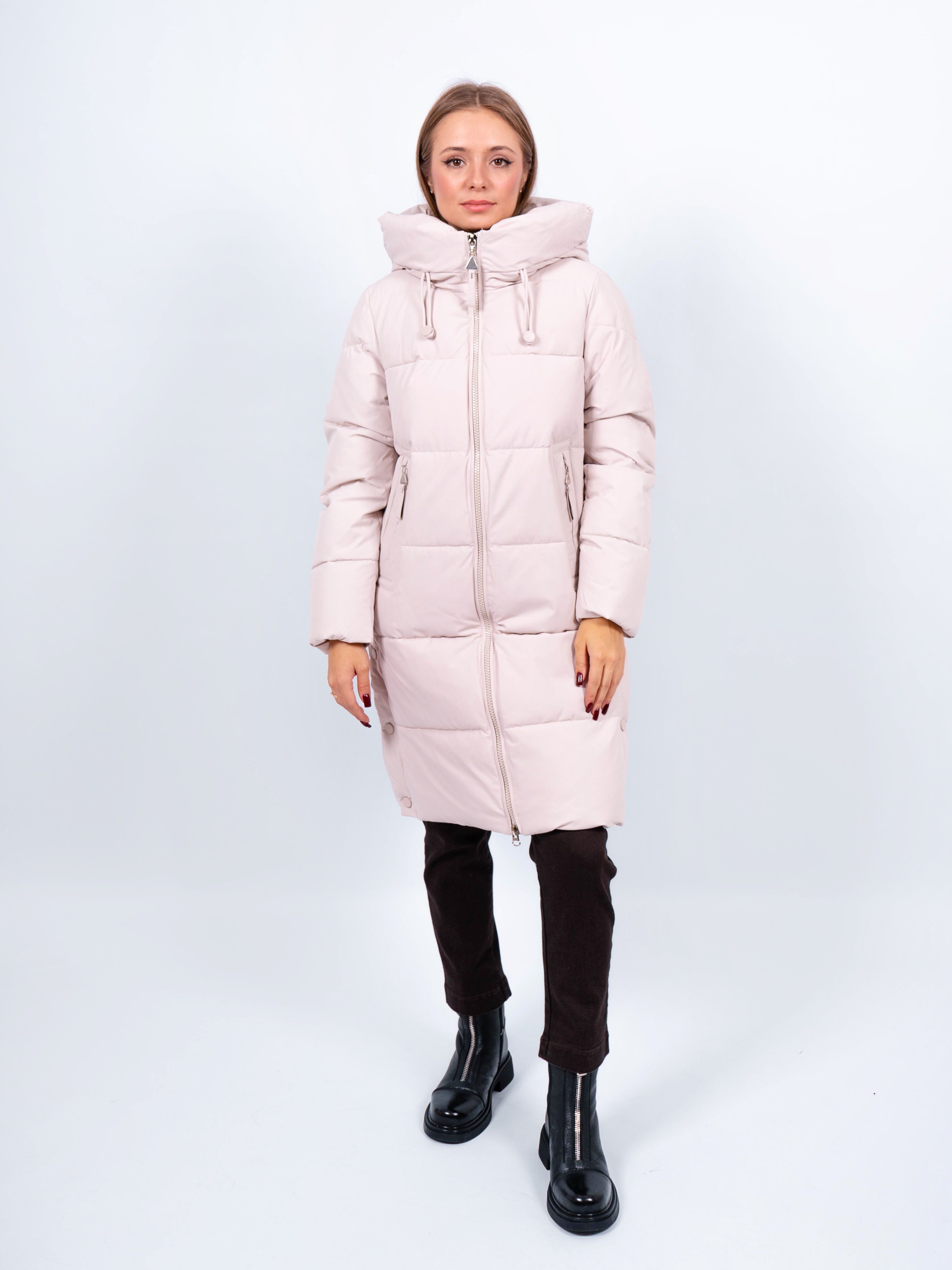 Зимняя куртка имеет удобную застежку - молния, что позволяет легко и быстро надевать и снимать куртку. Рукав втачной прямой, имеет манжеты. Внешние карманы на молнии, имеется внутренний карман. Снизу по бокам имеются функциональные кнопки, расстегиваются, что обеспечивает дополнительное удобство и является стильным акцентом. Воротник стойка. Длина изделия до колена - 90 см, подходит на рост 165-170 см. Размерный ряд с 44 по 52. Пальто бежевого цвета хорошо сочетается с обувью любого фасона.