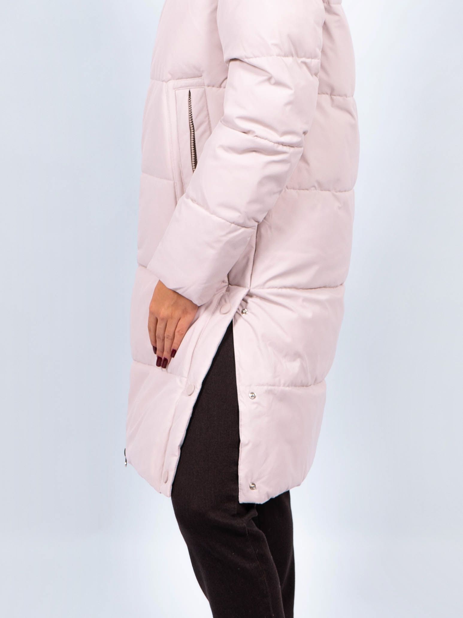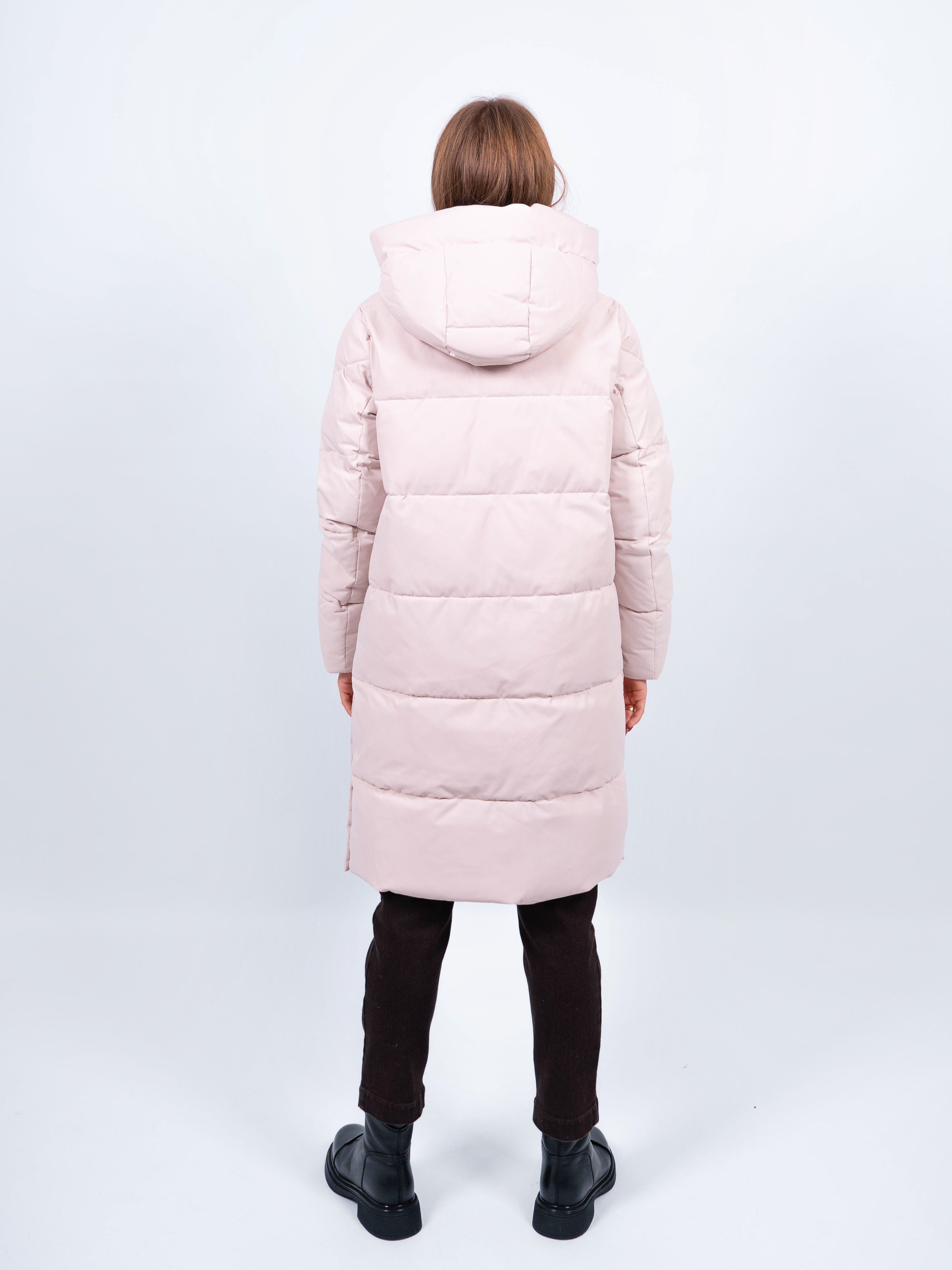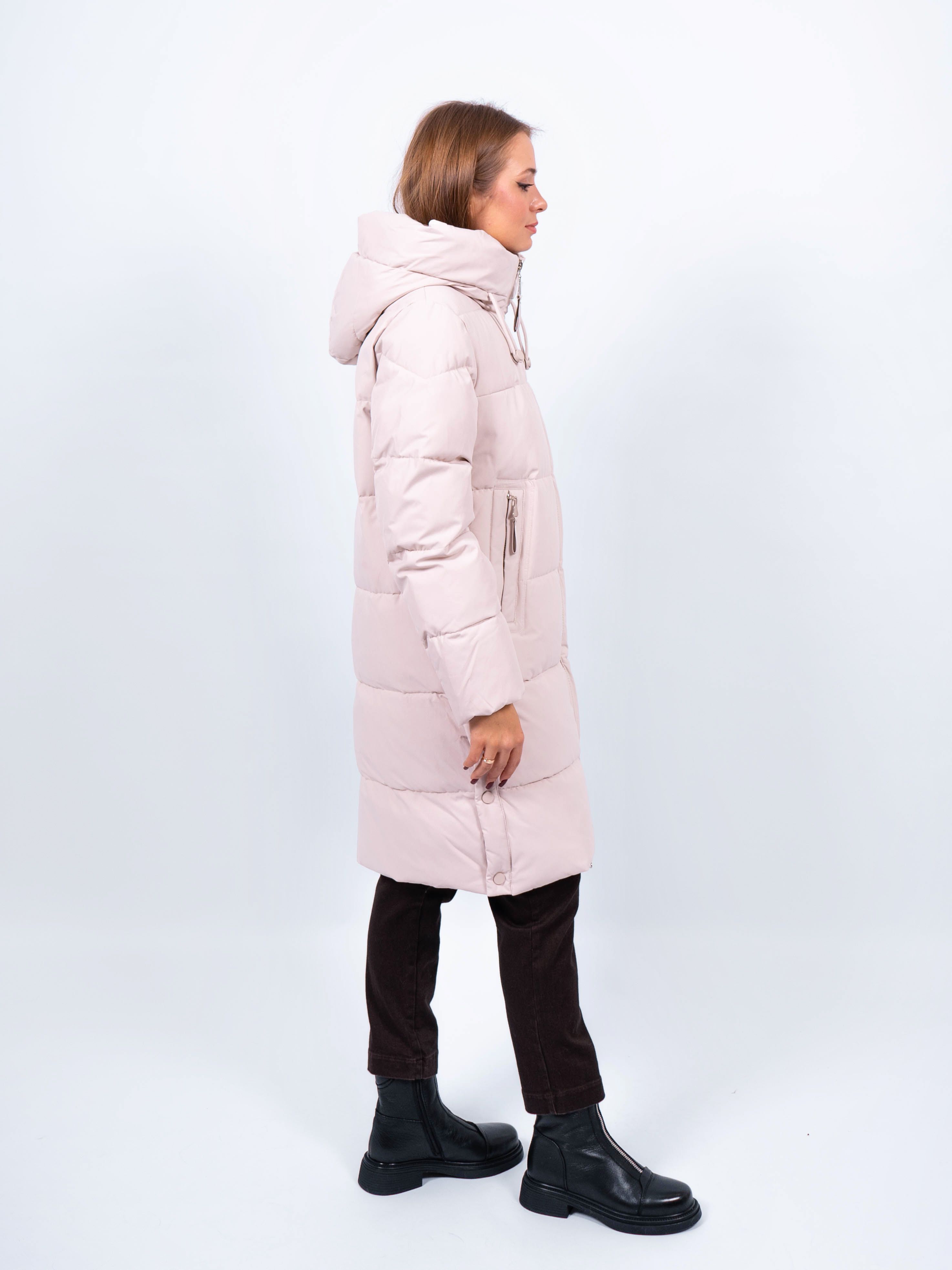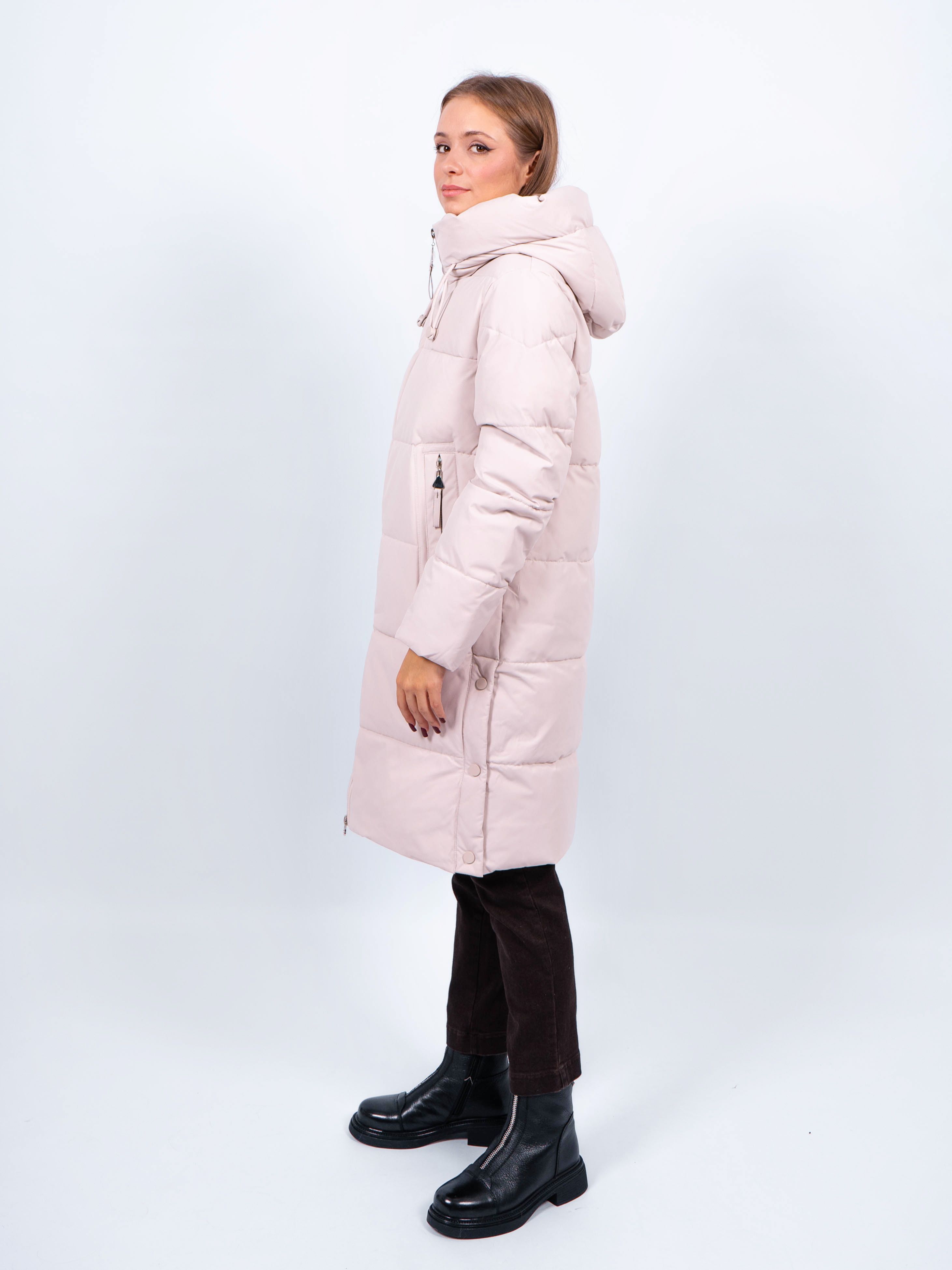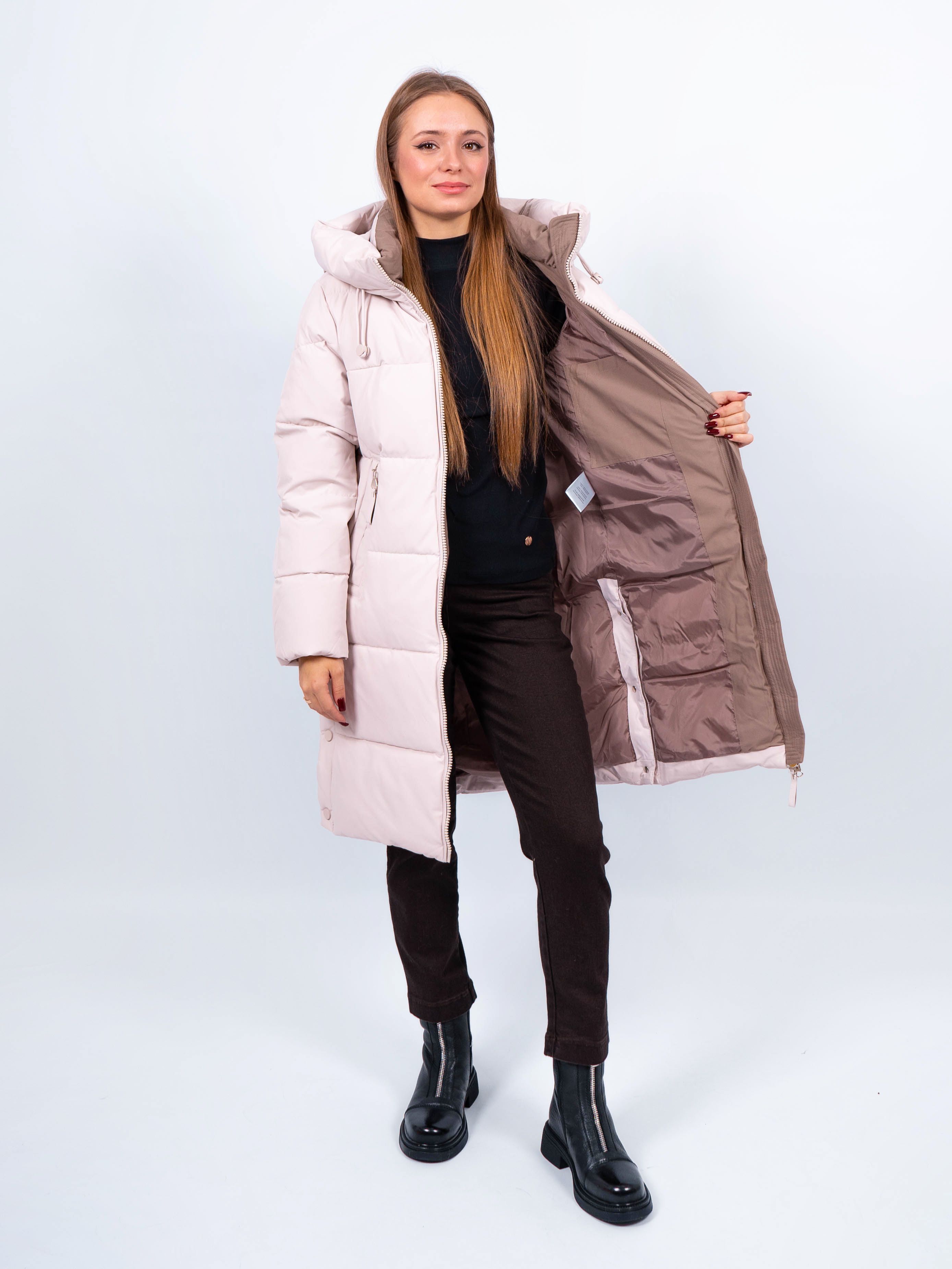 Зимняя куртка имеет удобную застежку - молния, что позволяет легко и быстро надевать и снимать куртку. Рукав втачной прямой, имеет манжеты. Внешние карманы на молнии, имеется внутренний карман. Снизу по бокам имеются функциональные кнопки, расстегиваются, что обеспечивает дополнительное удобство и является стильным акцентом. Воротник стойка. Длина изделия до колена - 90 см, подходит на рост 165-170 см. Размерный ряд с 44 по 52. Пальто бежевого цвета хорошо сочетается с обувью любого фасона.
