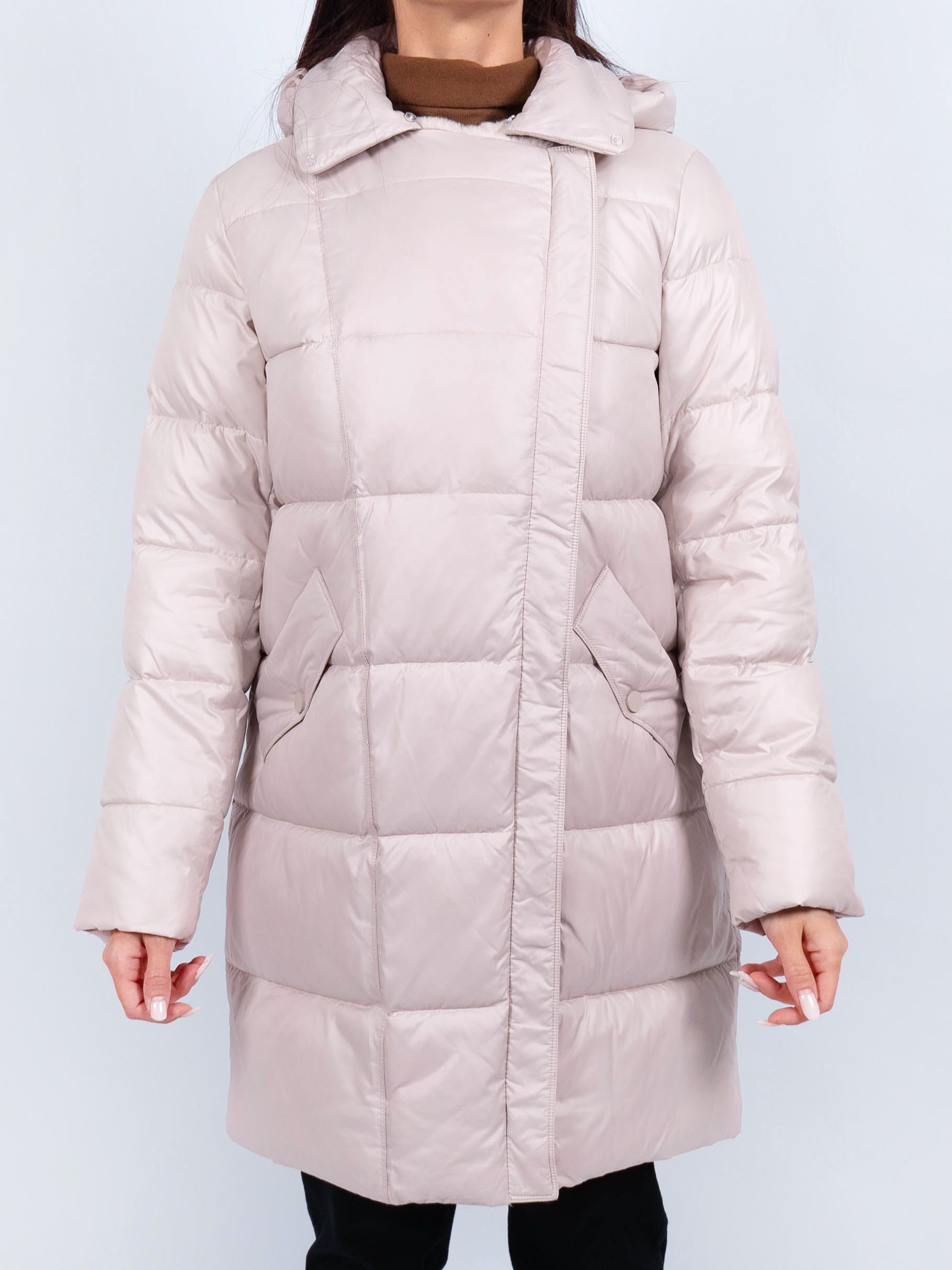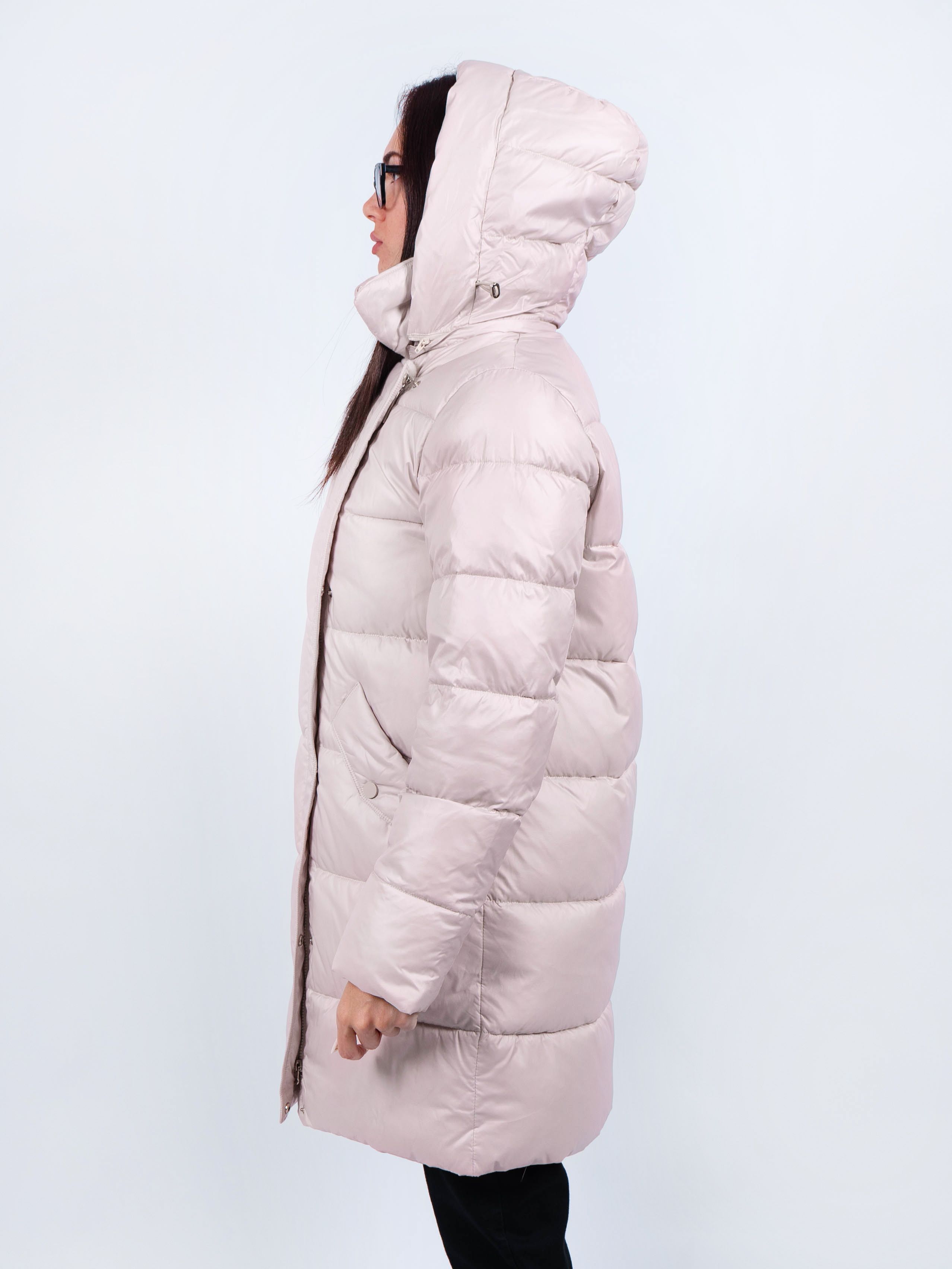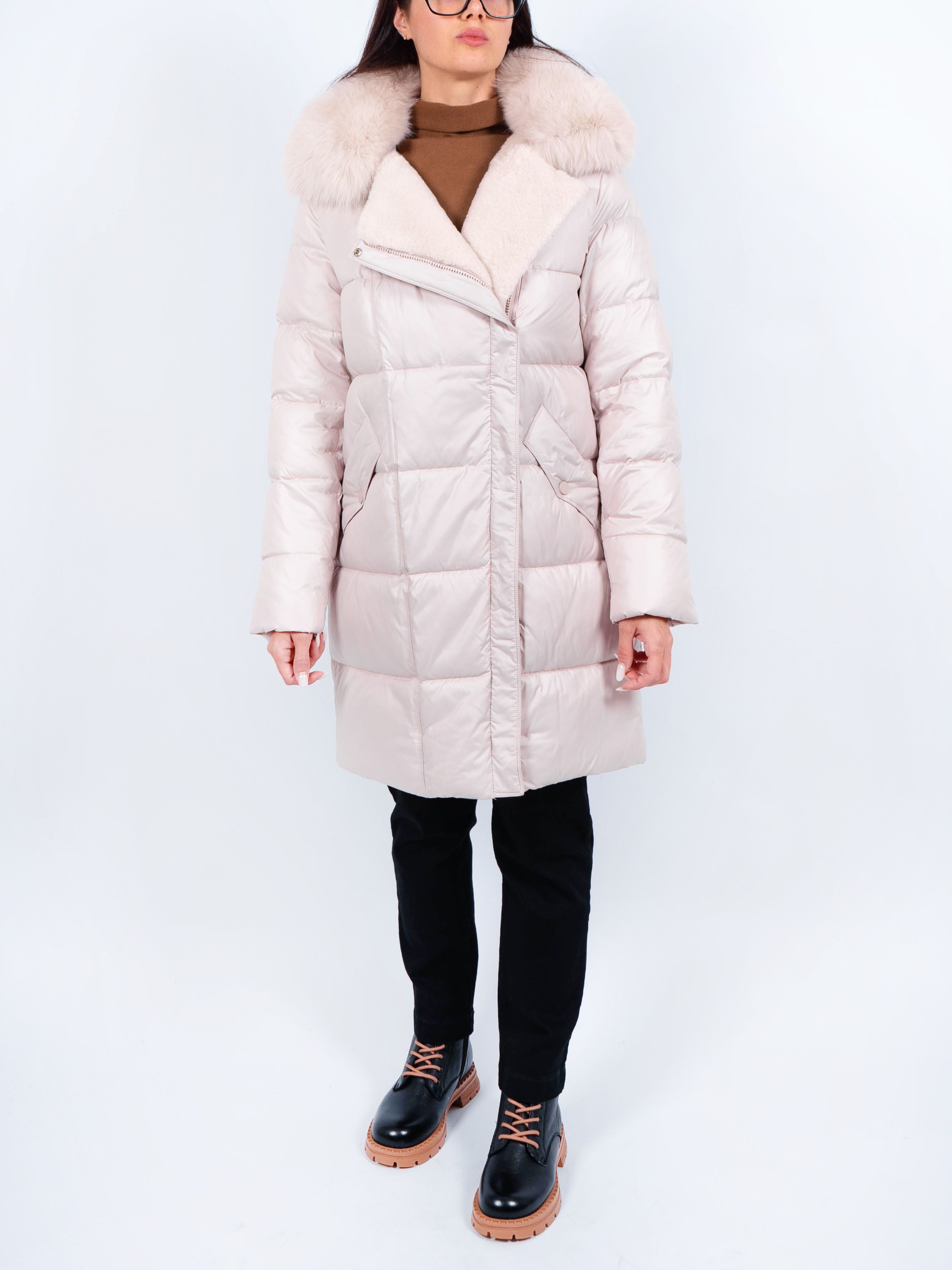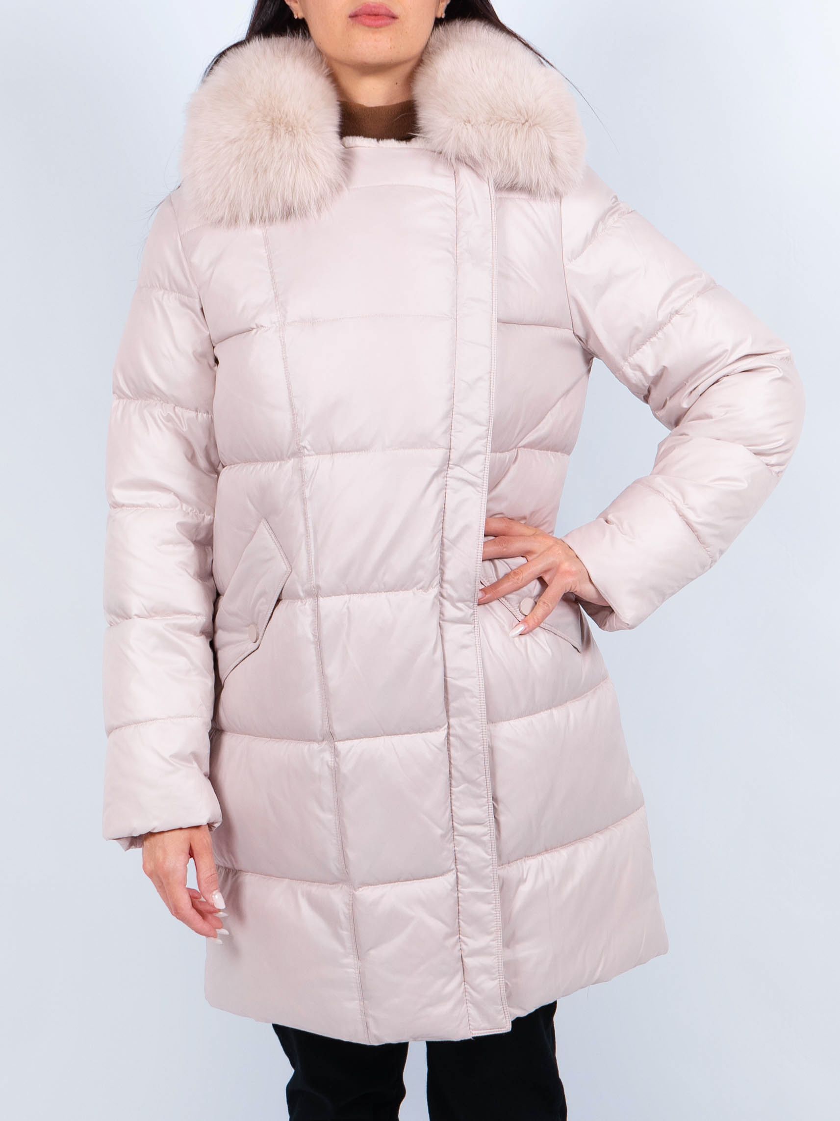 Дизайн данного пальто очаровывает своей простотой и изысканностью. Оно имеет удобную застежку на молнию и кнопки, что позволяет легко и быстро надевать и снимать куртку. Мех на капюшоне придает модели особую изящность и подчеркивает женственность образа. Капюшон и мех на капюшоне съемные. А карманы на кнопках не только добавляют функциональности, но и являются стильным акцентом на модели. Вы сможете без проблем хранить в них необходимые мелочи или просто разместить руки для дополнительного комфорта. Длина изделия 90 см.