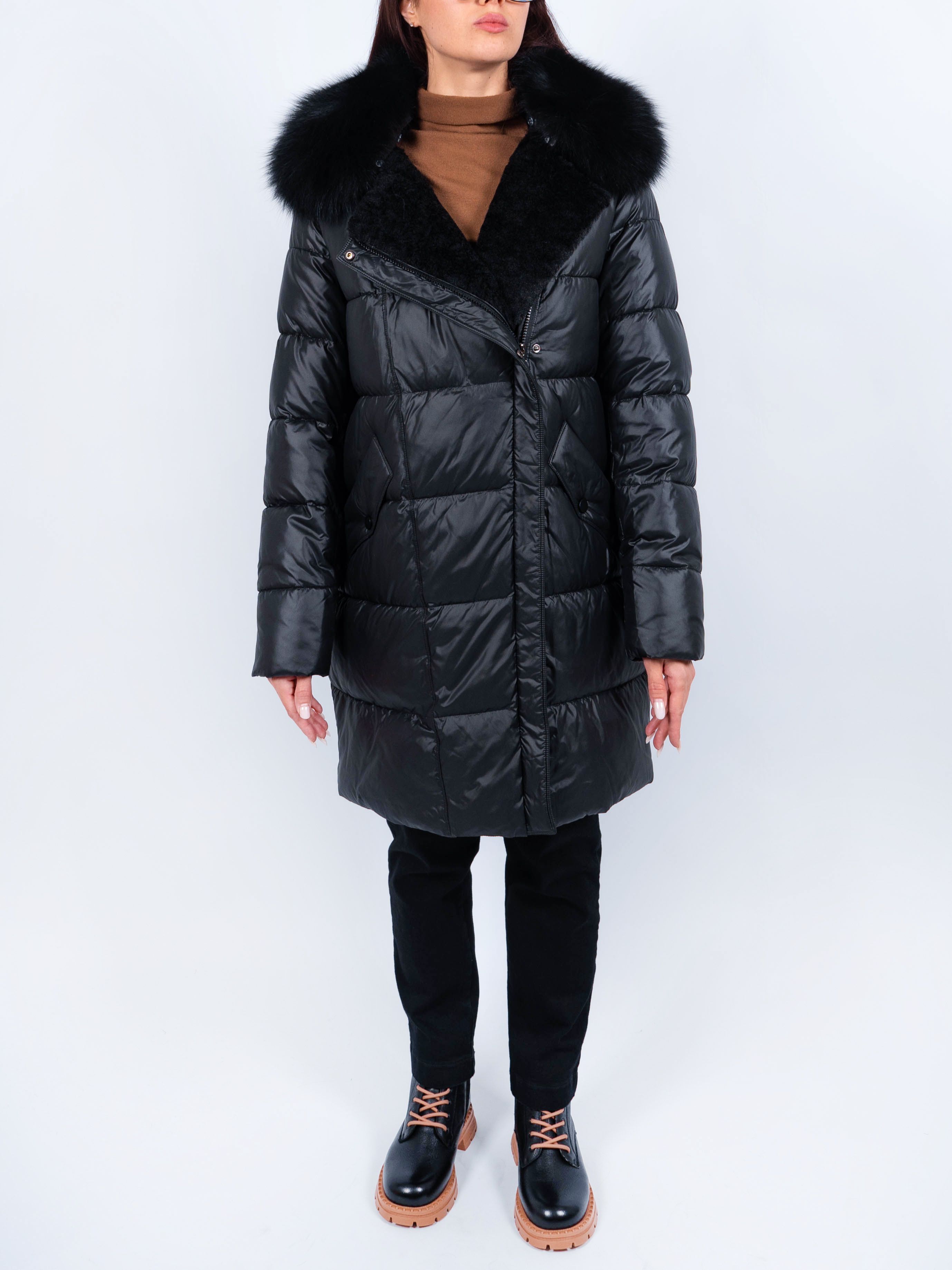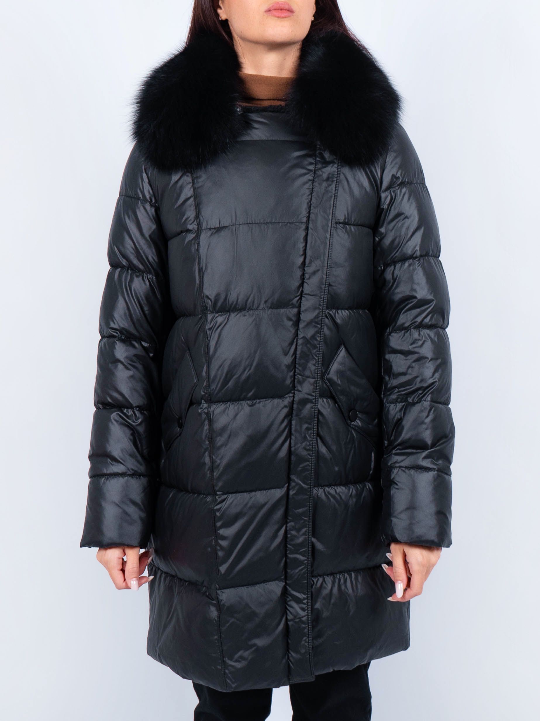 Дизайн данного пальто очаровывает своей простотой и изысканностью. Оно имеет удобную застежку на молнию и кнопки, что позволяет легко и быстро надевать и снимать куртку. Мех на капюшоне придает модели особую изящность и подчеркивает женственность образа. Капюшон и мех на капюшоне съемные. А карманы на кнопках не только добавляют функциональности, но и являются стильным акцентом на модели. Вы сможете без проблем хранить в них необходимые мелочи или просто разместить руки для дополнительного комфорта. Длина изделия 90 см.