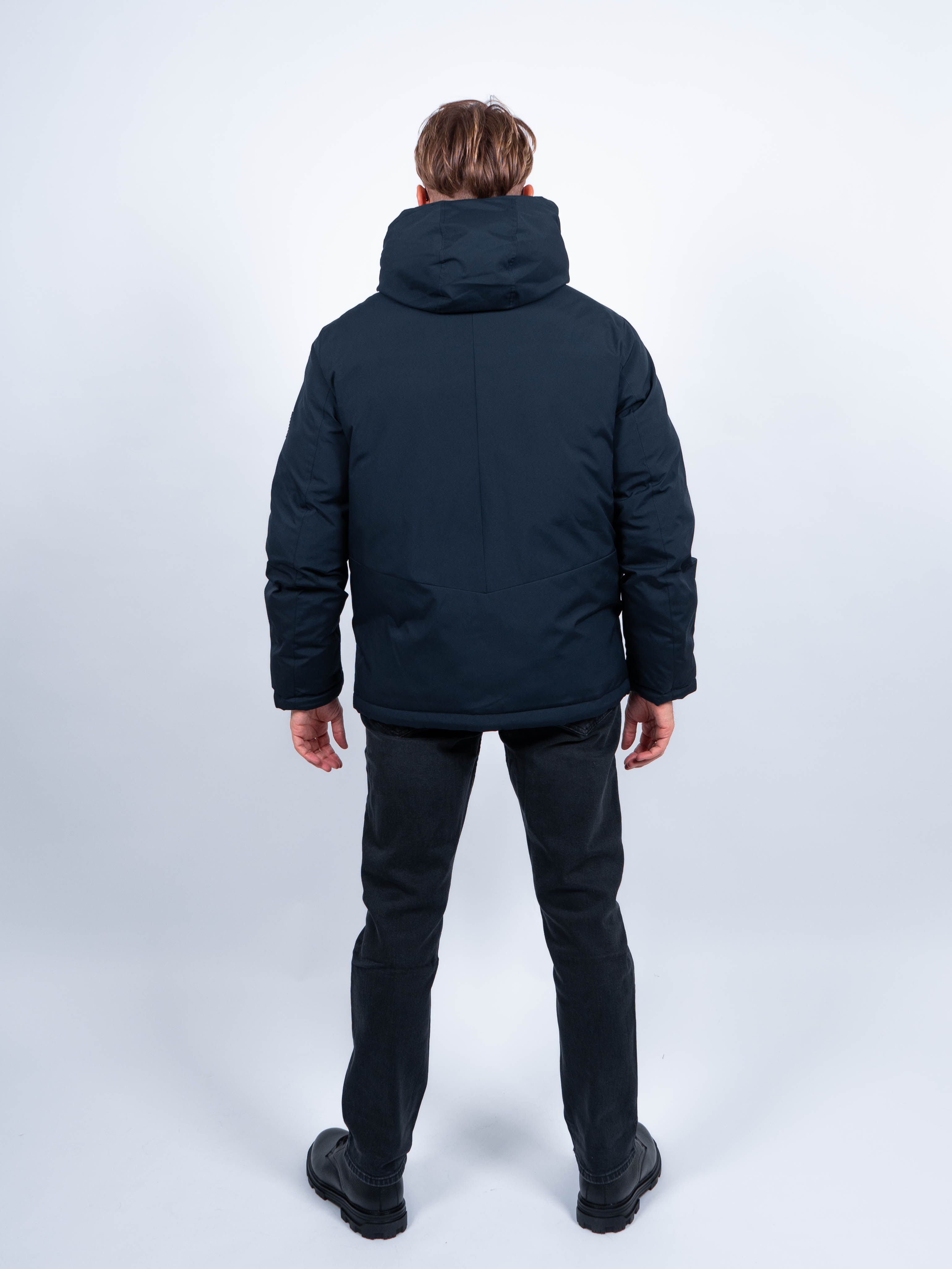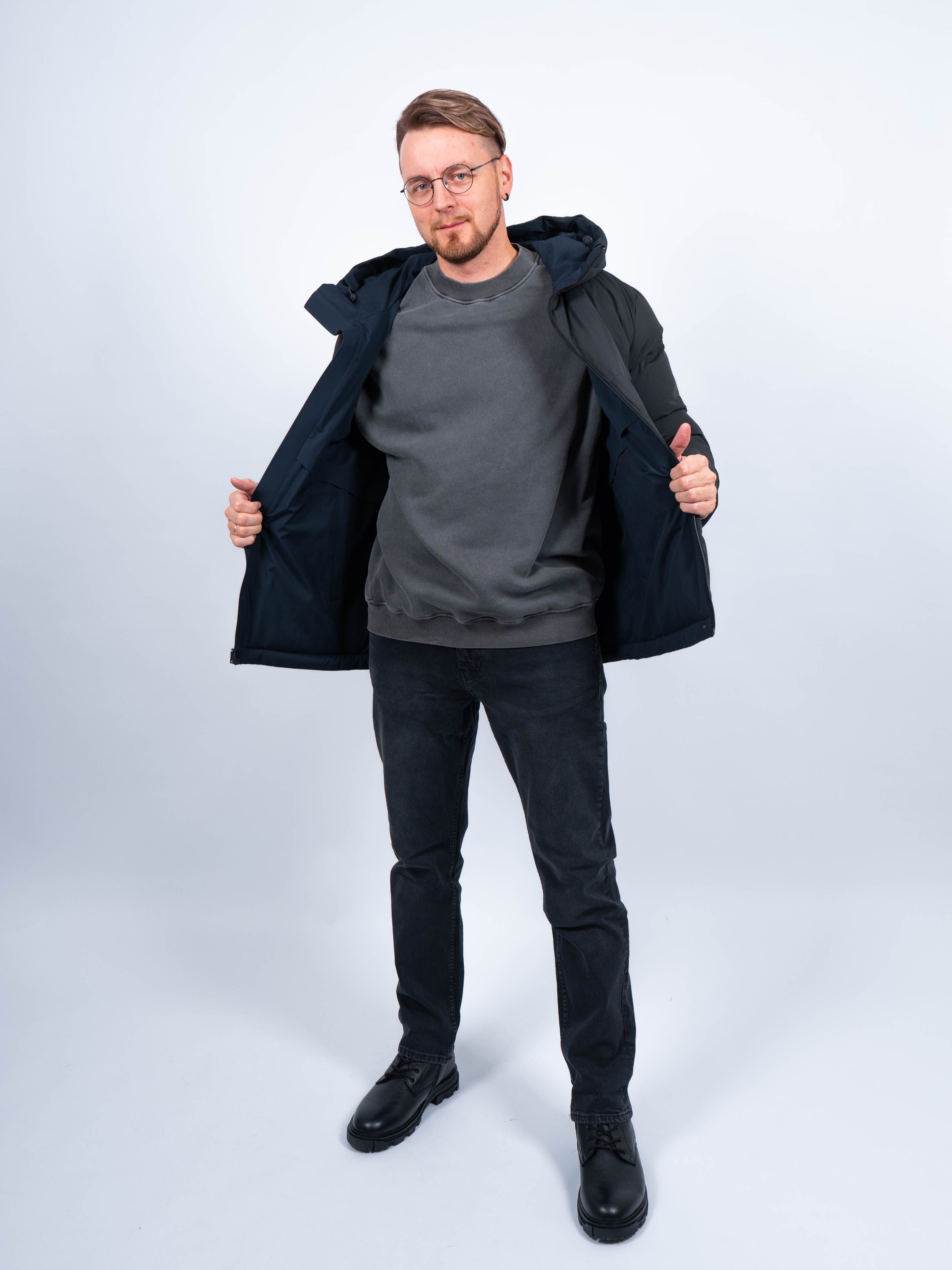Двухсторонняя куртка отлично держит форму, выглядит стильно. Зимняя куртка произведена в Китае.