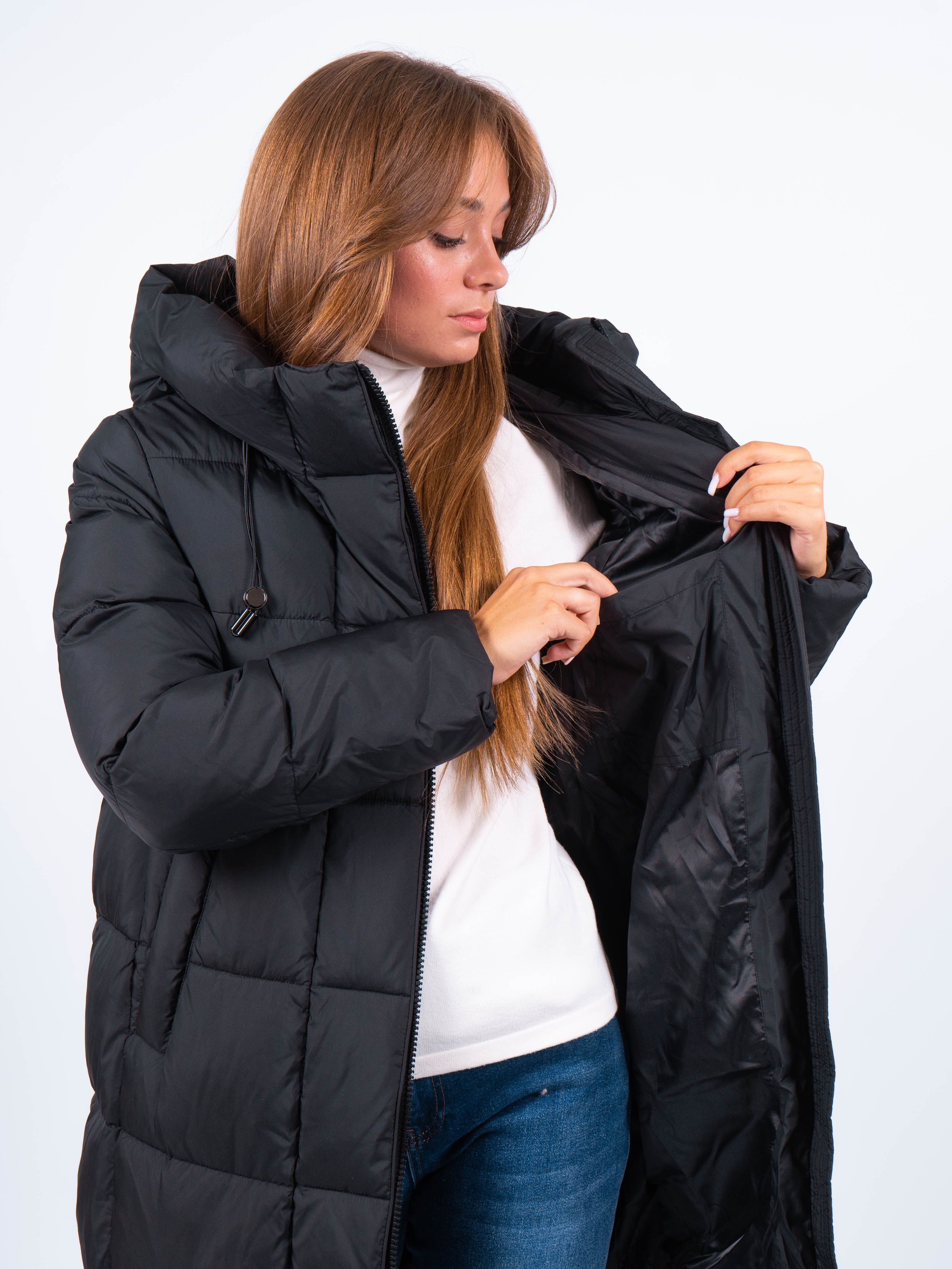 Куртка прямого кроя идеальна для женщин, высокого и невысокого роста. Эта удлиненная куртка выполнена из высококачественных материалов – 100% полиэстера, что обеспечивает комфорт и тепло в холодное время года.