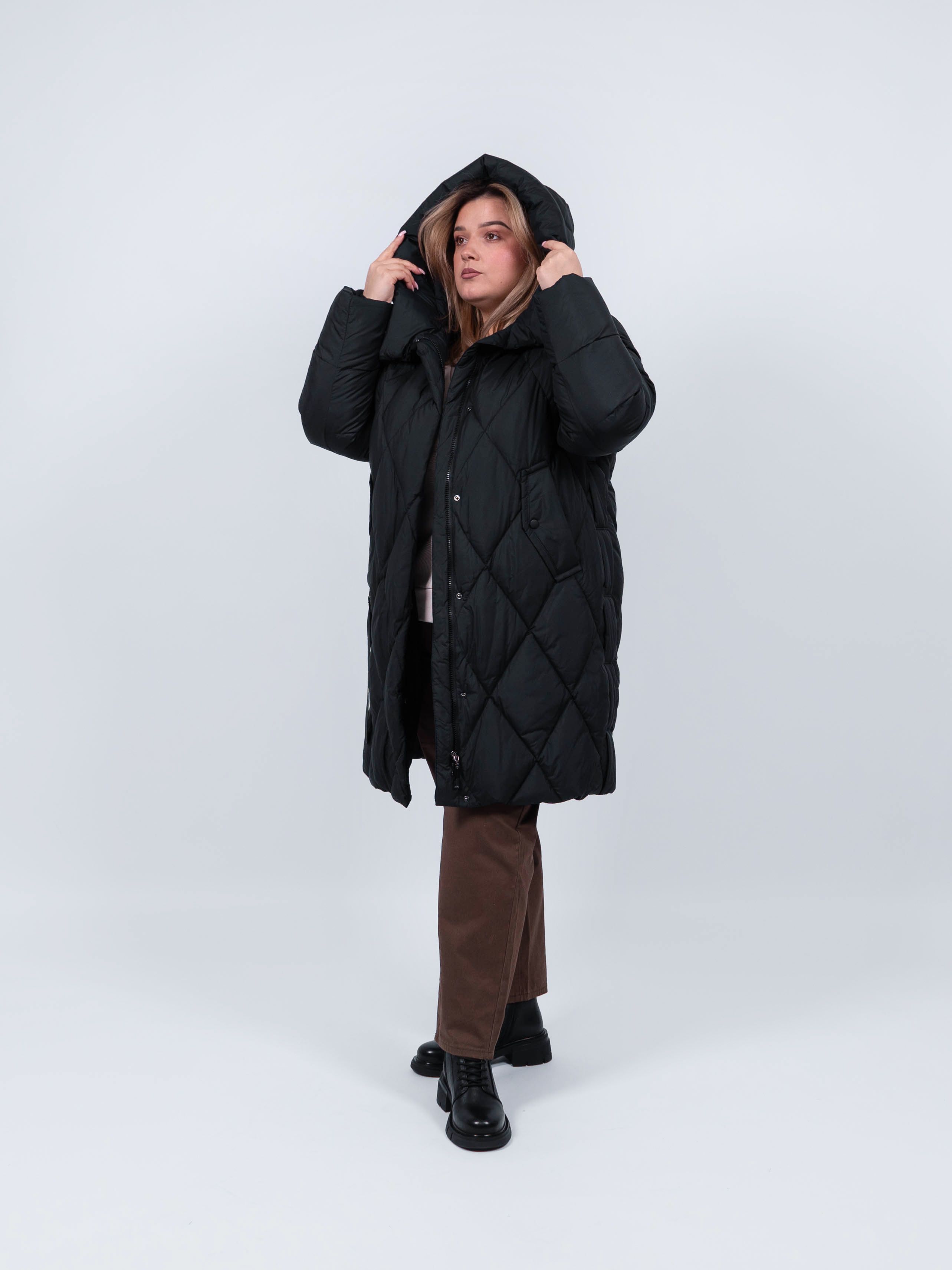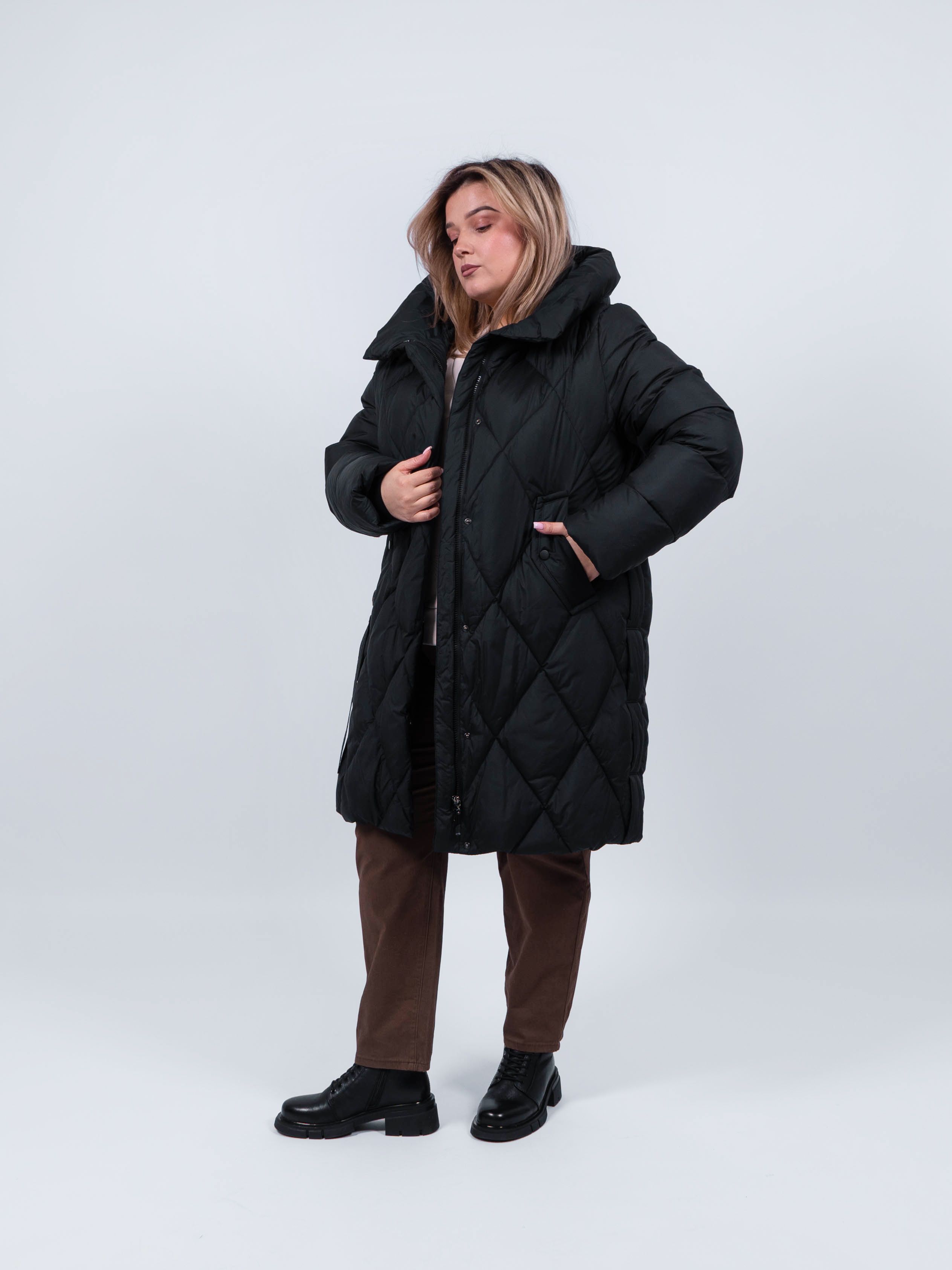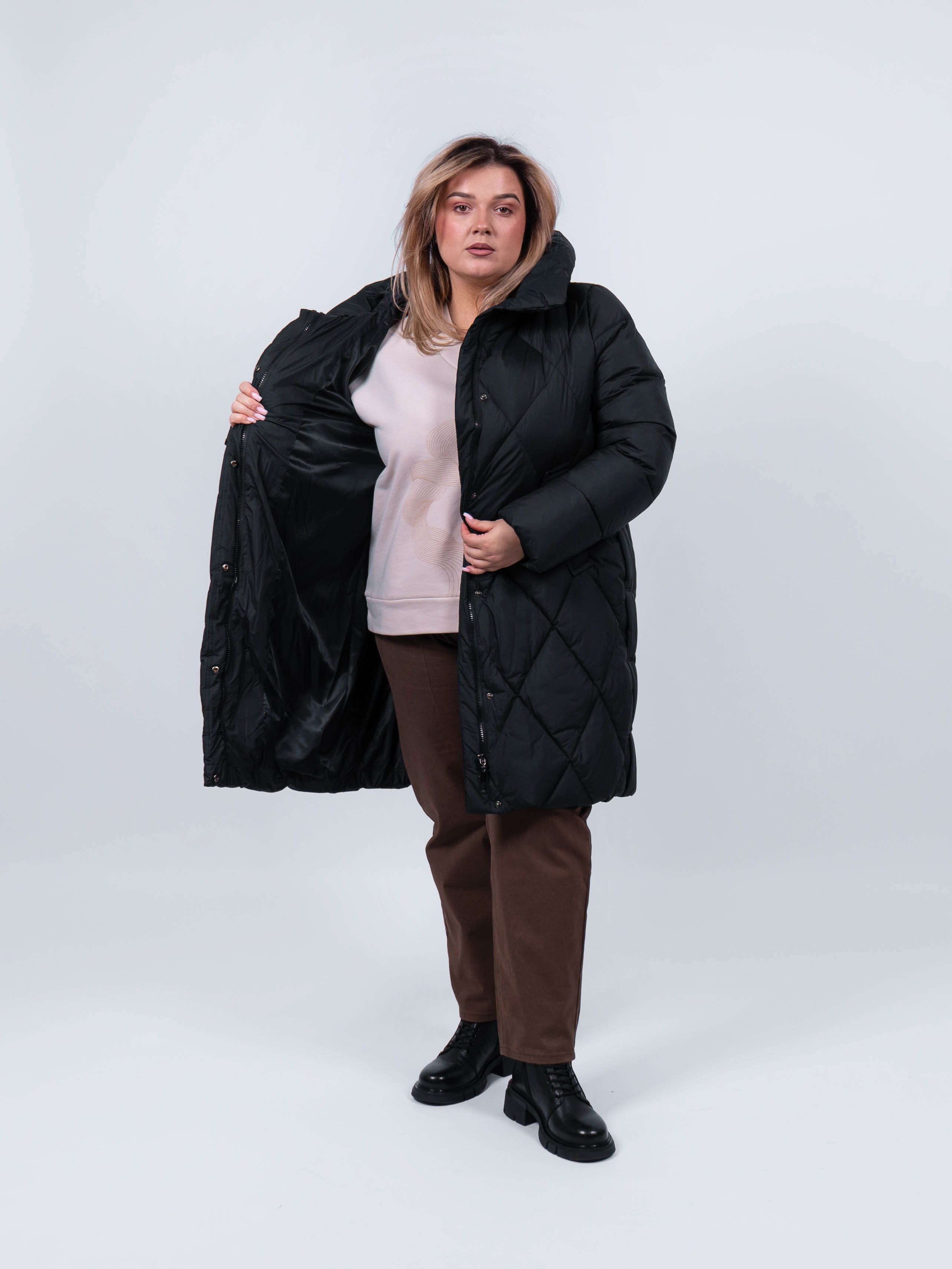 Пальто женское от obuv365 в черном цвете - идеальный выбор верхней одежды для зимнего и демисезонного - осеннего и весеннего периода. Удлиненная куртка прямого кроя представлена в больших размерах, что делает ее идеальным выбором для плюс - сайз женщин, высокого и невысокого роста. Изделие с утеплителем из полиэстера подходит на зиму, позднюю осень или раннюю весну. Утепленное пальто отлично держит форму. выглядит стильно и модно.