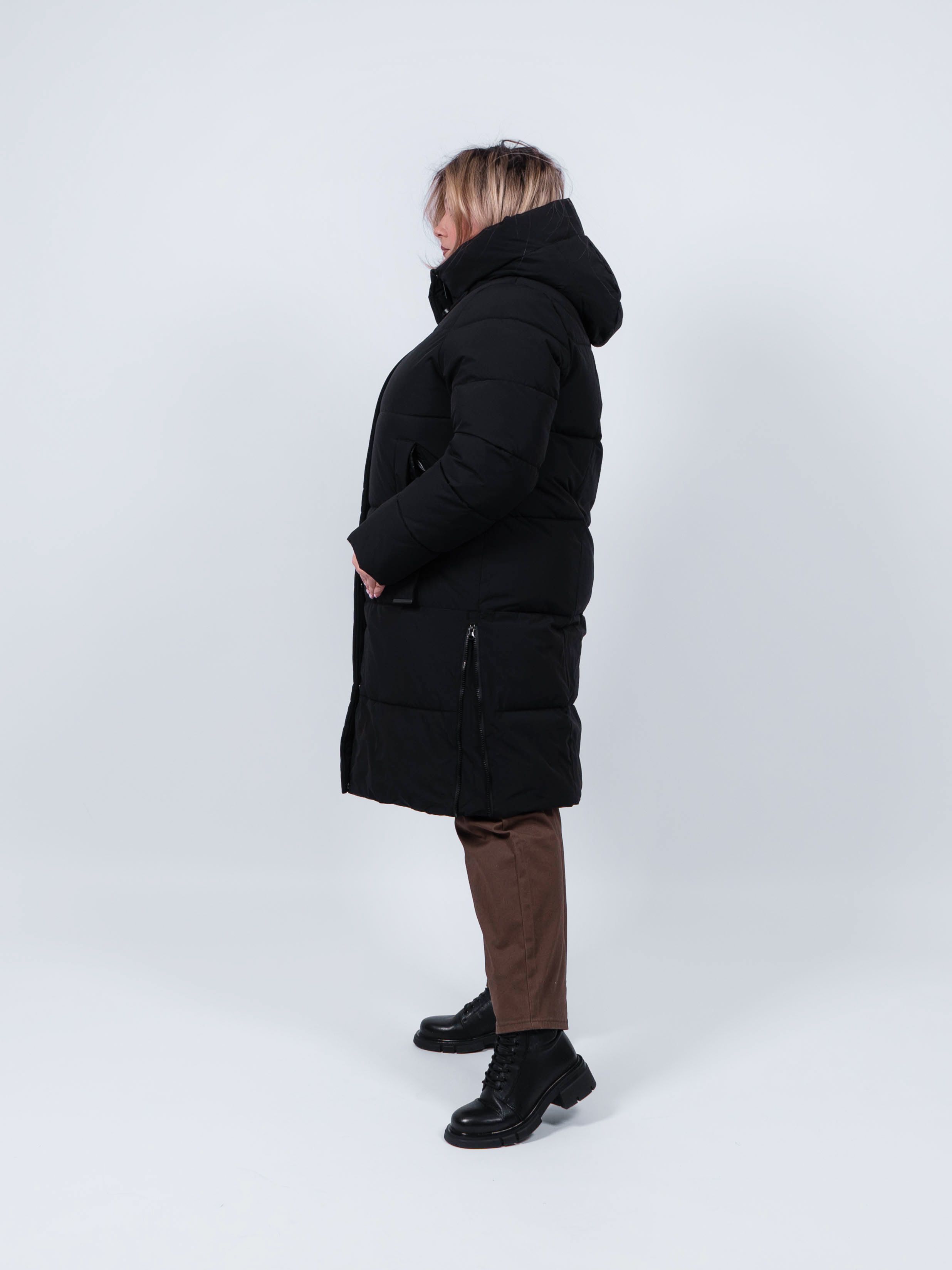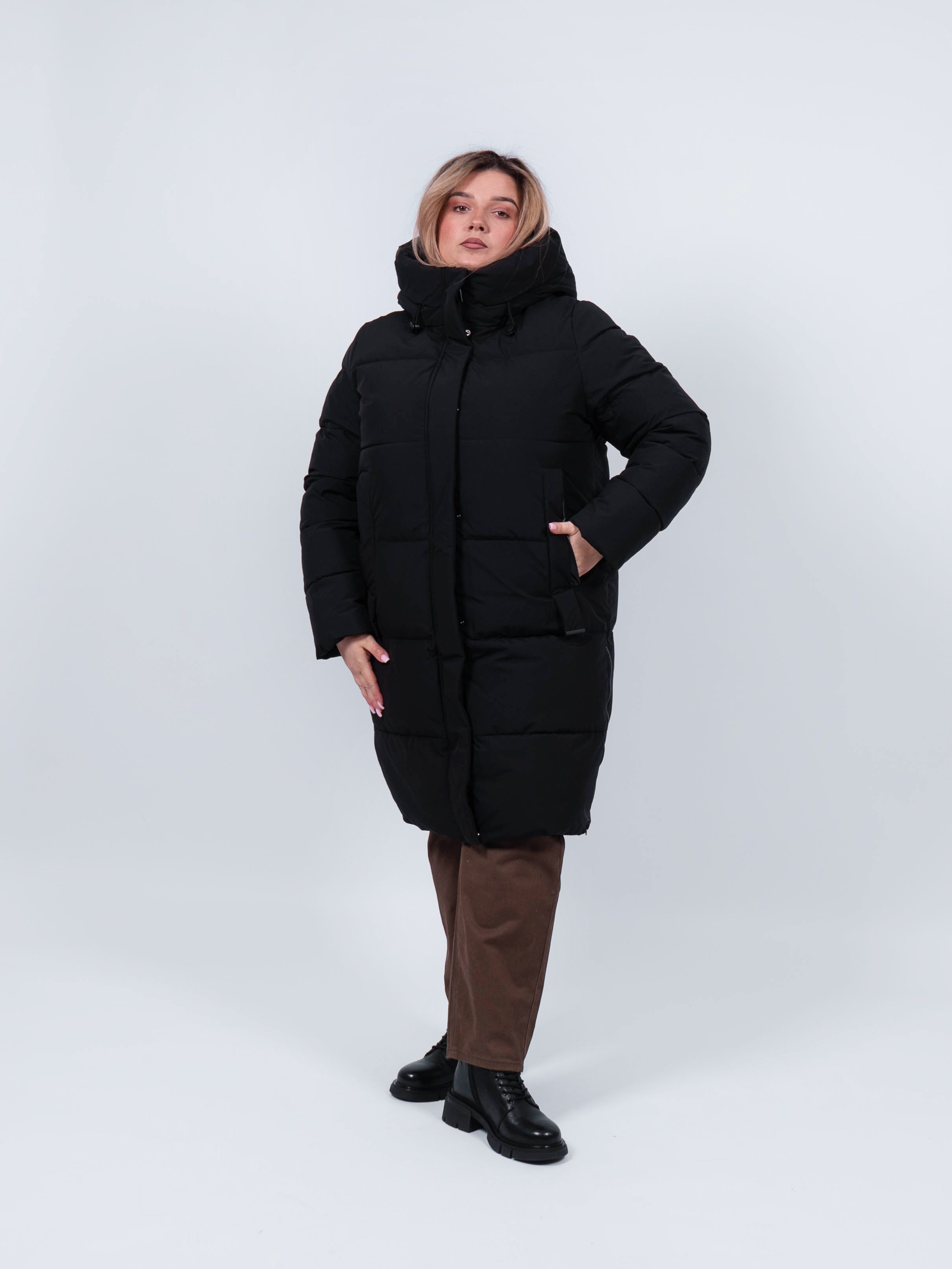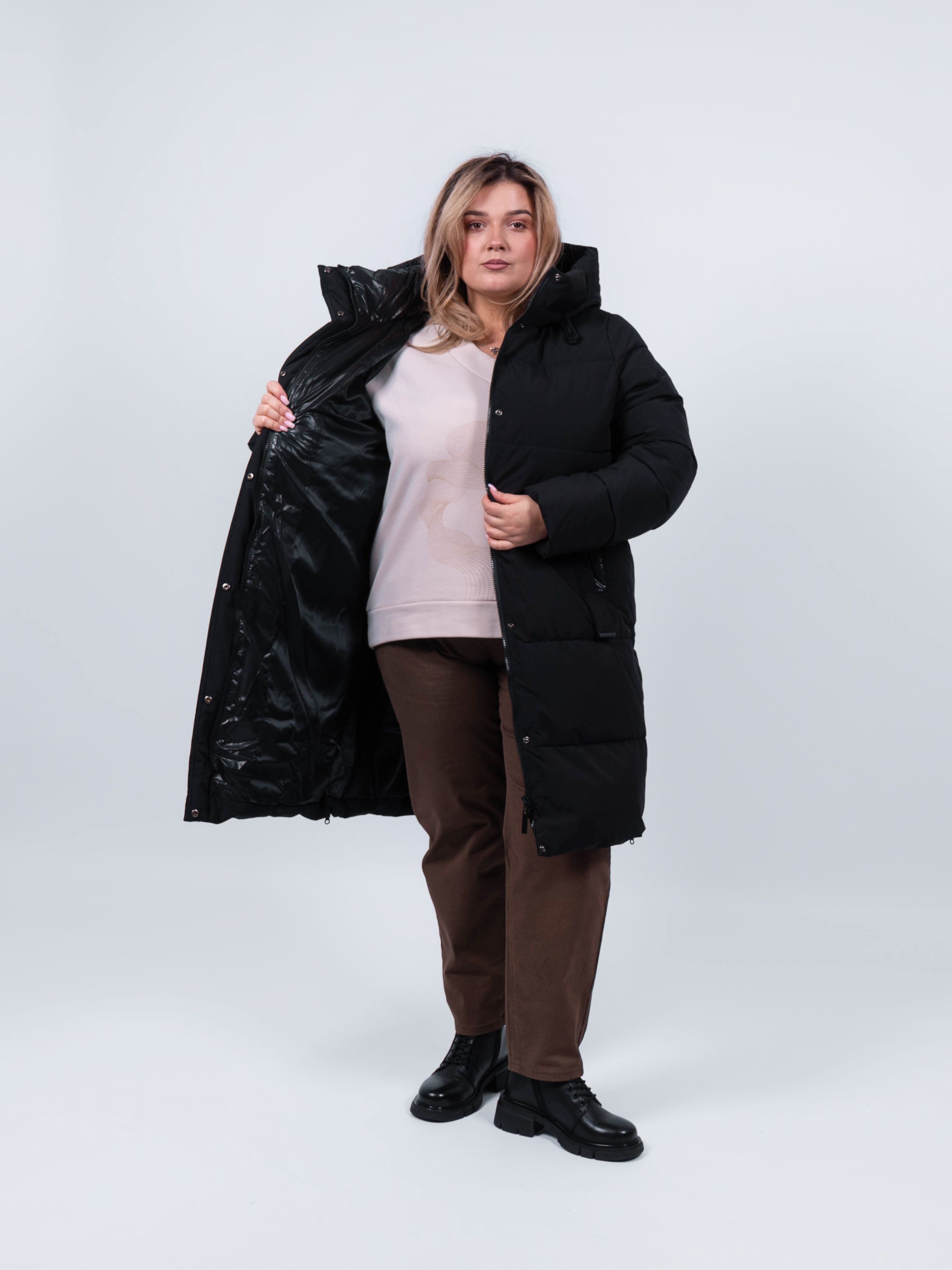 Пальто женское от obuv365 в черном цвете - идеальный выбор верхней одежды для зимнего и демисезонного - осеннего и весеннего периода. Удлиненная куртка прямого кроя представлена в больших размерах, что делает ее идеальным выбором для плюс - сайз женщин, высокого и невысокого роста. Изделие с утеплителем из полиэстера подходит на зиму, позднюю осень или раннюю весну. Утепленное пальто отлично держит форму. выглядит стильно и модно.
