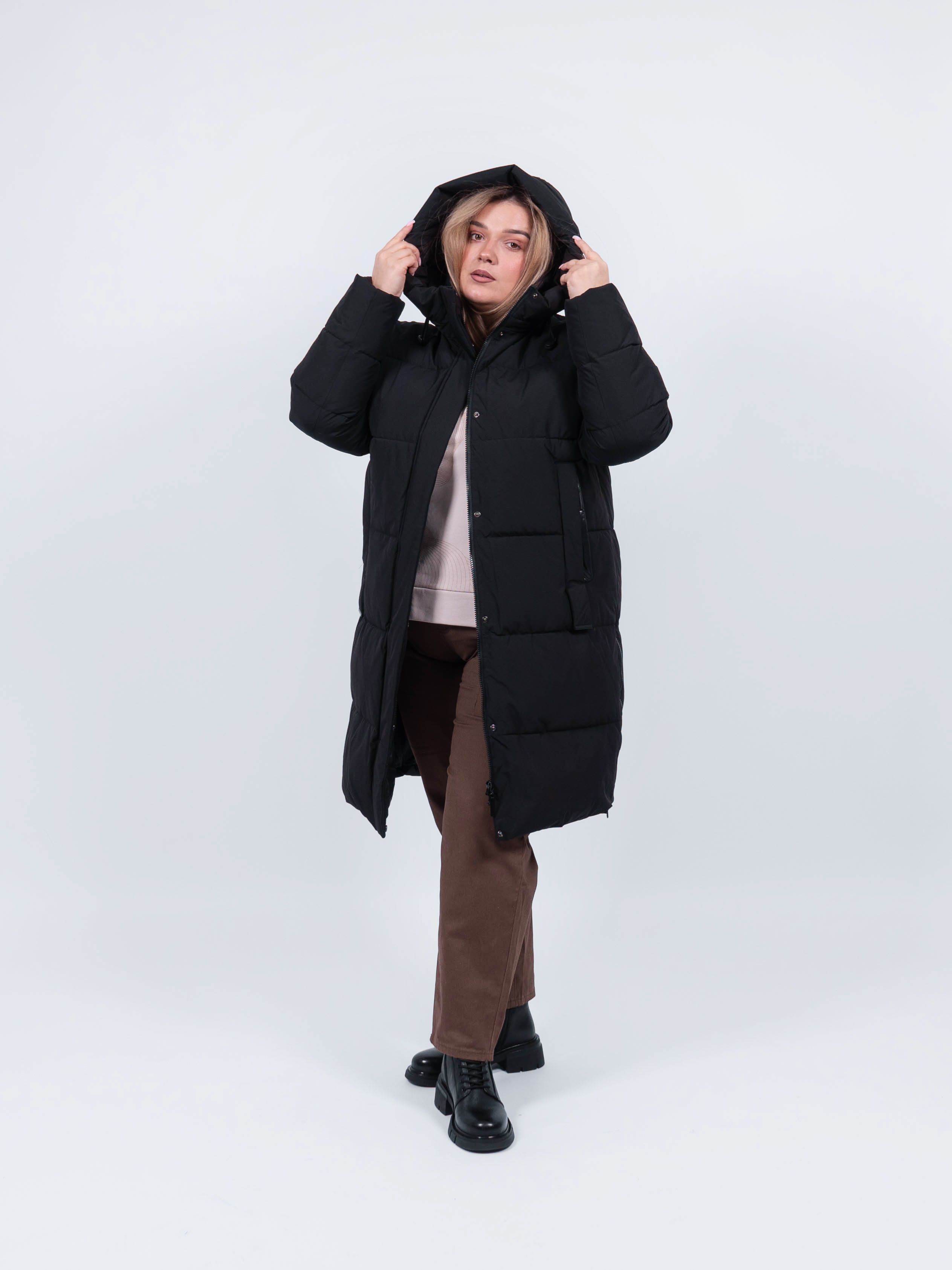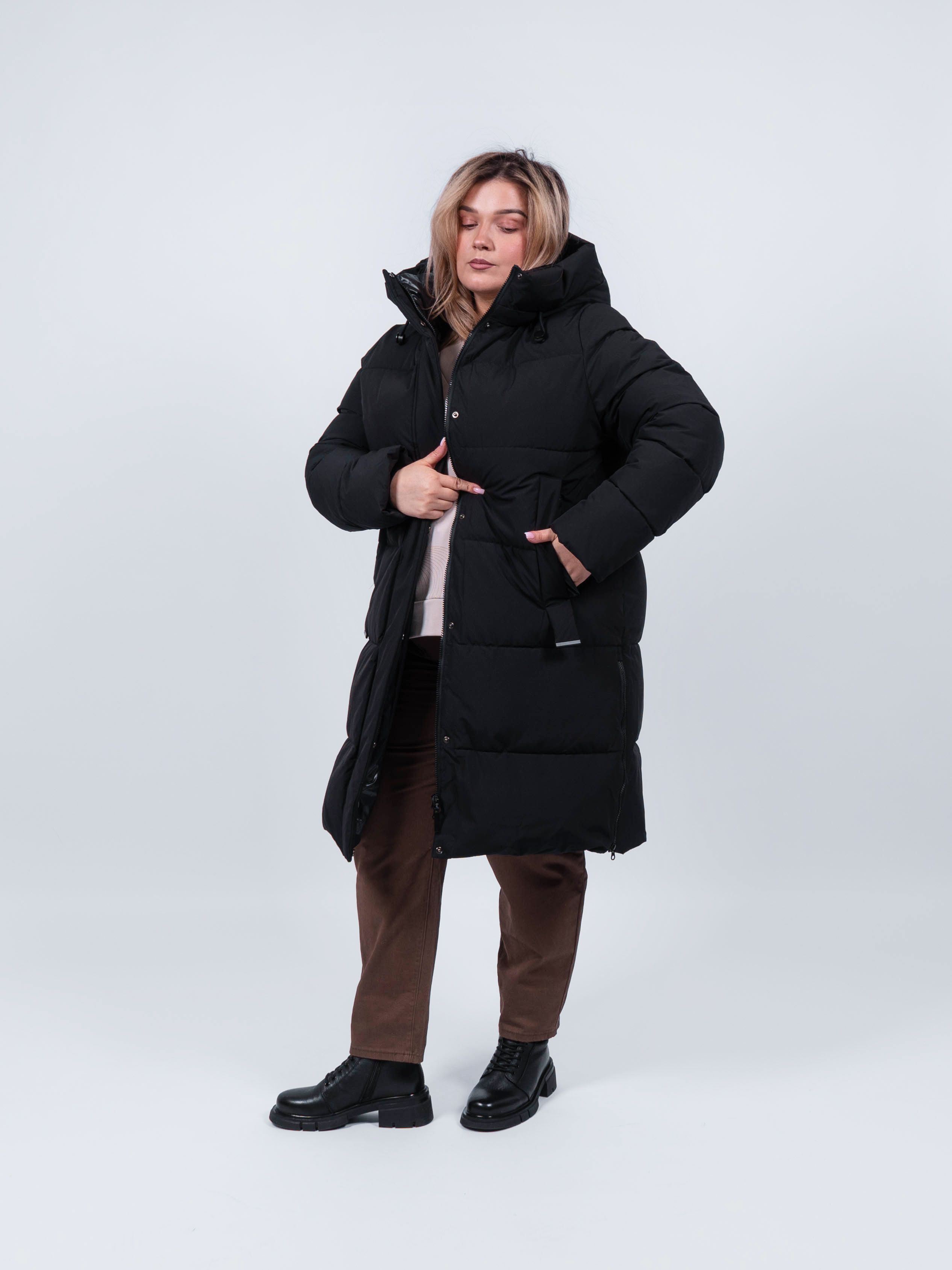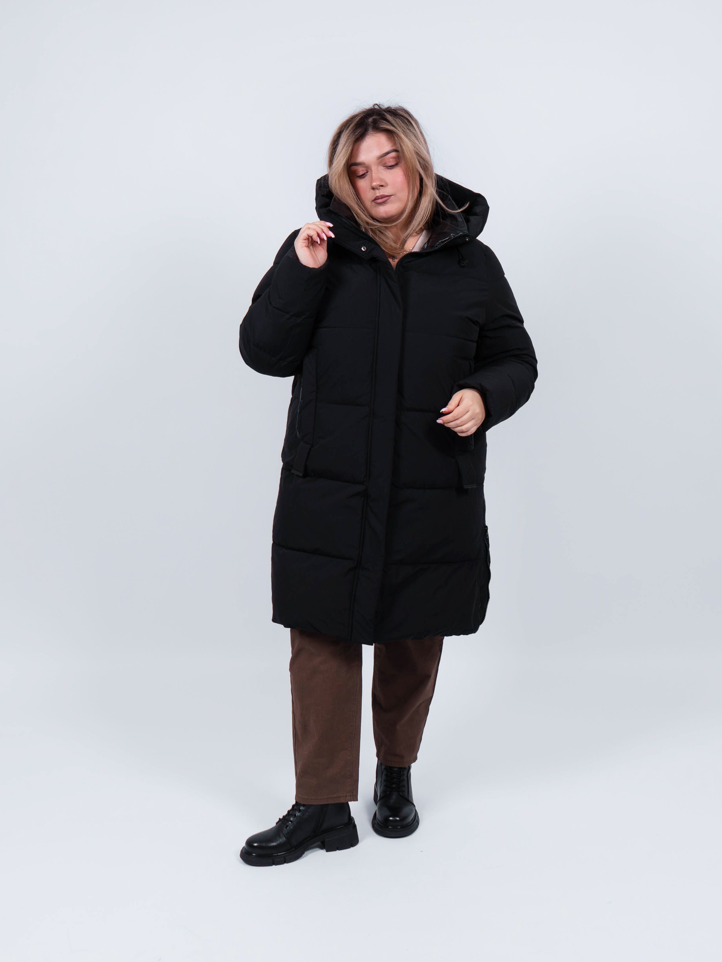 Пальто женское от obuv365 в черном цвете - идеальный выбор верхней одежды для зимнего и демисезонного - осеннего и весеннего периода. Удлиненная куртка прямого кроя представлена в больших размерах, что делает ее идеальным выбором для плюс - сайз женщин, высокого и невысокого роста. Изделие с утеплителем из полиэстера подходит на зиму, позднюю осень или раннюю весну. Утепленное пальто отлично держит форму. выглядит стильно и модно.