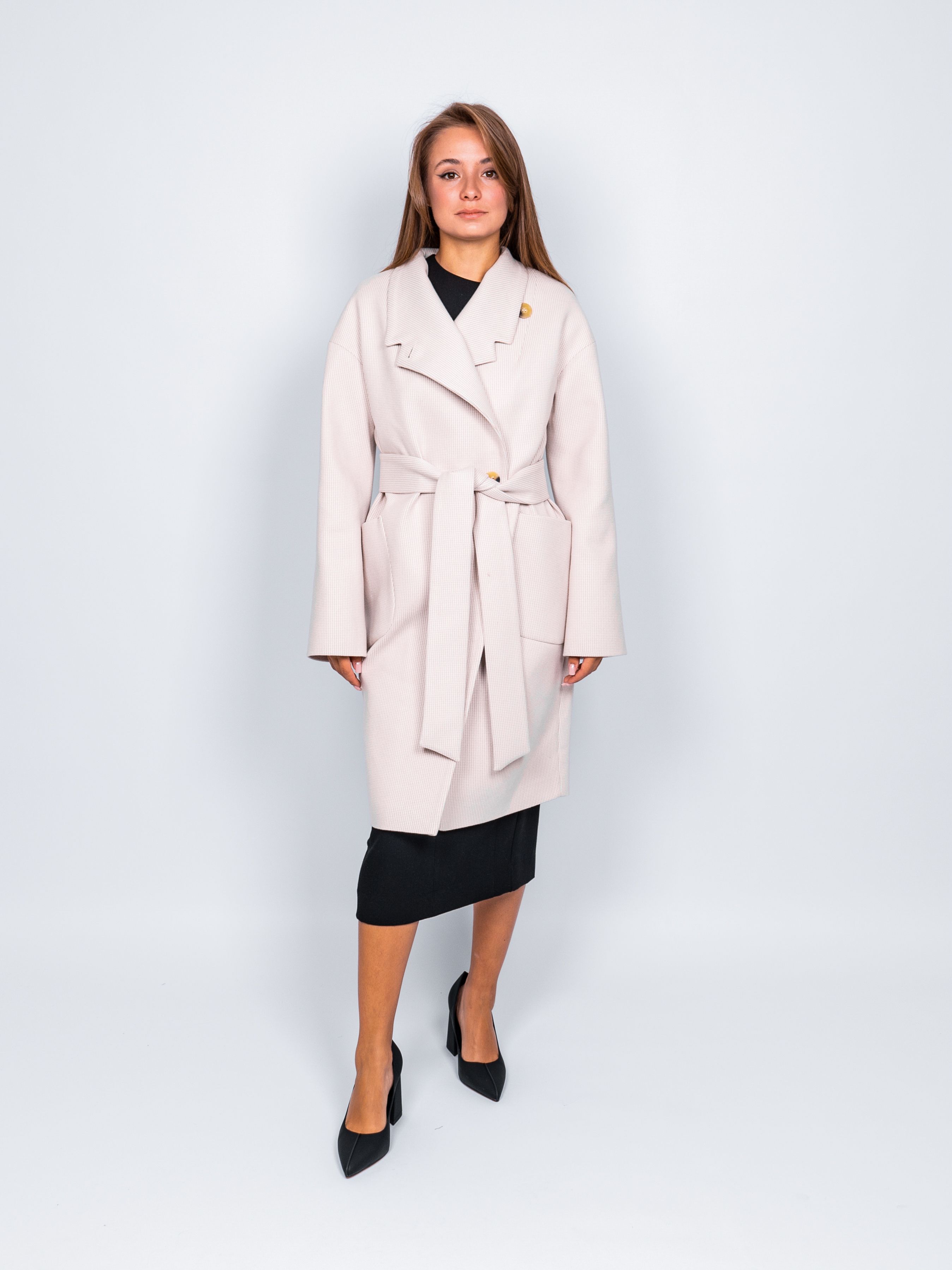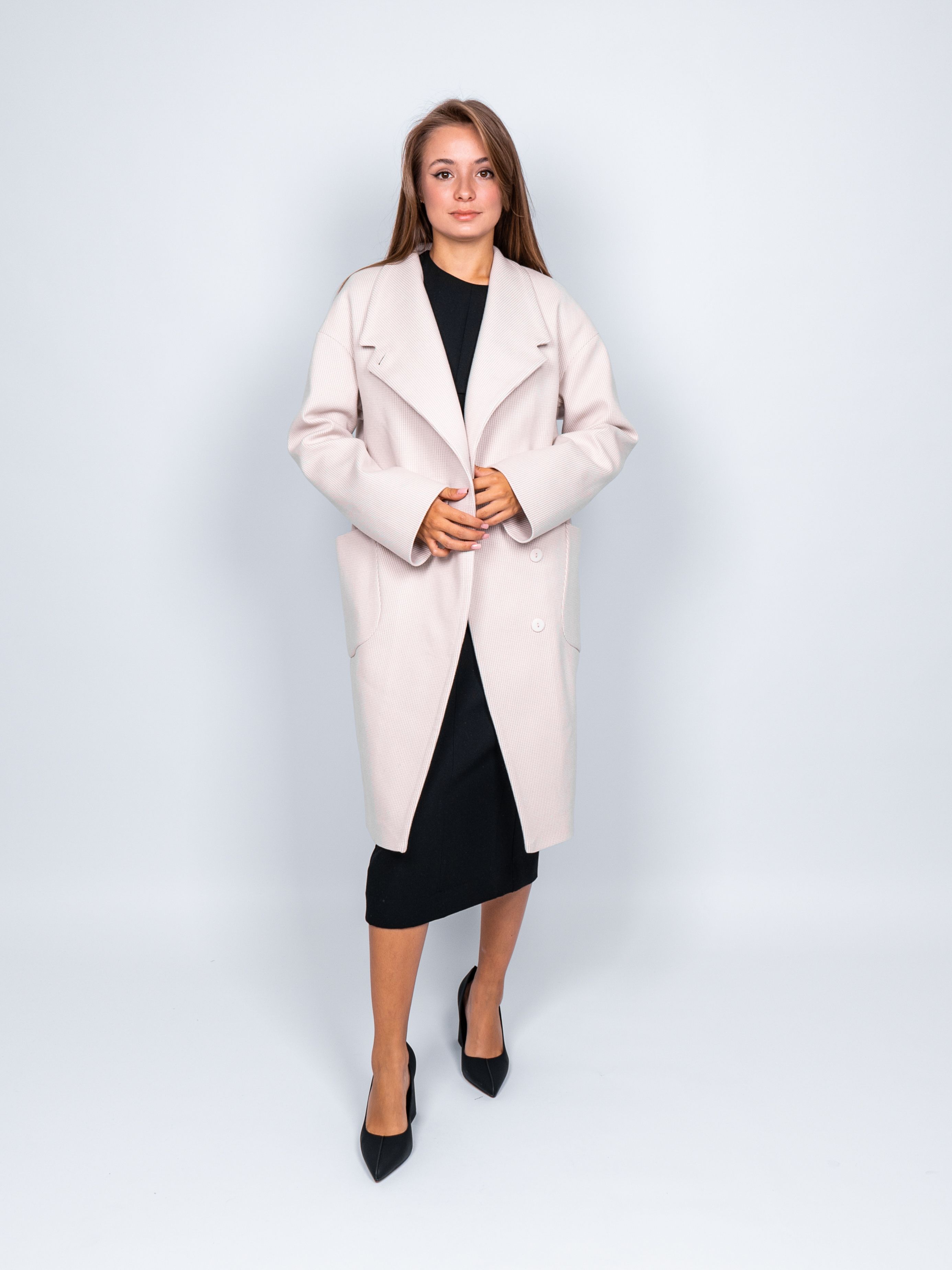 Оригинальное пальто добавит Вашему образу женственности, элегантности и шарма. Демисезонное пальто светло-бежевого цвета хорошо сочетается с любой обувью. Легкий оверсайз (oversize) позволяет создавать модные и современные образы.