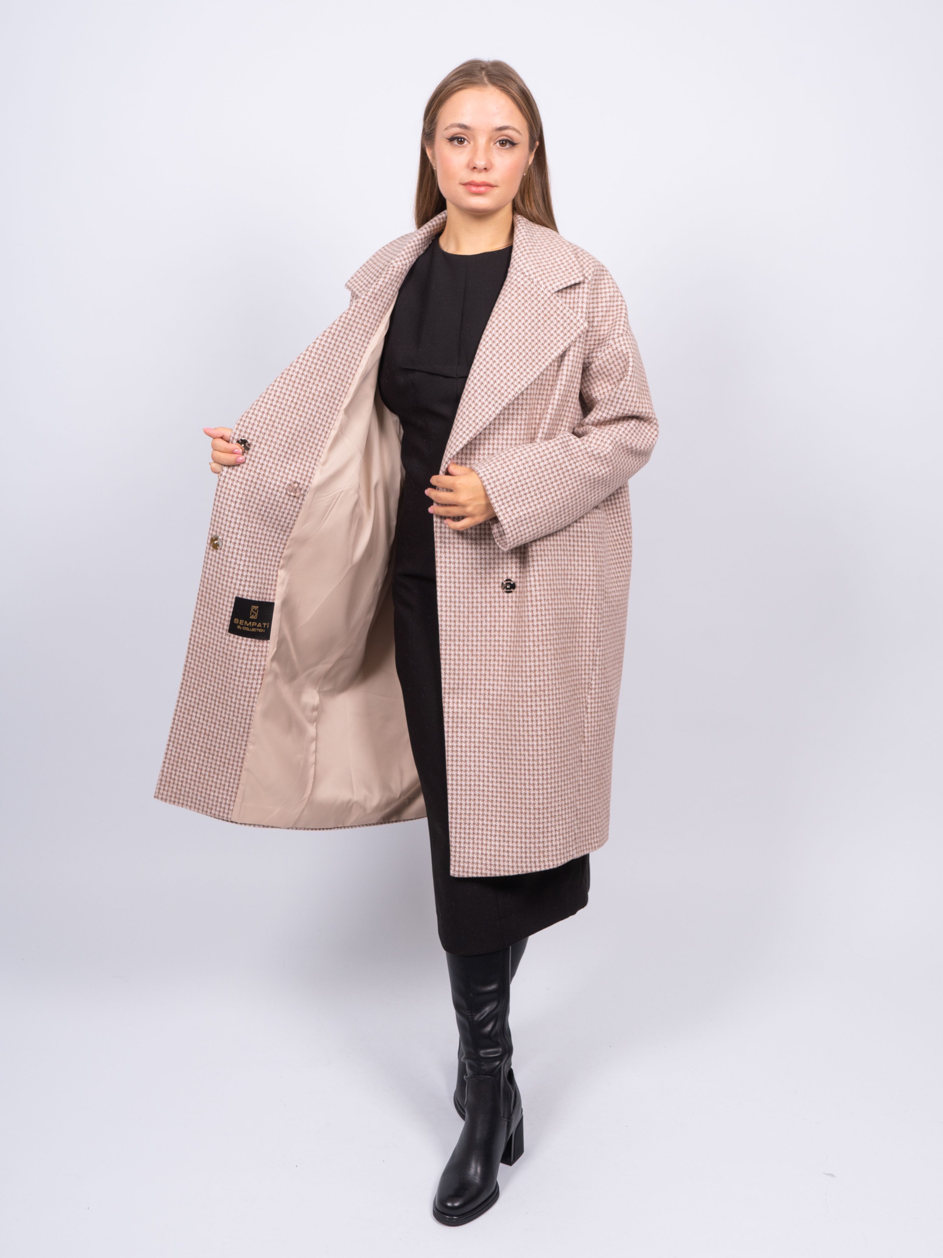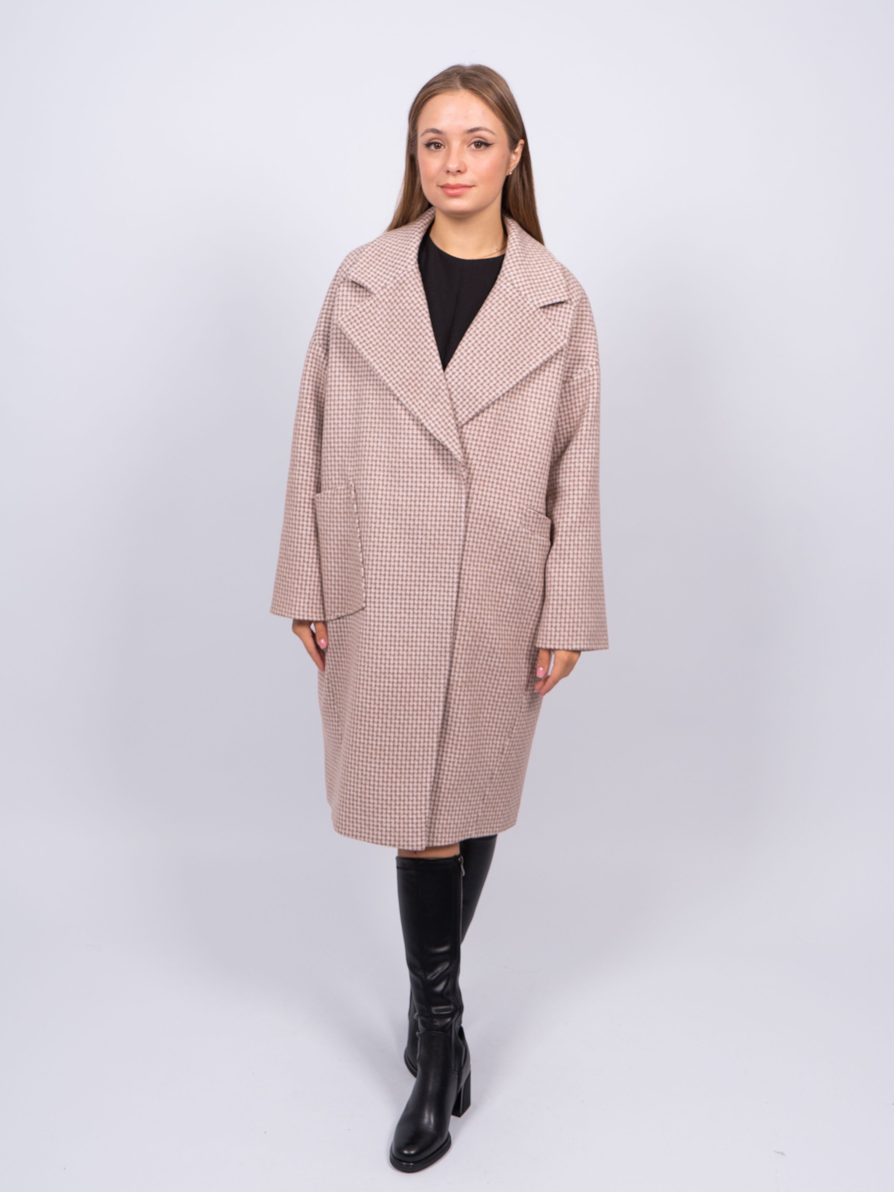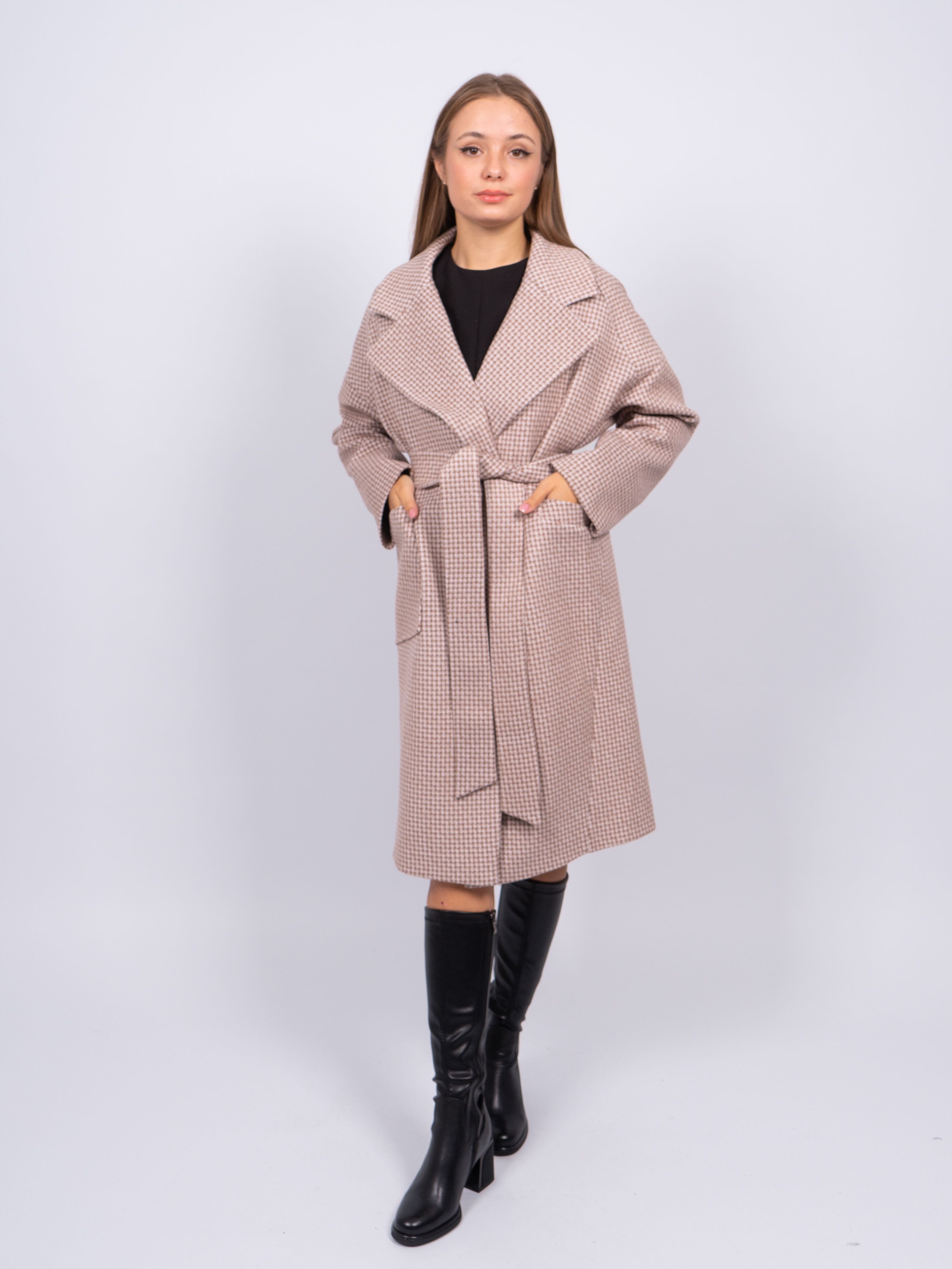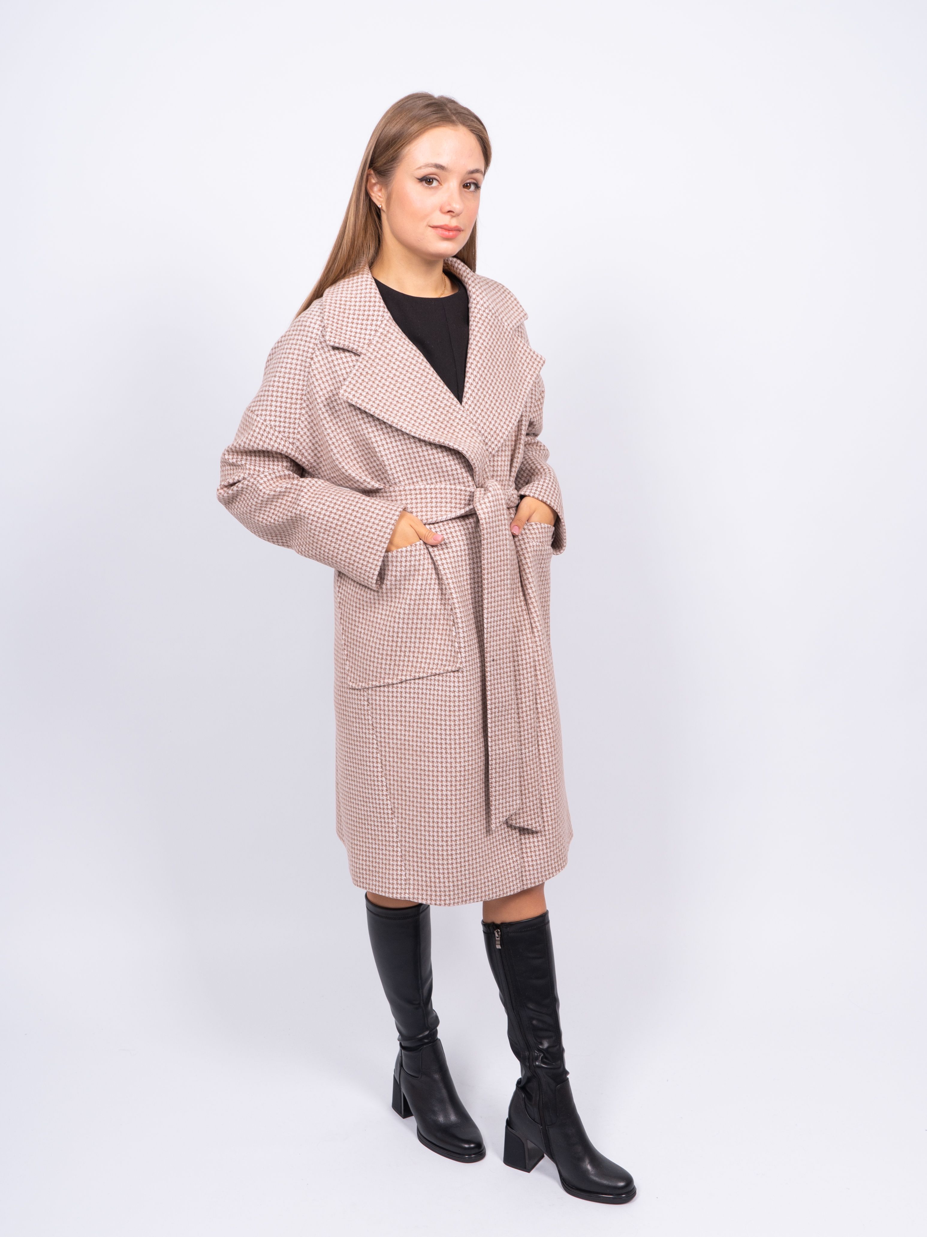 KR-291-Гус.лапка688 Пальто женское светло-бежевый Sempati