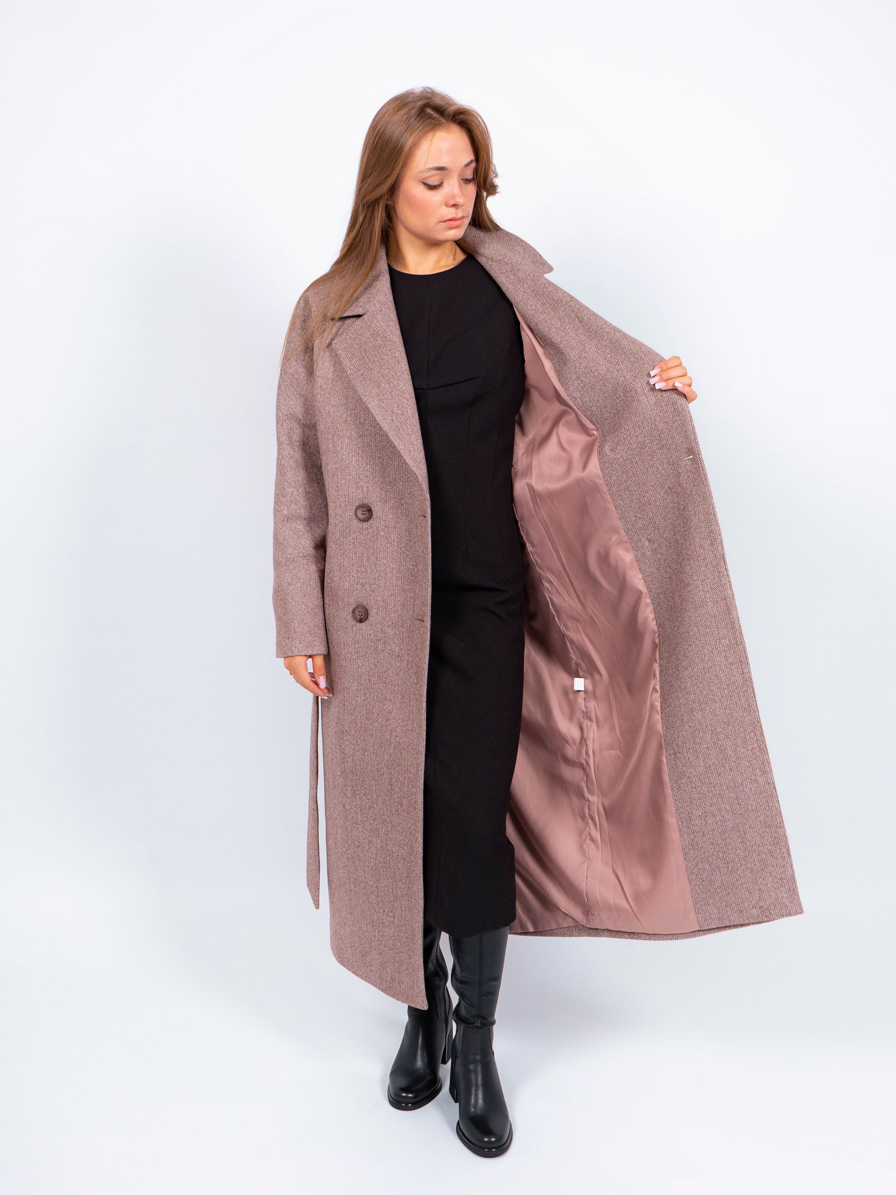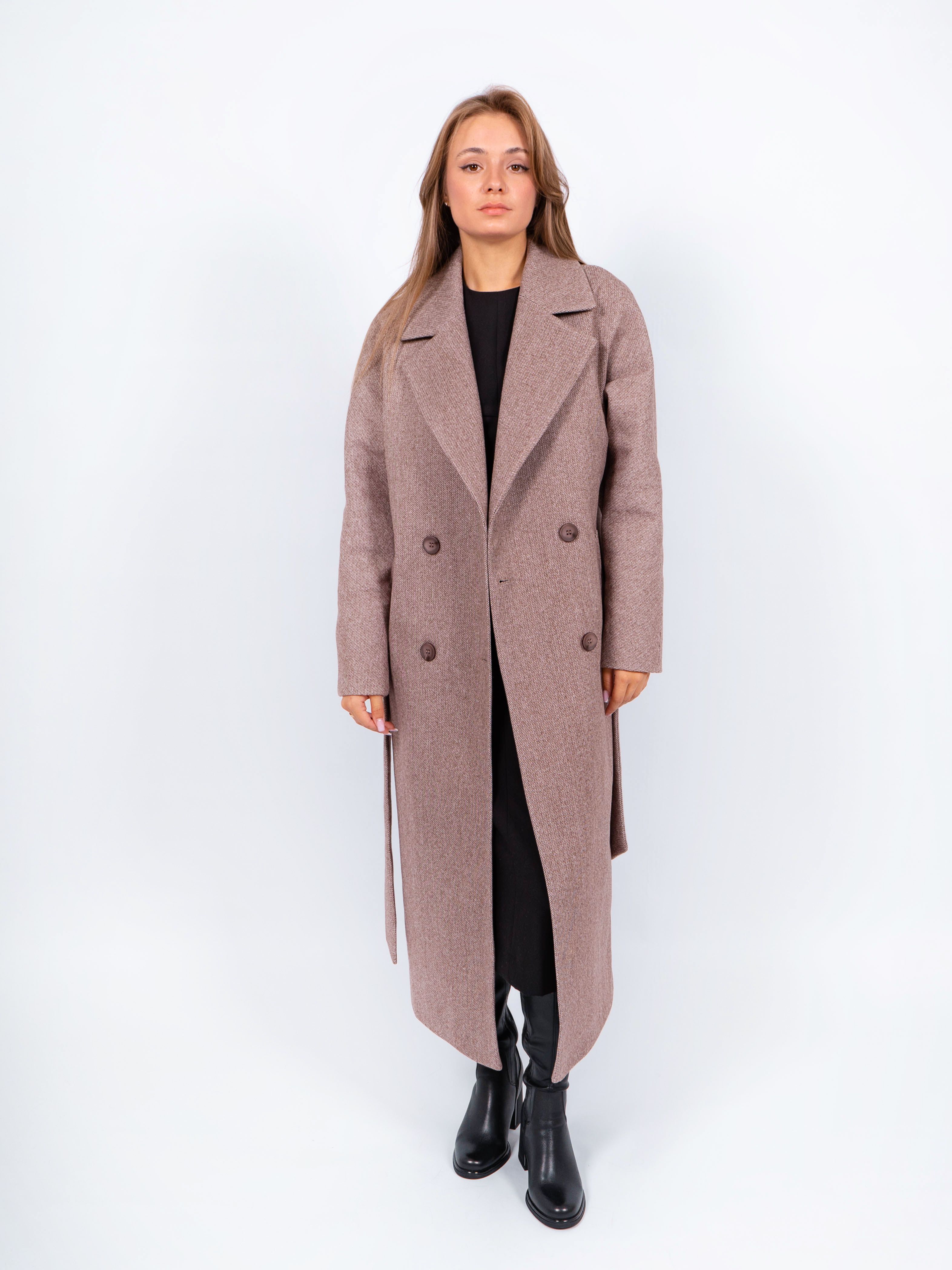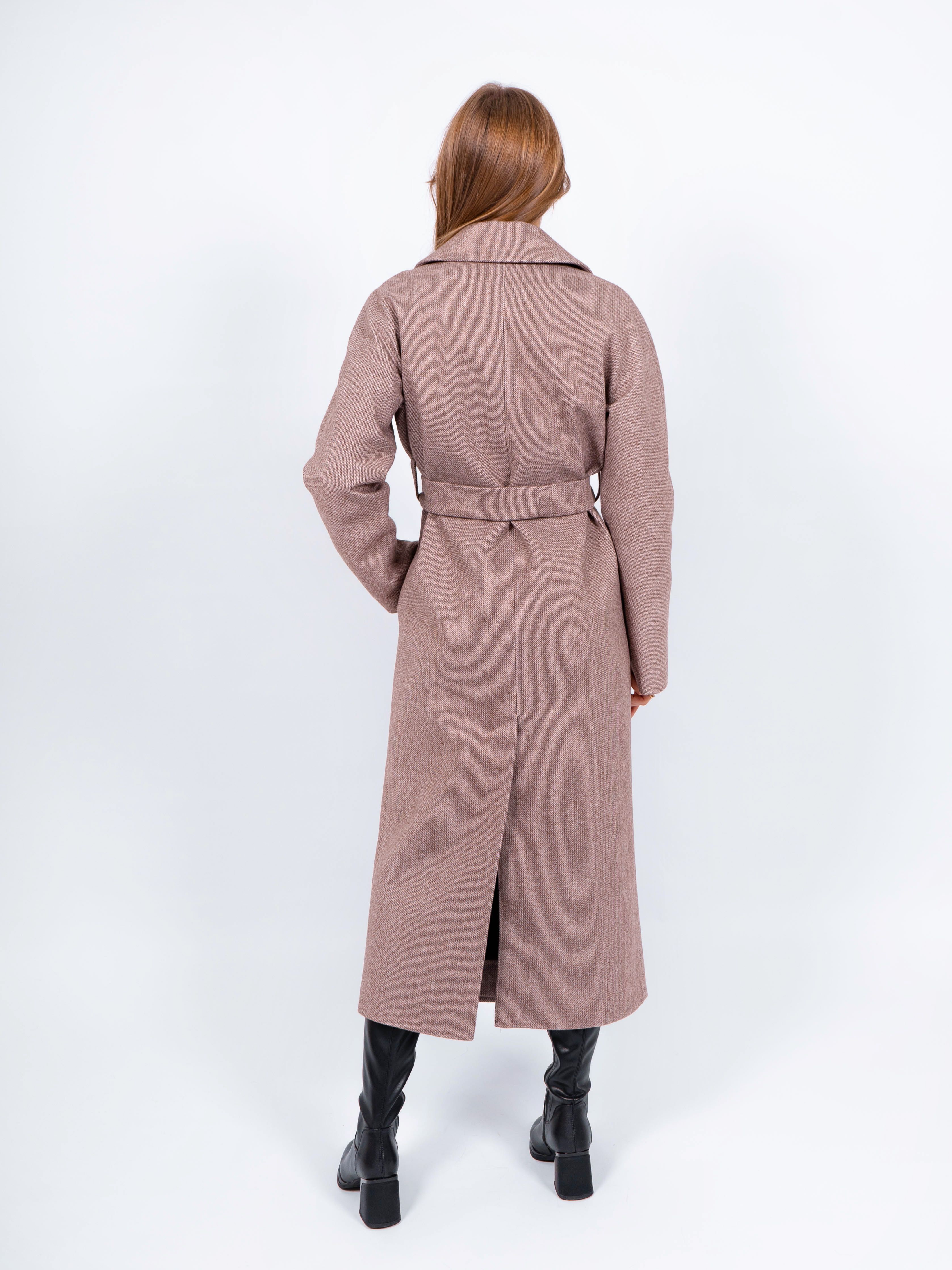 Пальто на запах, прямого силуэта, потайная застежка - пуговицы, имеется широкий пояс. Длина пальто 125 см, размерный ряд с 42 по 48 российский размер, подходит на рост 165-175 см. У пальто имеются два удобных накладных кармана, английский воротник.