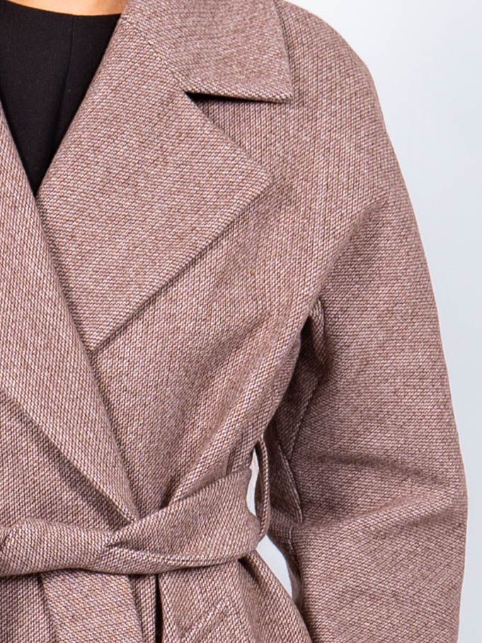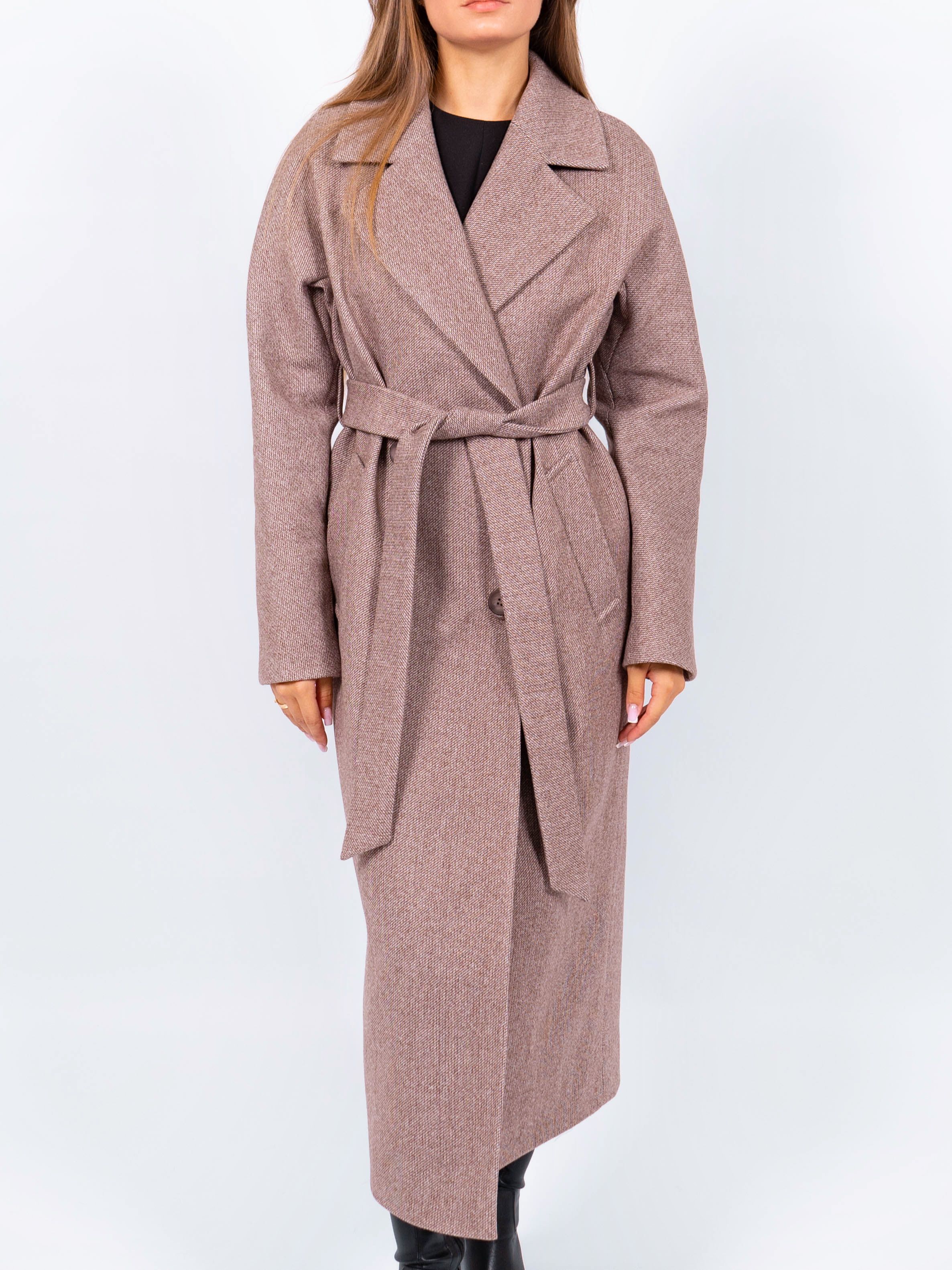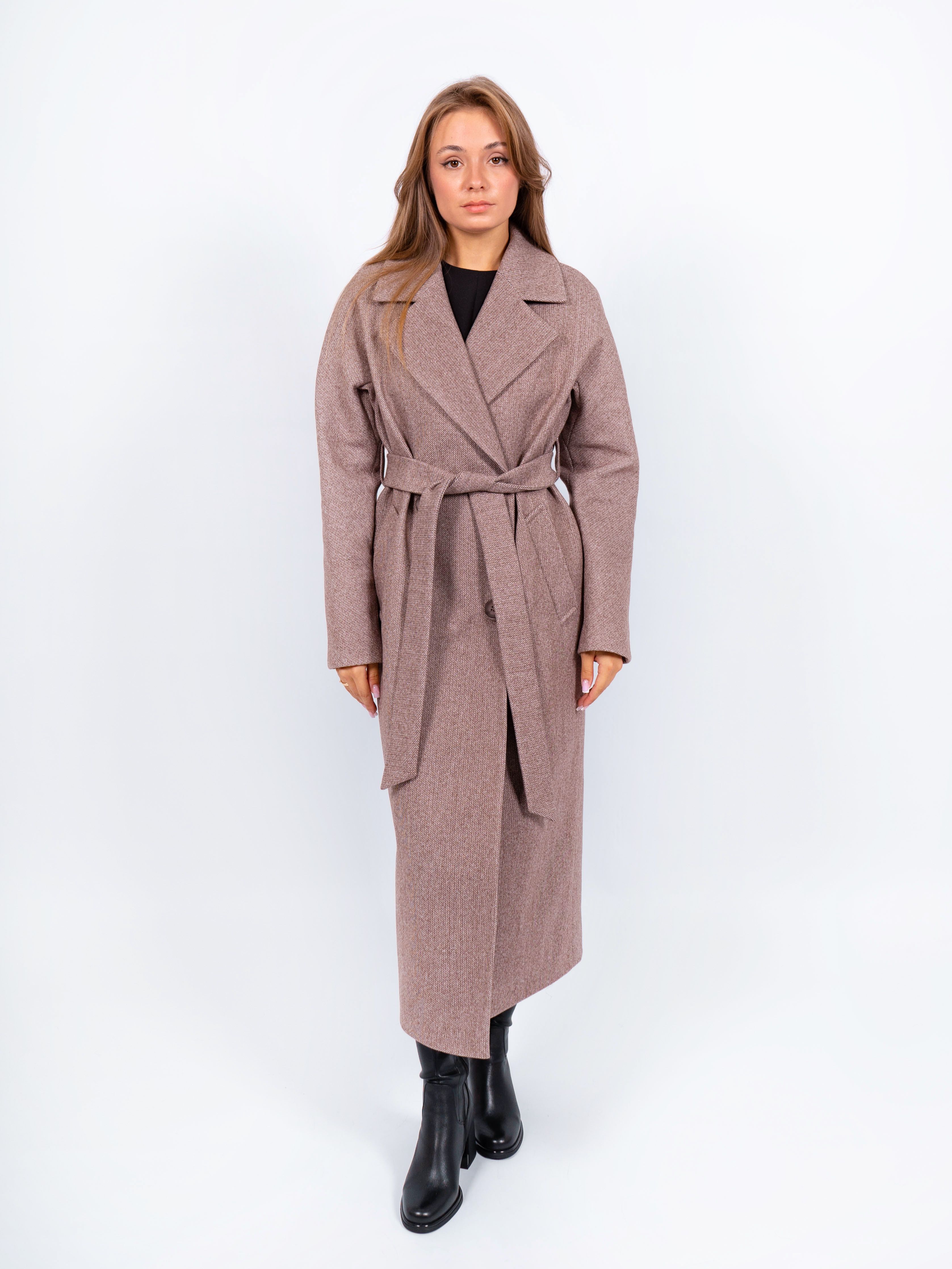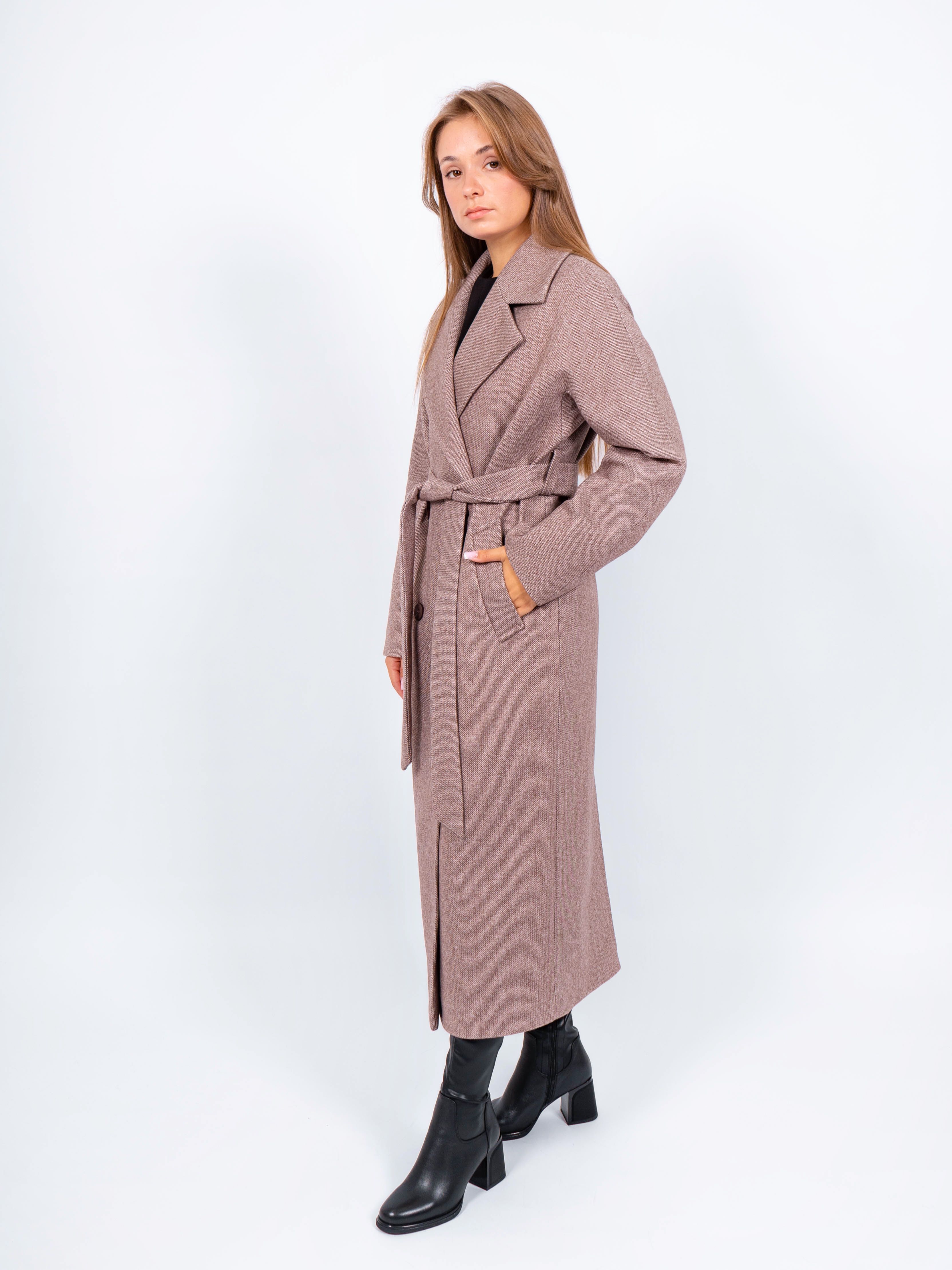 Пальто на запах, прямого силуэта, потайная застежка - пуговицы, имеется широкий пояс. Длина пальто 125 см, размерный ряд с 42 по 48 российский размер, подходит на рост 165-175 см. У пальто имеются два удобных накладных кармана, английский воротник.