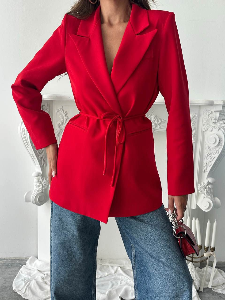 Жакет выполнен из качественного материала, который не только выглядит привлекательно, но и долговечен. Он прекрасно сочетается с различными цветами одежды и создает элегантный образ в любое время года. Комбинировать пиджак можно с юбкой, брюками, джинсами.