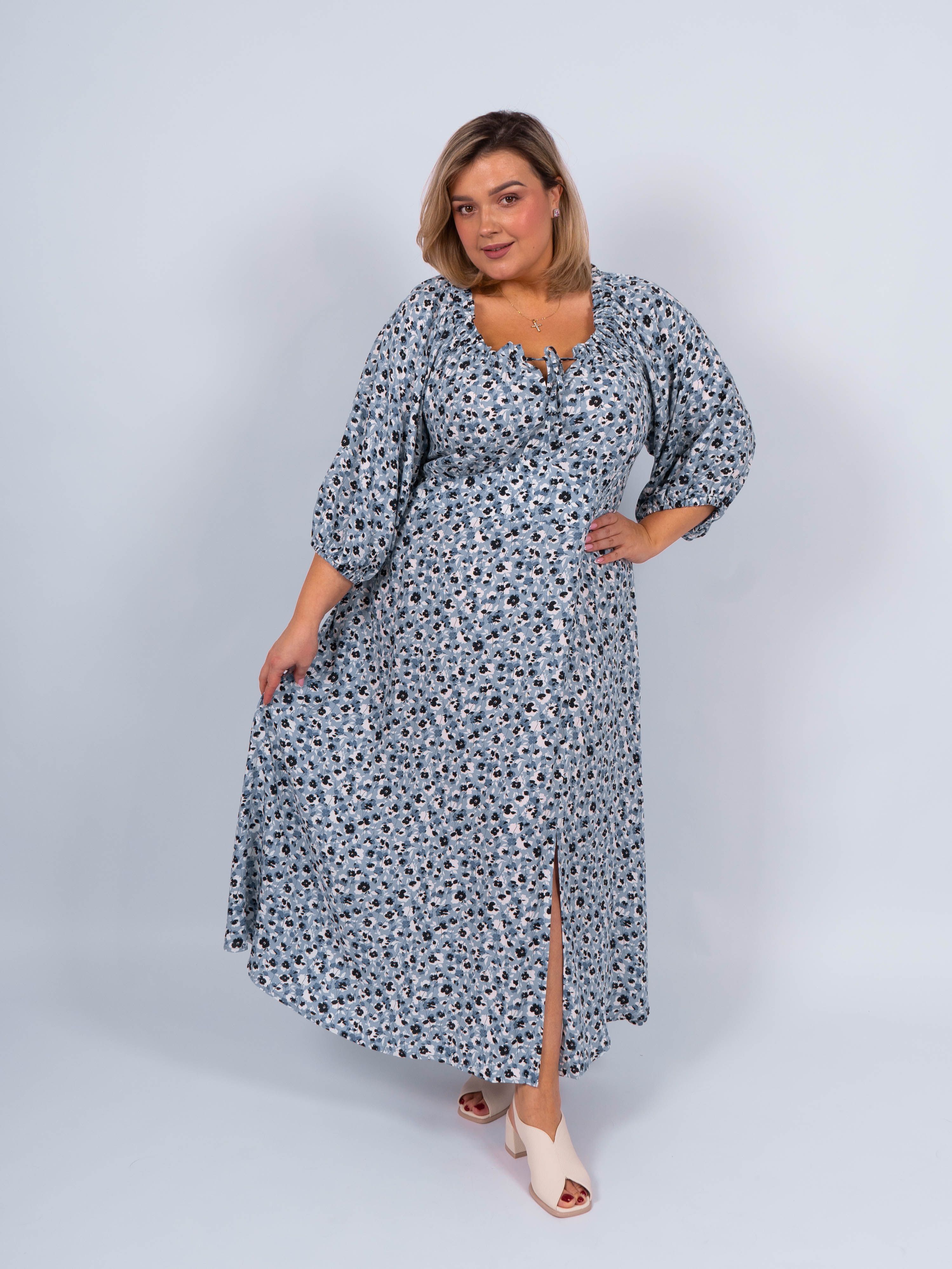 Платье-крестьянка женское с рукавом 3/4 – универсальная основа любого гардероба. Удобно как повседневное офисное платье, так и как модное платье на выход, на праздник. Удобный крой и комфортная длина не стесняет движения и подходит для любого роста и фигуры. Платье для женщин и девушек длинное красиво подчеркивает силуэт и прекрасно сочетается с туфлями на каблуке или плоской подошве, кедами, сабо, и босоножками. Элегантное удлиненное платье с поясом подойдет для любого времени года, как летнее, осеннее или весеннее. В нем будет комфортно знойным днем и летним прохладным вечером. Удобно носить под верхнюю одежду или пиджак. Платье при ходьбе красиво подчеркивает линию ног. Аккуратные швы, абсолютно не имеет запаха, легкая ткань не скатывается и не требует сложного ухода. Стильное платье идеально подходит для мероприятий, прогулок, на отдых, море или на работу. Благодаря широкому размерному ряду платье больших размеров хорошо смотрится на полных, а на стройных выглядит, как оверсайз, платье подойдет на большую грудь. Современная модель платья прекрасно подходит для высоких и невысоких, для беременных. Станет отличным подарком на день рождения, как новогодний сюрприз, любимой женщине, дочке, сестре, маме. В таком модном платье Вы будете выглядеть великолепно и не останетесь незамеченной!