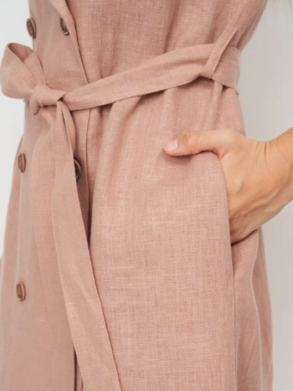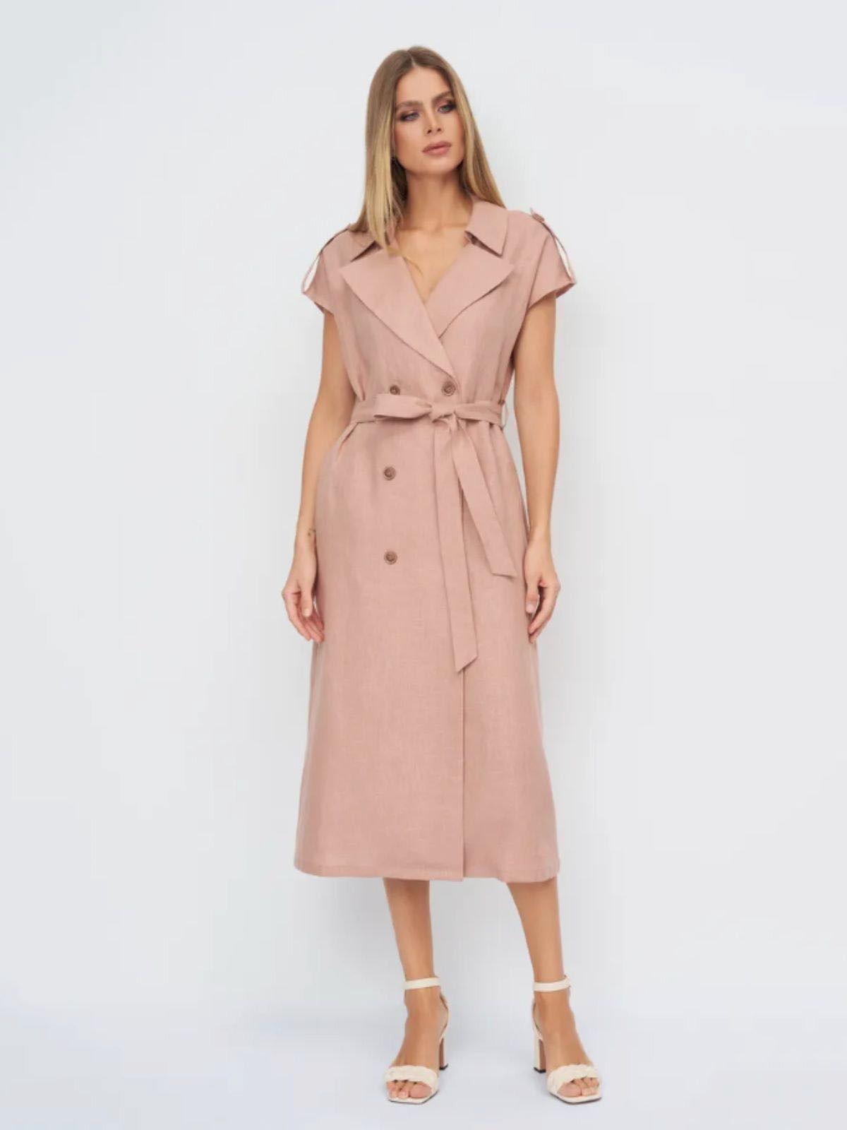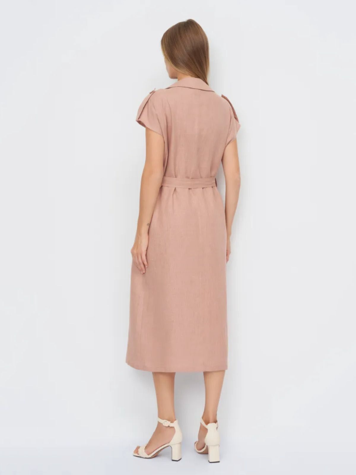 Платье выполнено из белорусского льна, что обеспечивает комфорт и свежесть в летние дни. Материал приятный на ощупь, легкий и хорошо пропускает воздух, что позволяет коже дышать и не перегреваться даже в самые жаркие дни. Женственное, легкое платье на каждый день в сочетании с аксессуарами позволяет создавать комплекты на лето, для работы, для офиса, прогулок, праздников и для отдыха на море, для пляжа.