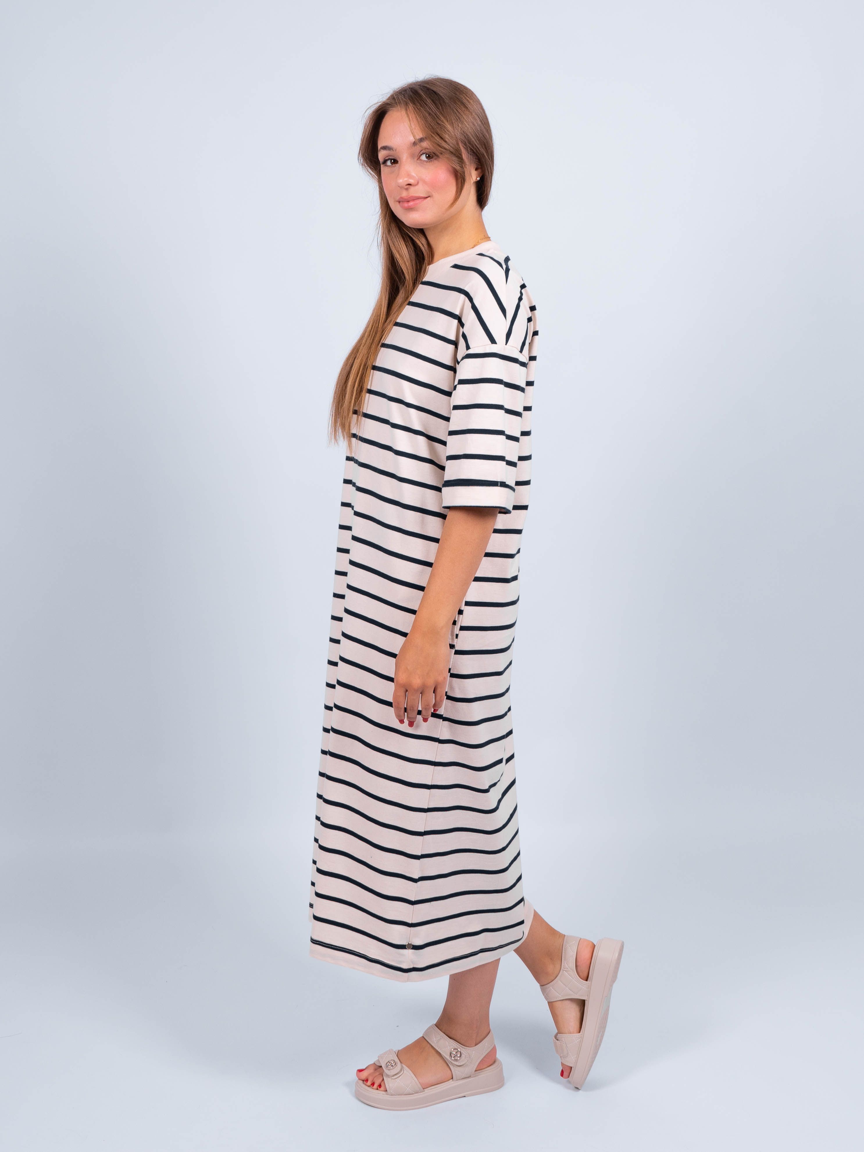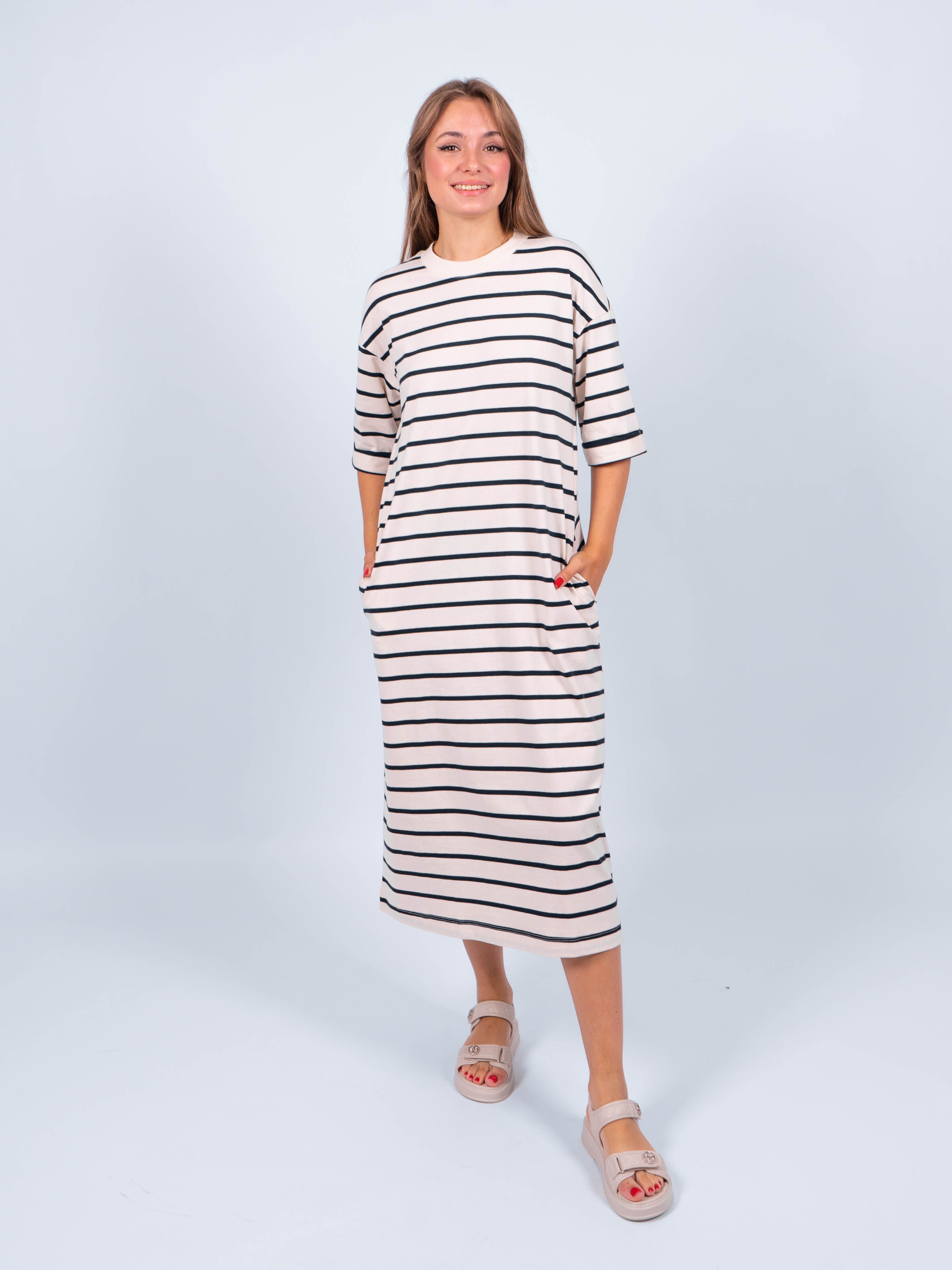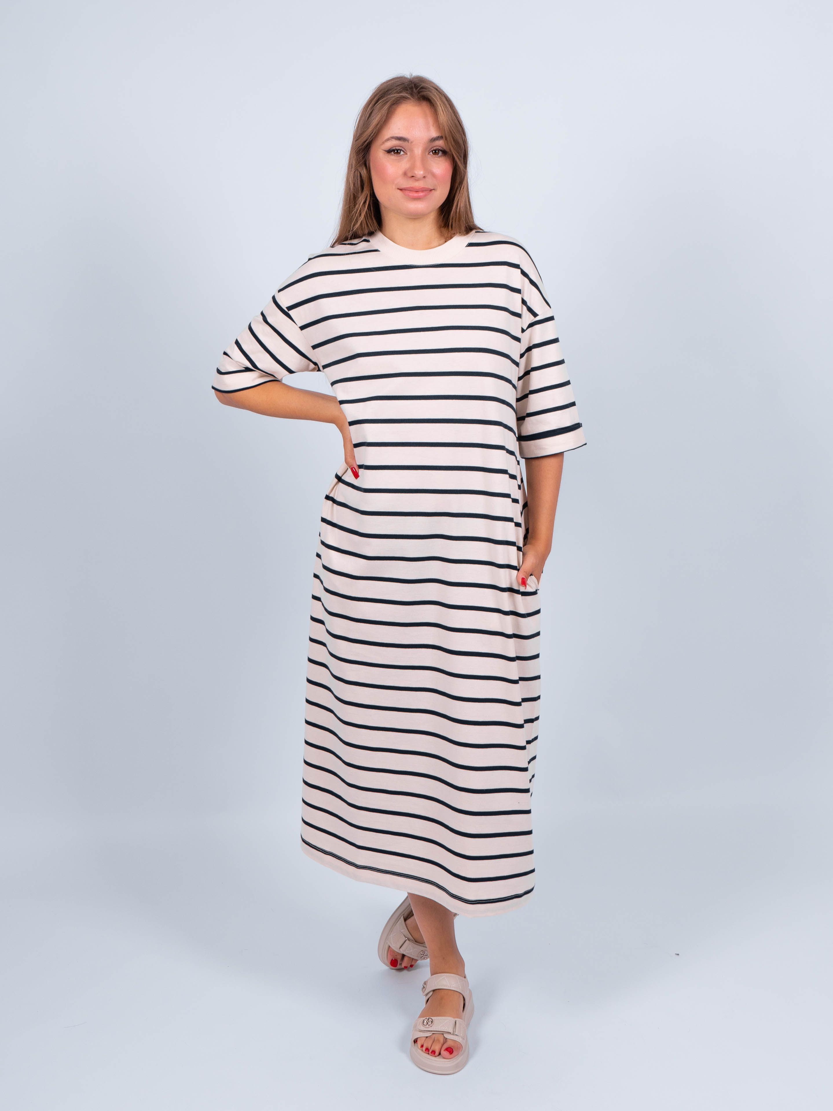 Представляем Вашему вниманию длинное платье в полоску из 100% хлопка от obuv365, которое станет незаменимой частью летнего гардероба. Удобное и стильное, идеально подойдет для создания модных образов в жаркое время года. Нужный размер найдется для женщин с формами плюс - сайз. К тому же платье будет красиво смотреться как на высоких, так и невысоких леди.