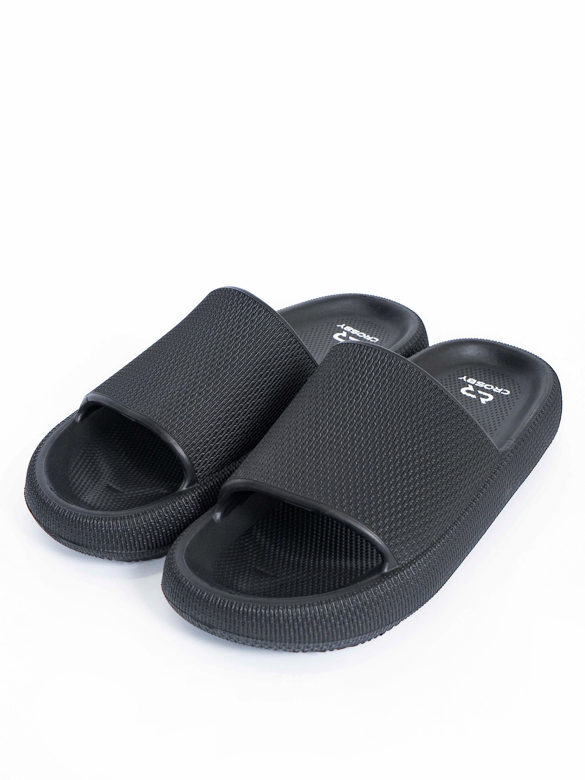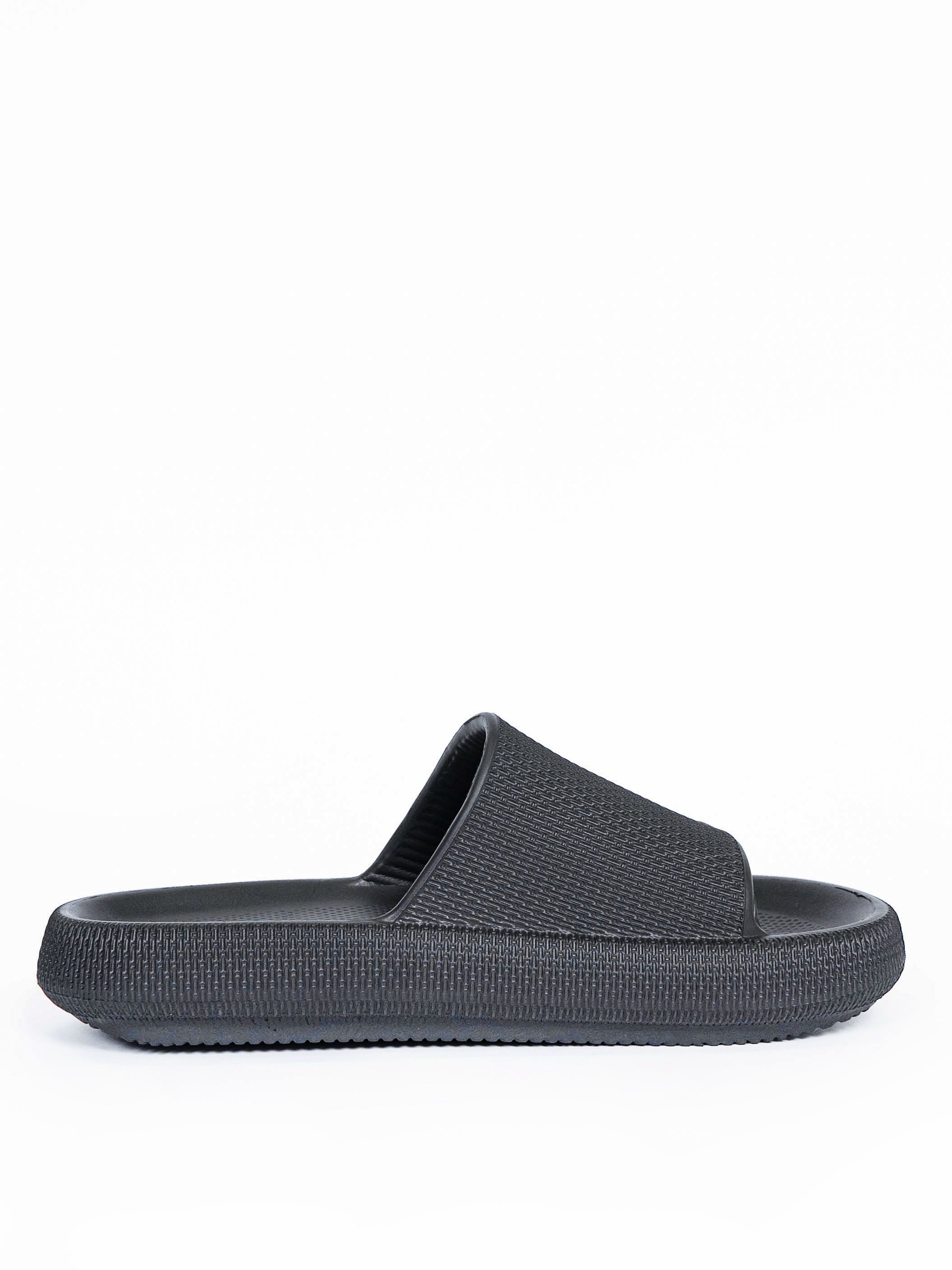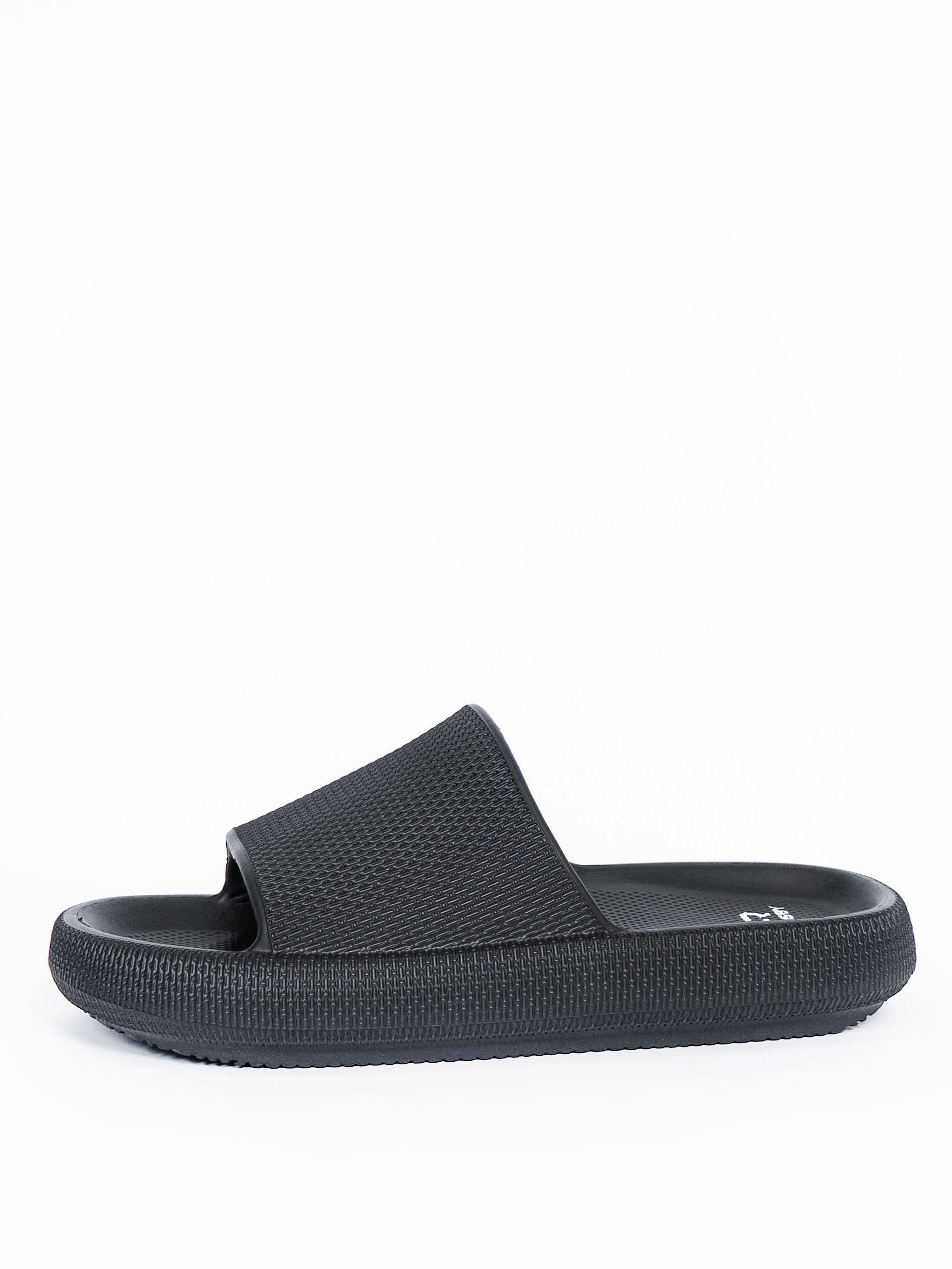 Шлепанцы мужские черного цвета на плоской подошве разработаны с учетом анатомических особенностей стопы и гарантируют комфорт даже при длительной носке, отсутствие подкладки позволяет ноге дышать.