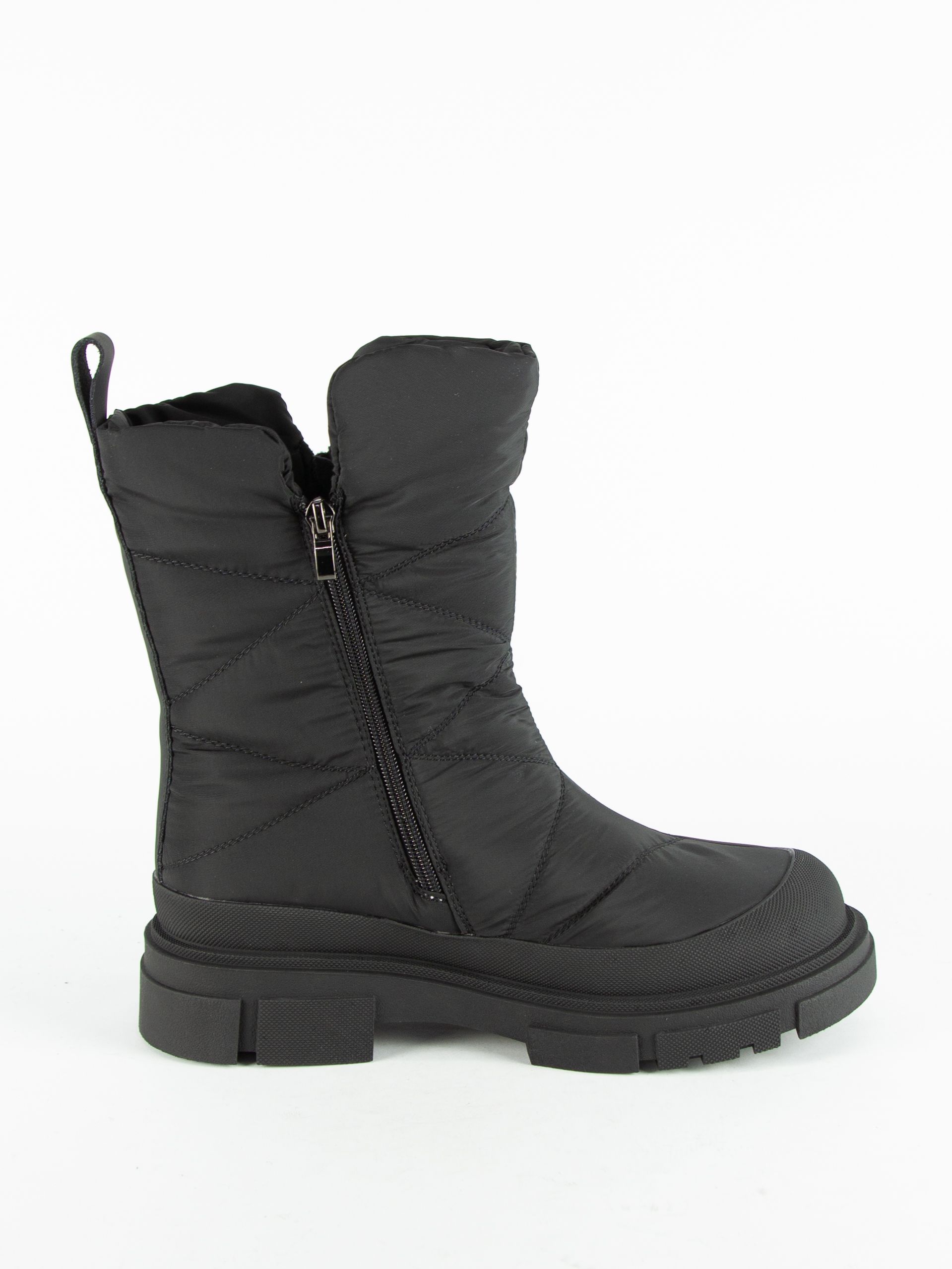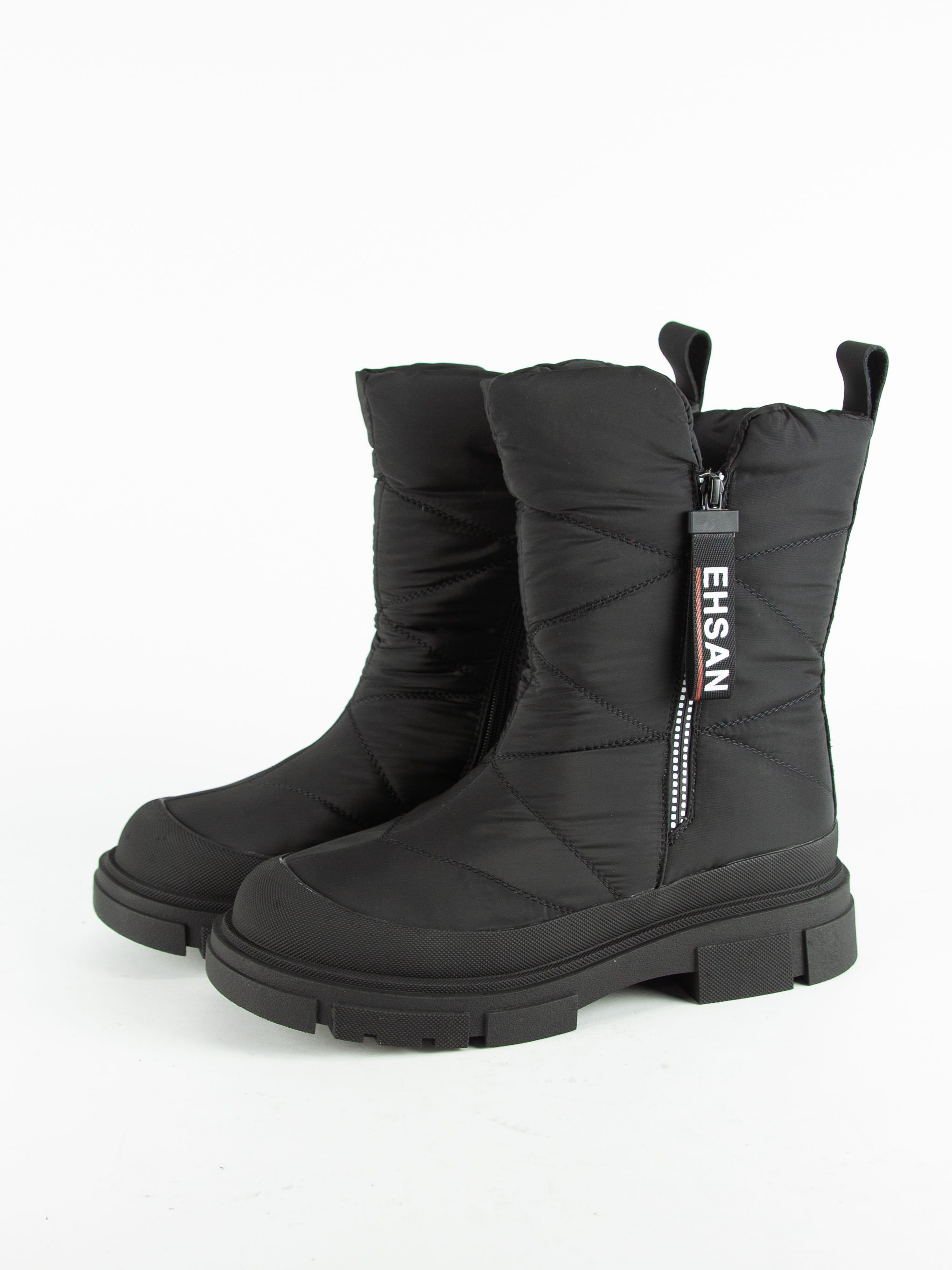Дутики женские бренда Torsion Field. Верх изготовлен из текстильного материала и натуральной кожи черного цвета. Материал подкладки натуральная шерсть. Идеально подойдут на зиму и станут отличным завершением к Вашему гардеробу.