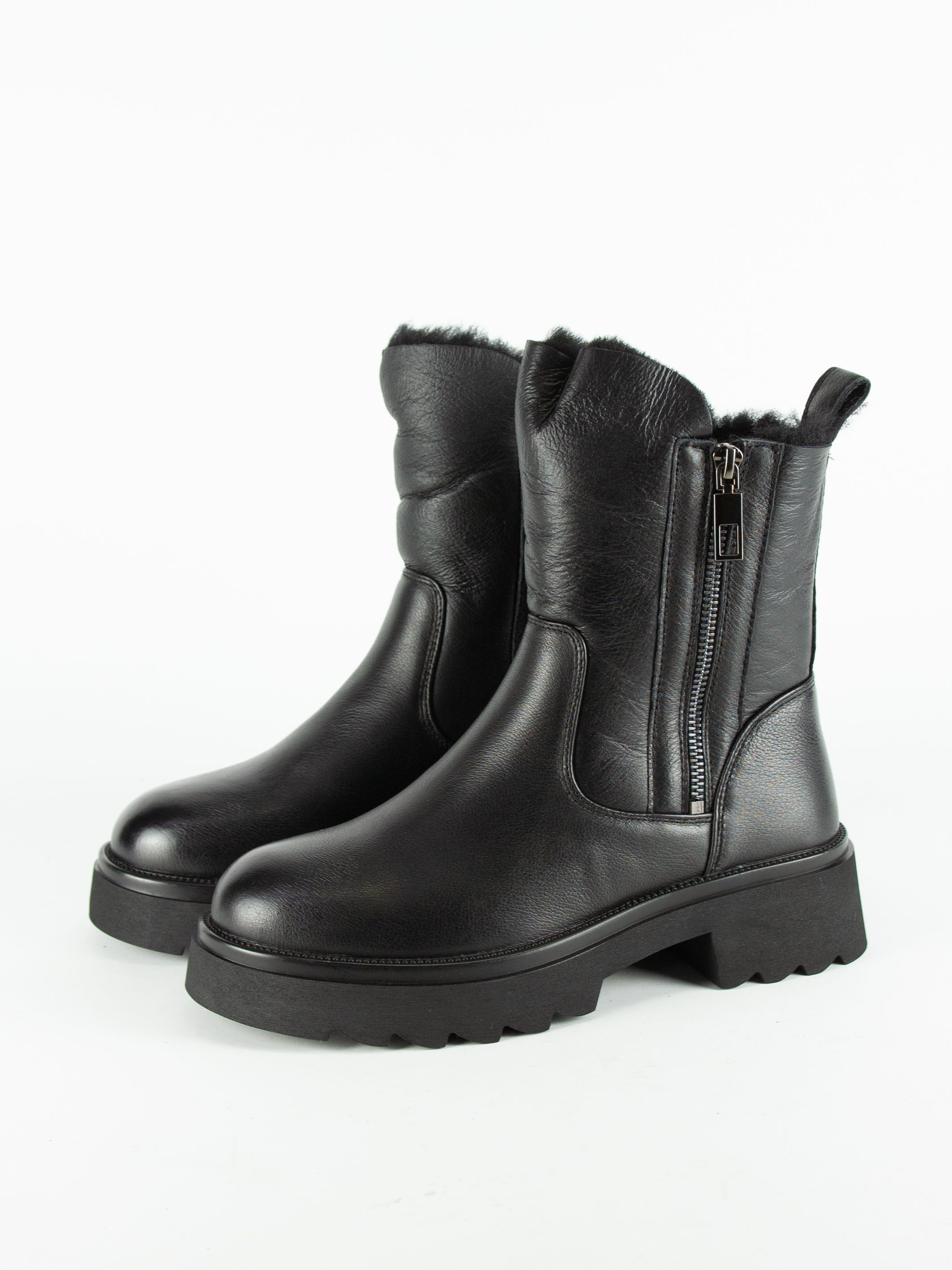 Полусапоги женские бренда ТОФА. Верх изготовлен из натуральной кожи черного цвета. Материал подкладки натуральная шерсть. Идеально подойдут на зиму и станут отличным завершением к Вашему гардеробу.