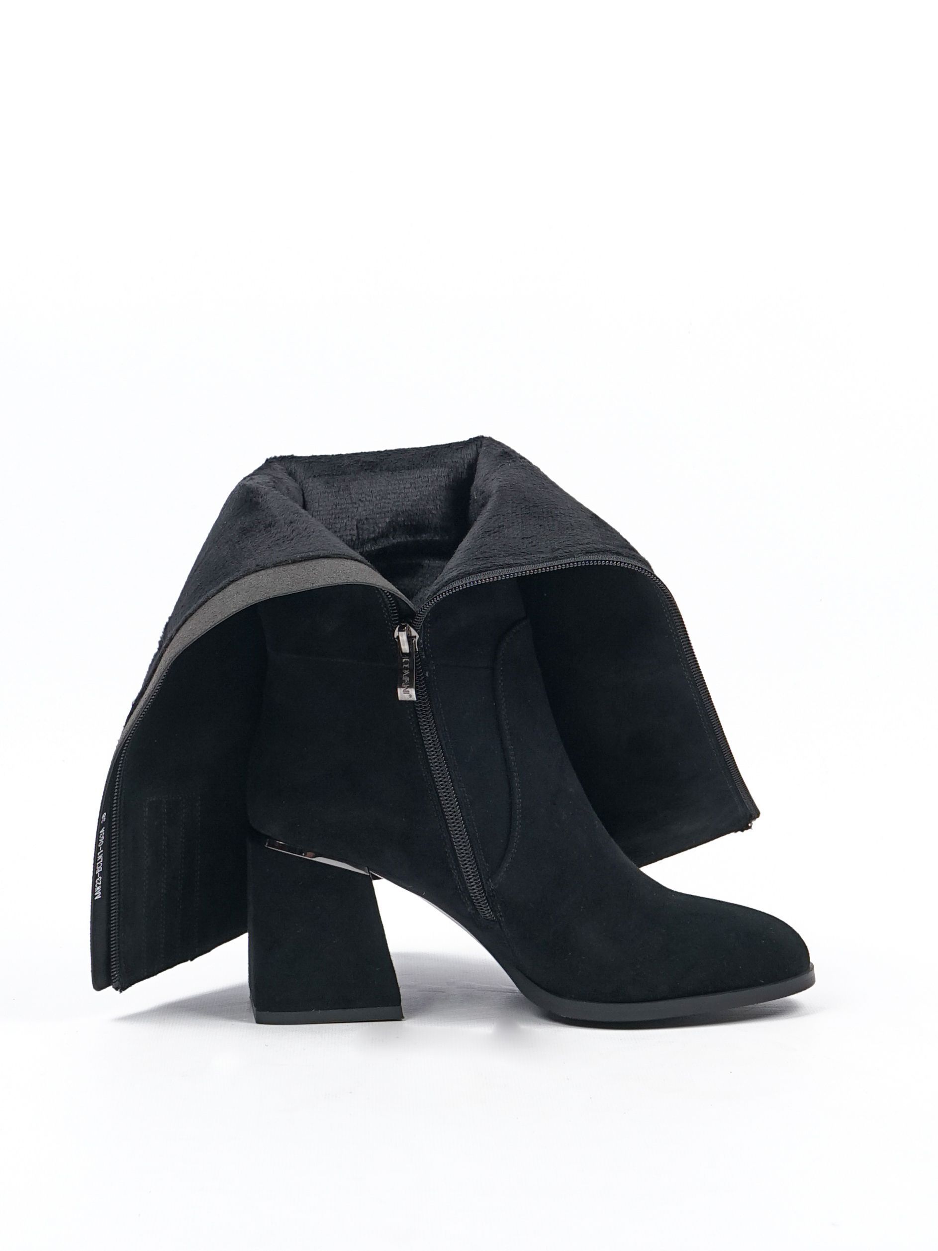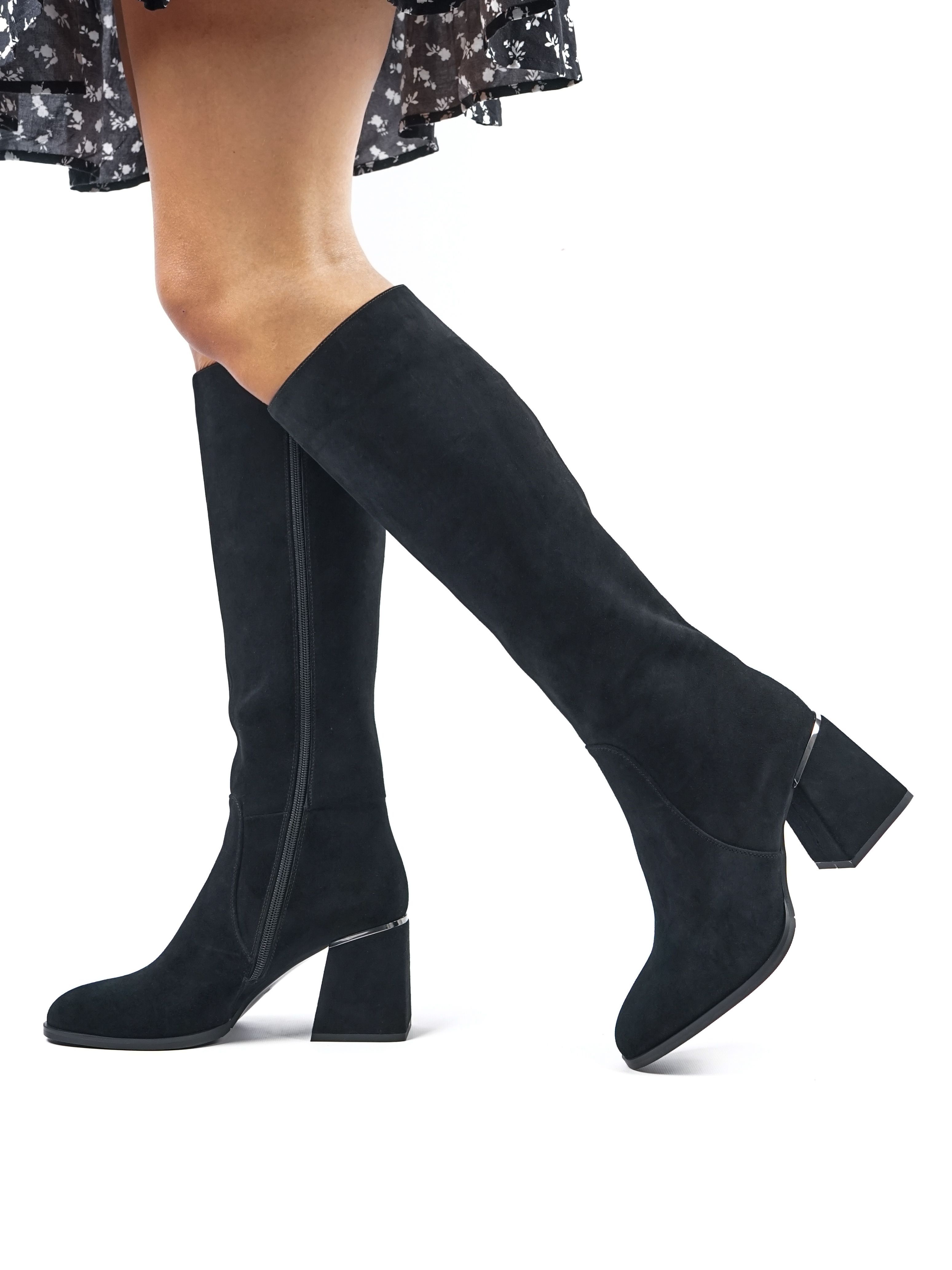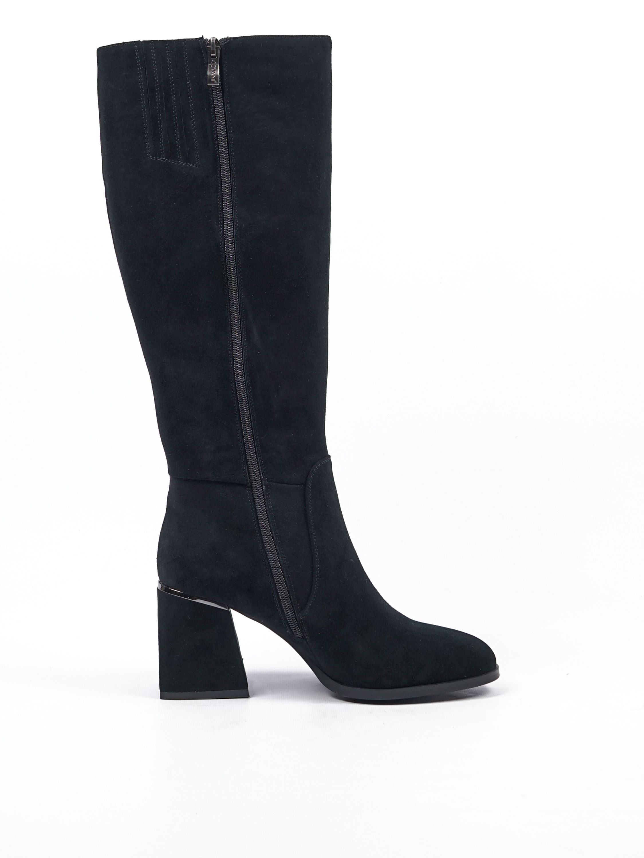Женские сапоги из натуральной замши от Covani — это идеальное сочетание элегантности и комфорта. Внутри тёплая подкладка из байки, которая защитит ваши ноги от холода. Универсальный чёрный цвет делает эти сапоги подходящими к любому образу.
