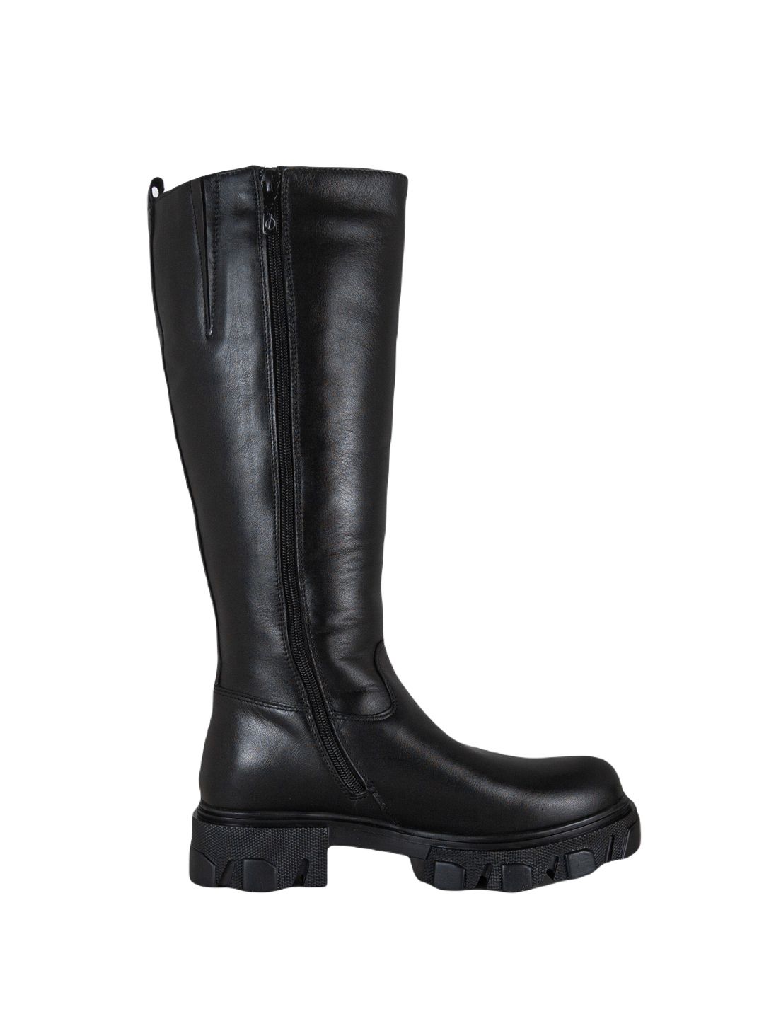 Сапоги женские российского бренда Francesco Donni. Верх изготовлен из натуральной кожи черного цвета. Материал подкладки натуральная шерсть. Идеально подойдут на зиму и станут отличным завершением к Вашему гардеробу.
