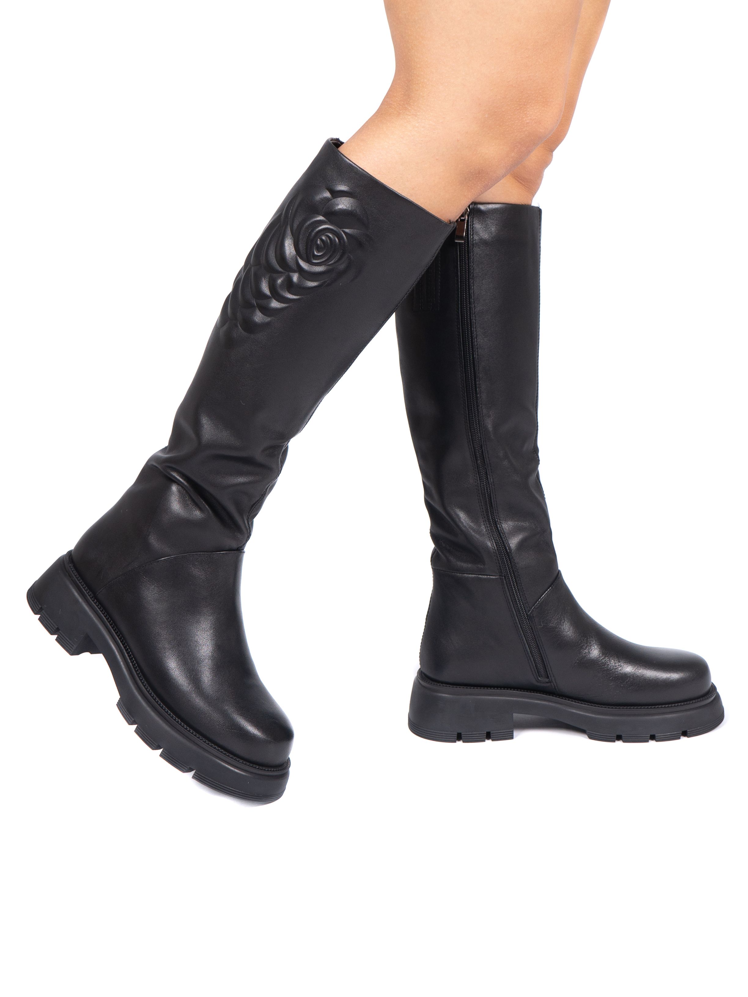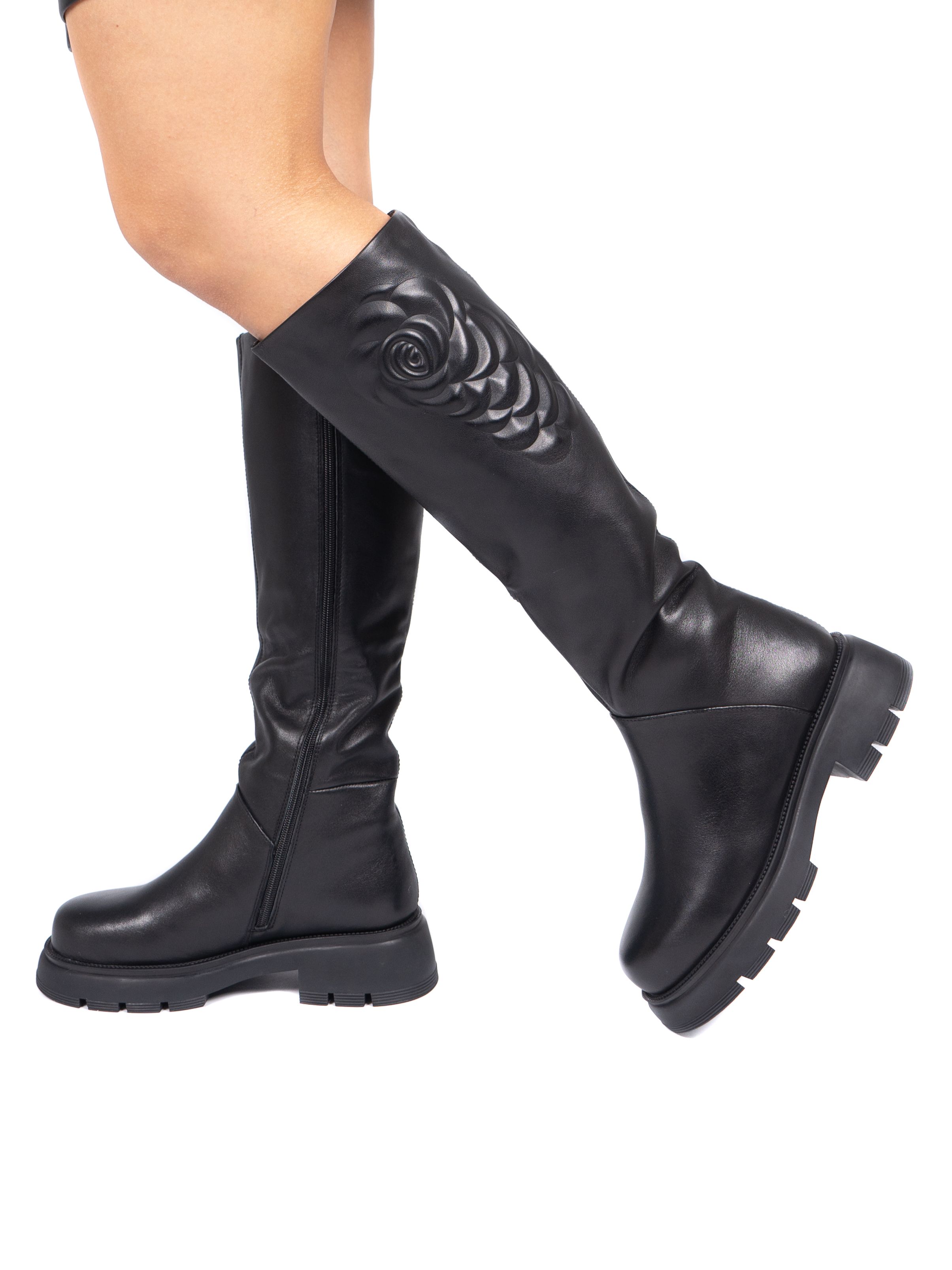 Сапоги женские бренда 365. Верх изготовлен из натуральной кожи черного цвета. Материал подкладки натуральная шерсть. Идеально подойдут на зиму и станут отличным завершением к Вашему гардеробу.