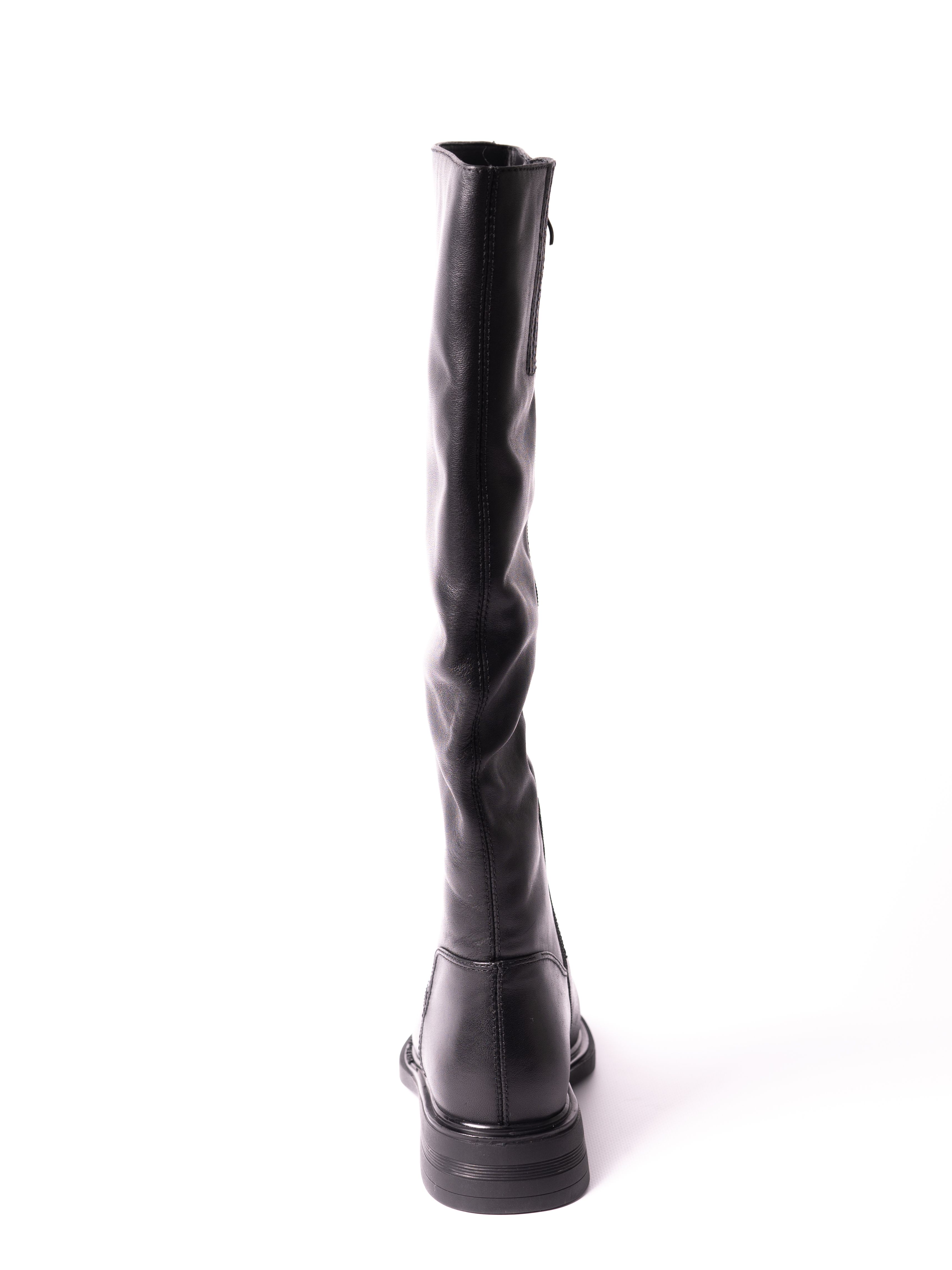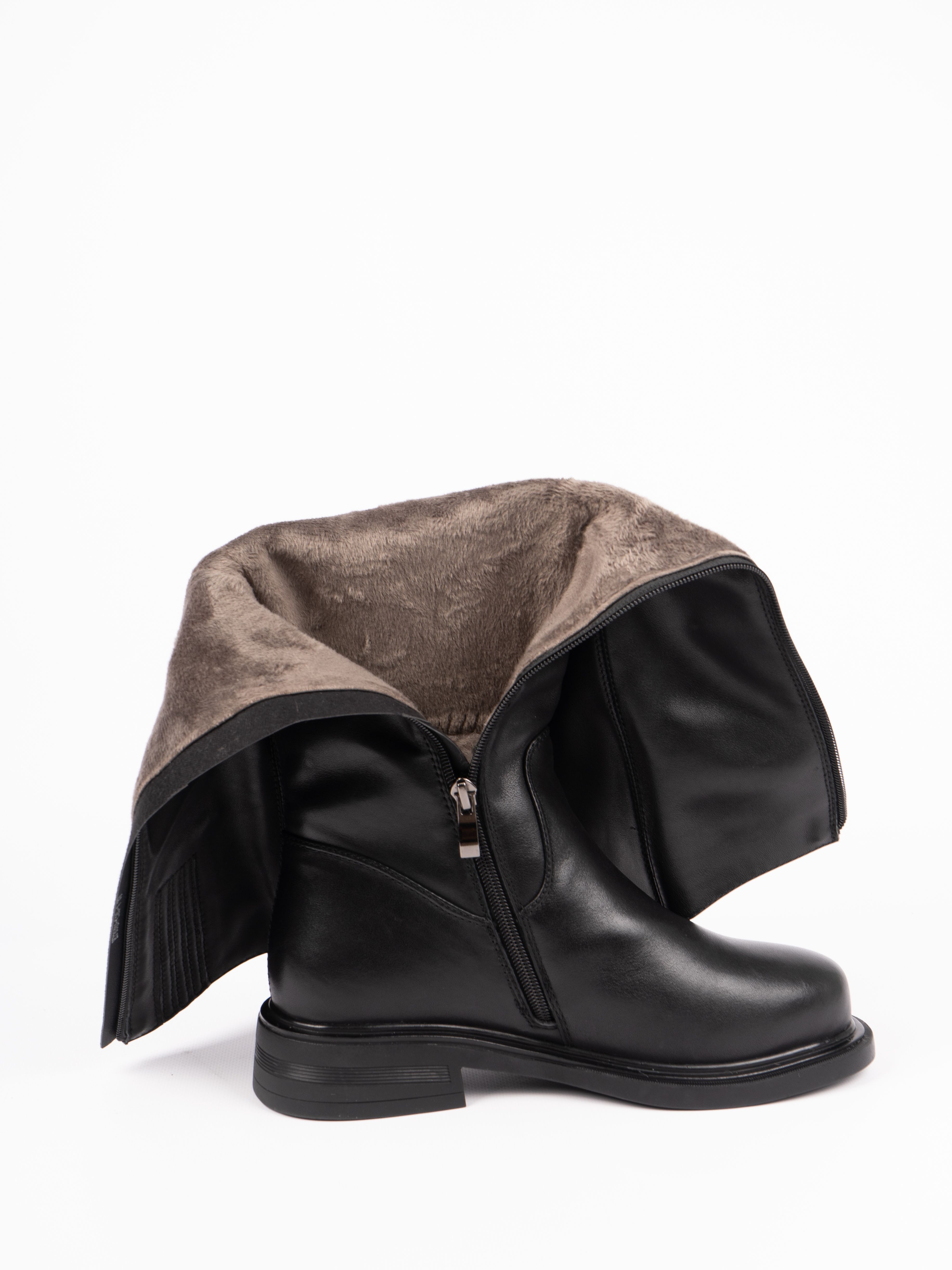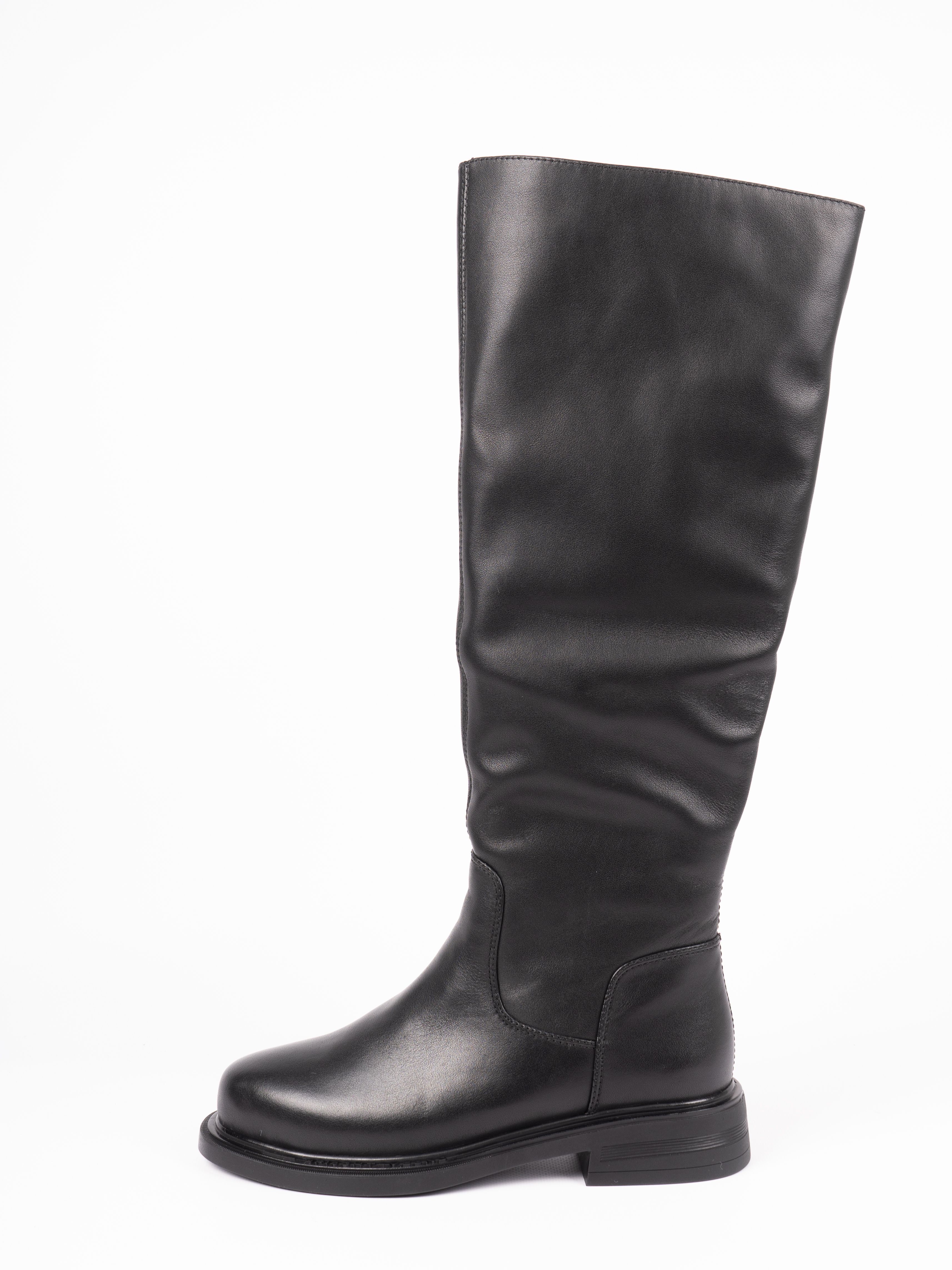 Женские сапоги выполнены из качественной натуральной кожи, которая обеспечивает их долговечность и износостойкость. Внутренняя подкладка из натуральной шерсти прекрасно сохраняет тепло, обеспечивая комфорт в холодное время года. Лаконичный черный цвет и универсальный дизайн позволяют с легкостью сочетать эти сапоги с любой одеждой, а удобная посадка делает их идеальным вариантом для повседневной носки.