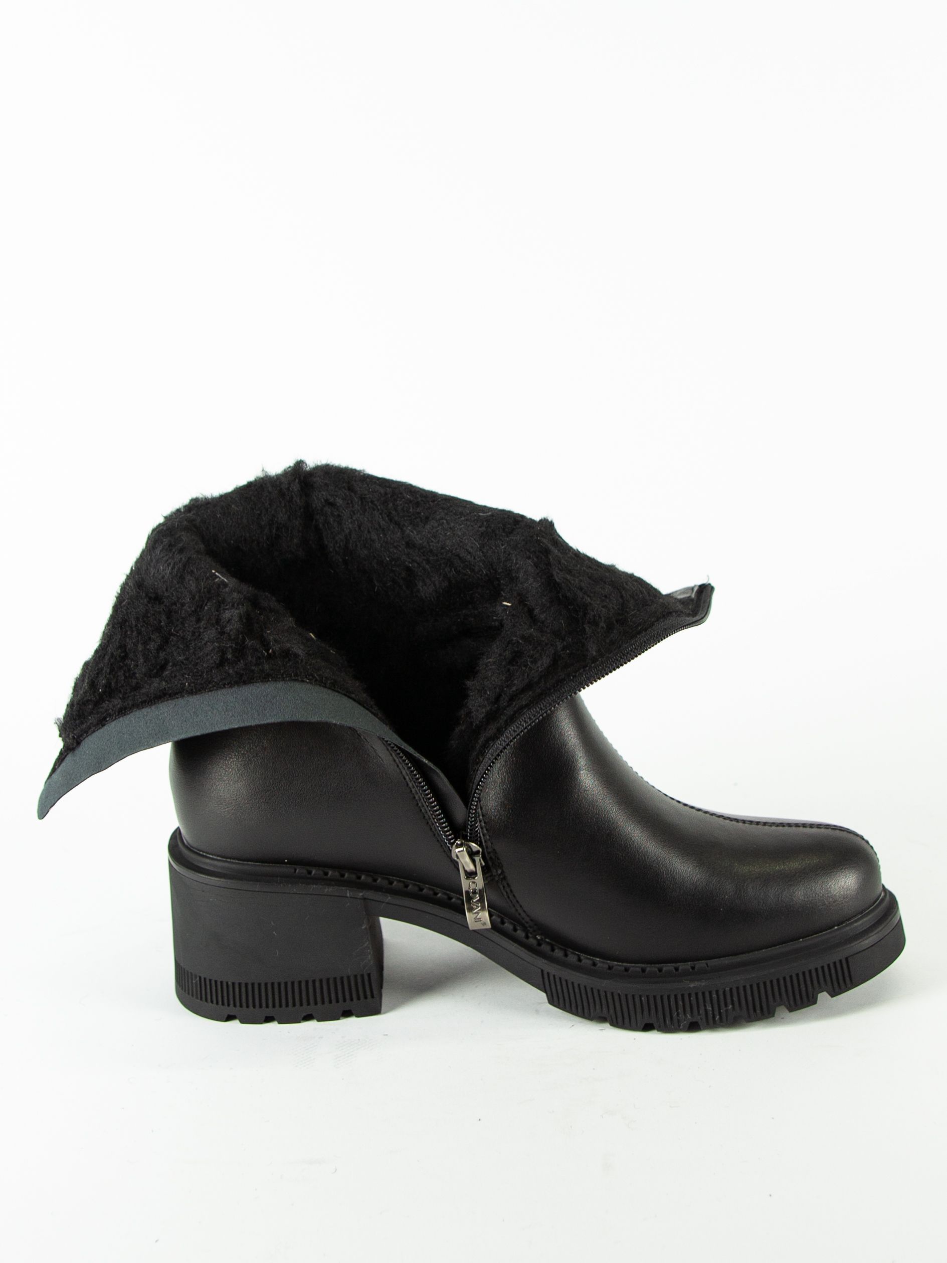 Полусапоги женские бренда Covani. Верх изготовлен из натуральной кожи черного цвета. Материал подкладки натуральная шерсть. Идеально подойдут на зиму и станут отличным завершением к Вашему гардеробу.