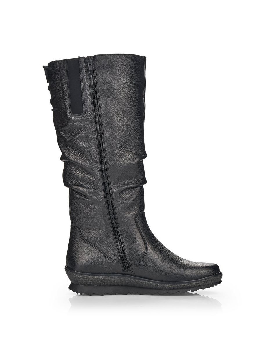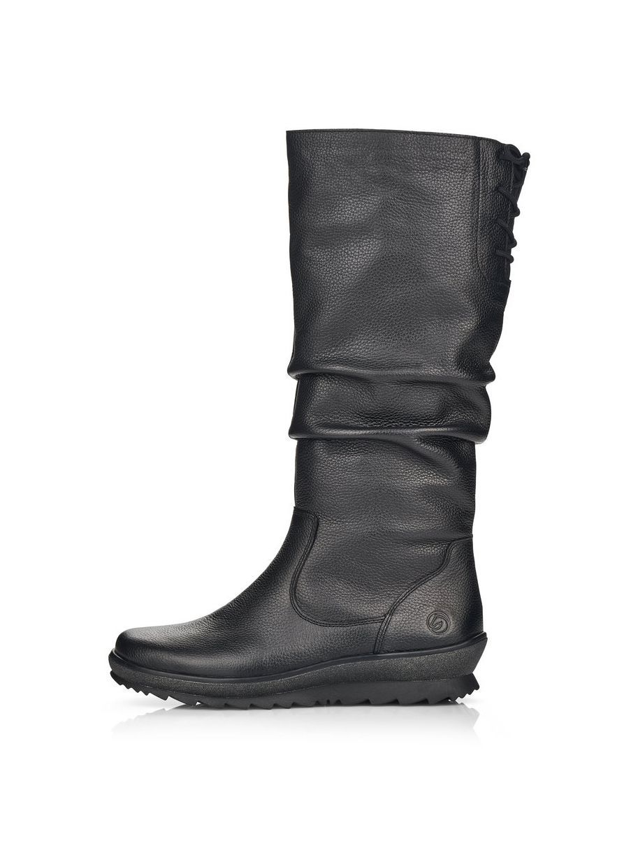 Рекомендуем рассмотреть черные женские сапоги от немецкого бренда Remonte, сочетающие в себе качество, комфорт, простой и современный дизайн.