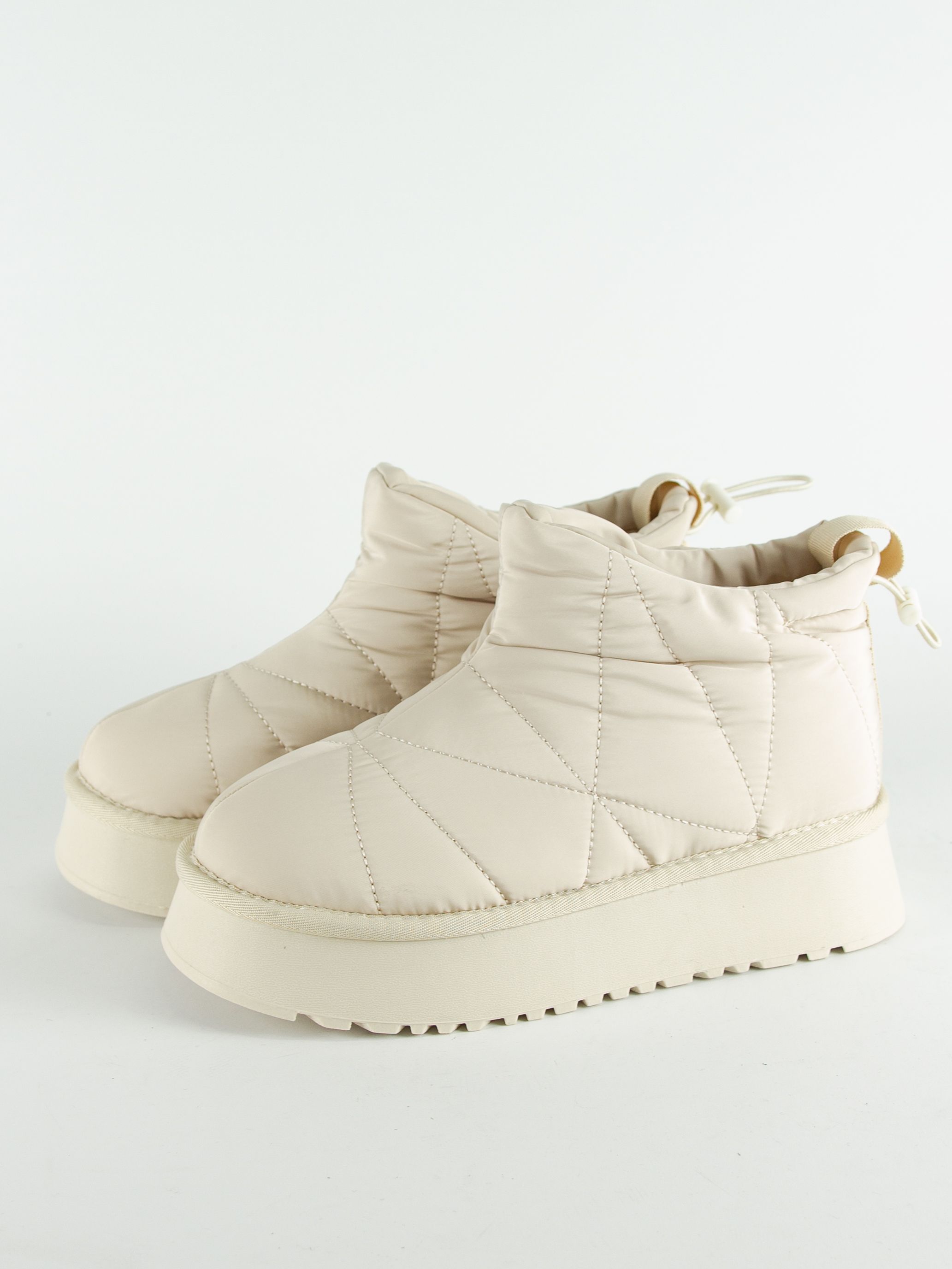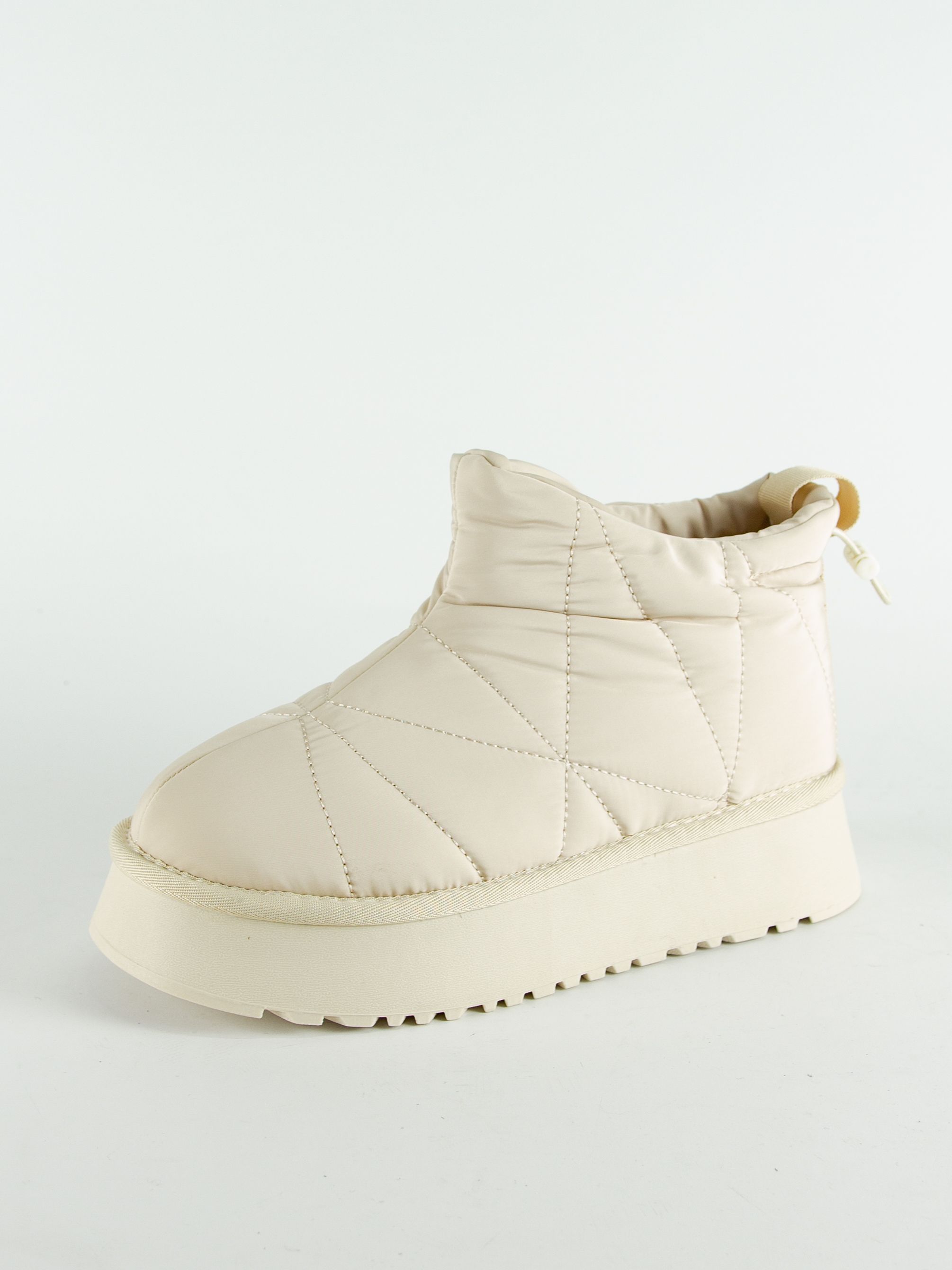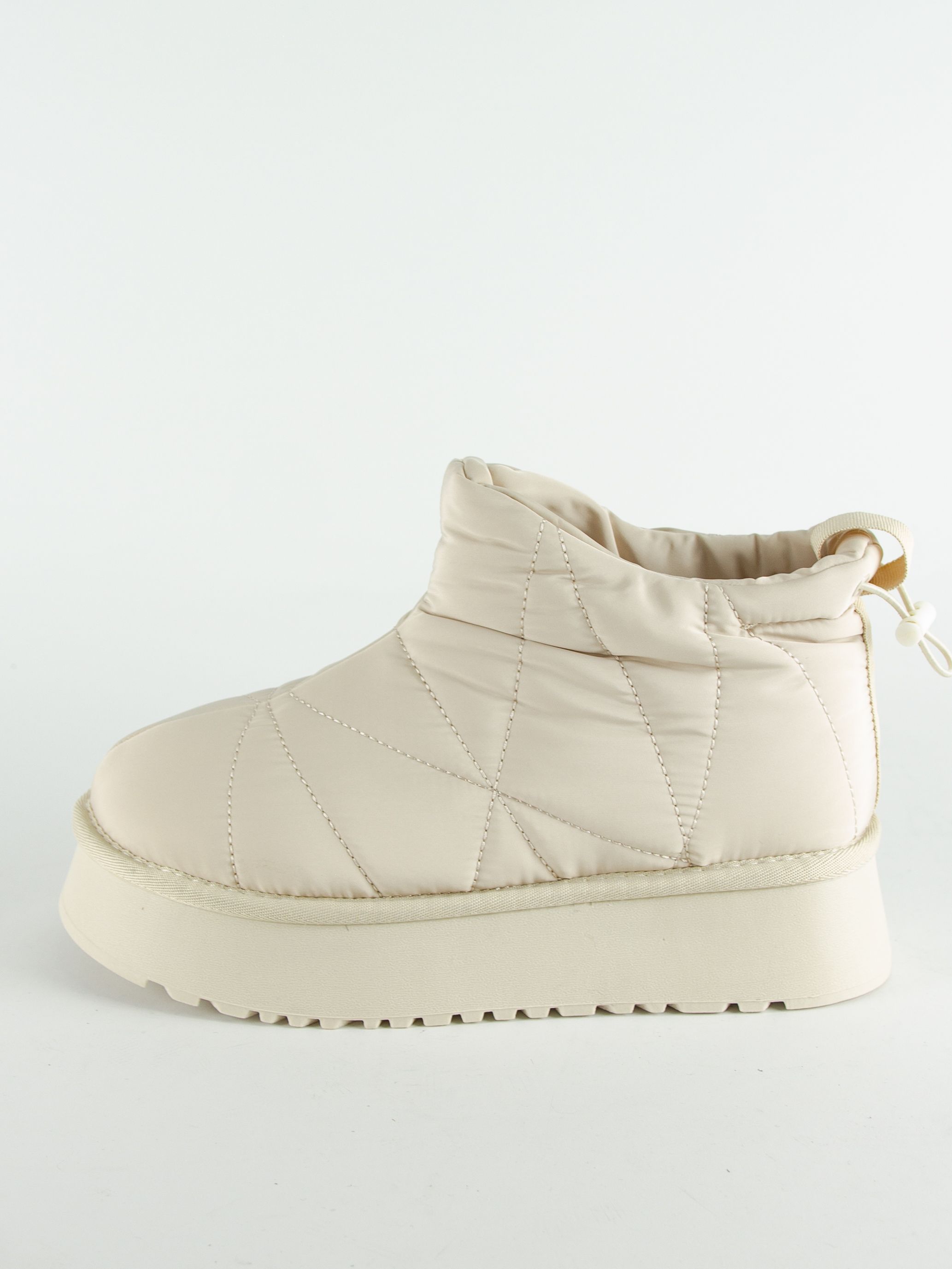 Дутики женские бренда MADELLA. Верх изготовлен из текстильного материала бежевого цвета. Материал подкладки натуральная шерсть. Идеально подойдут на зиму и станут отличным завершением к Вашему гардеробу.