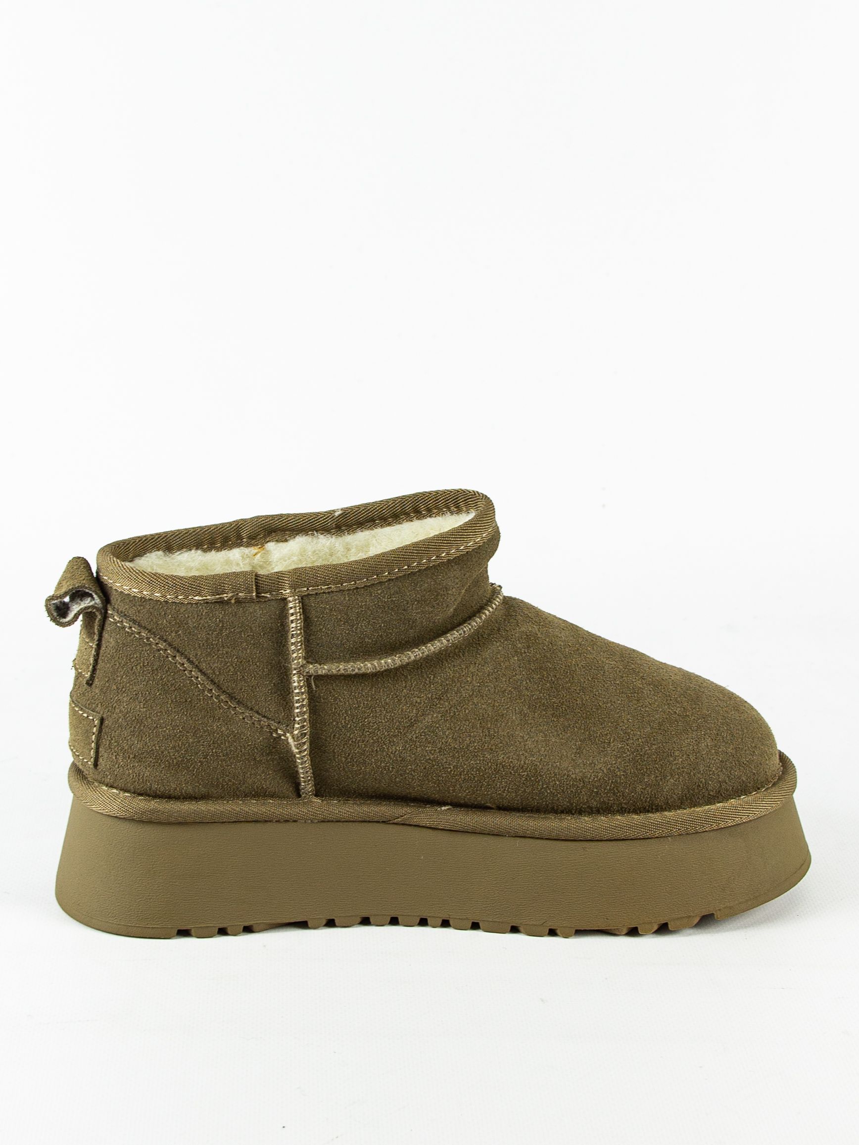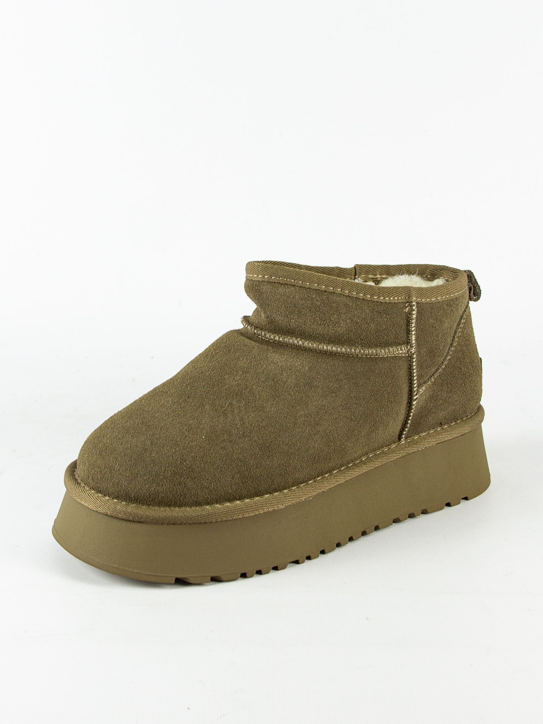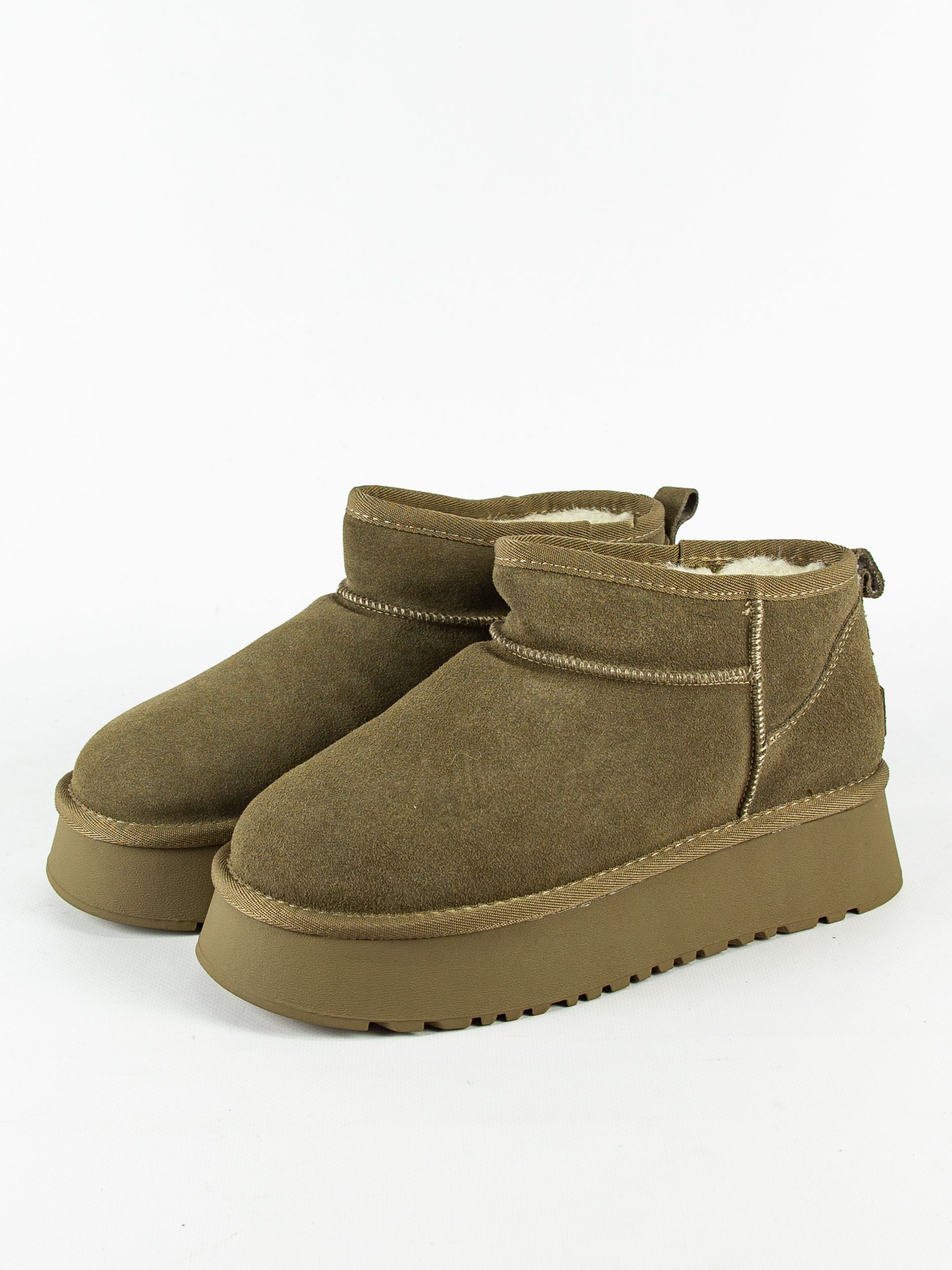 Комфортные и стильные угги от популярного бренда Madella, изготовленные из высококачественной натуральной замши цвета хаки. Подкладка и стелька сделаны из натуральной шерсти, обеспечивающей тепло и комфорт даже в самые холодные дни. Угги имеют удобную форму и низкий каблук. Лаконичный дизайн делает их подходящими для различных образов, а практичная застежка на молнию облегчает процесс обувания.