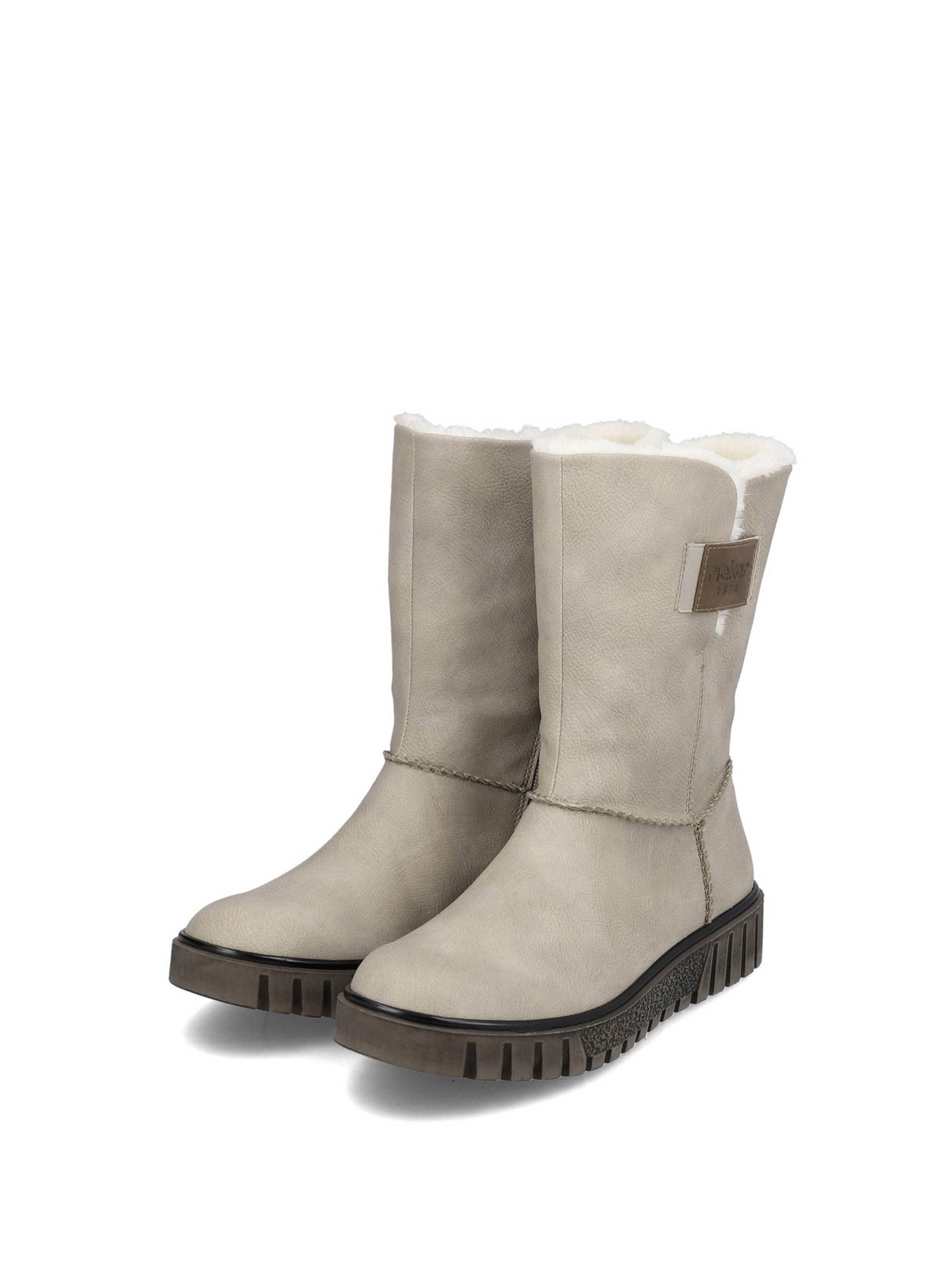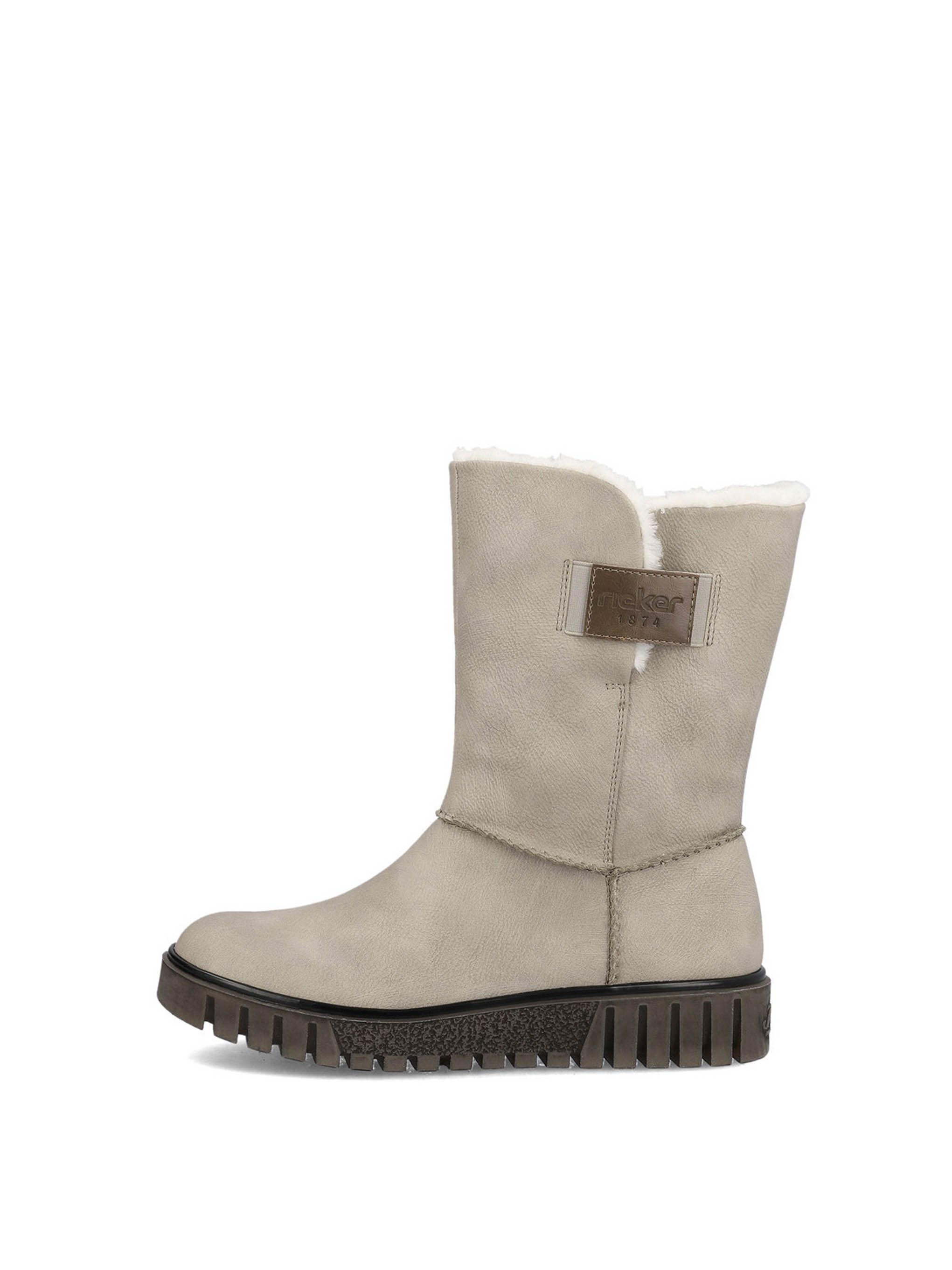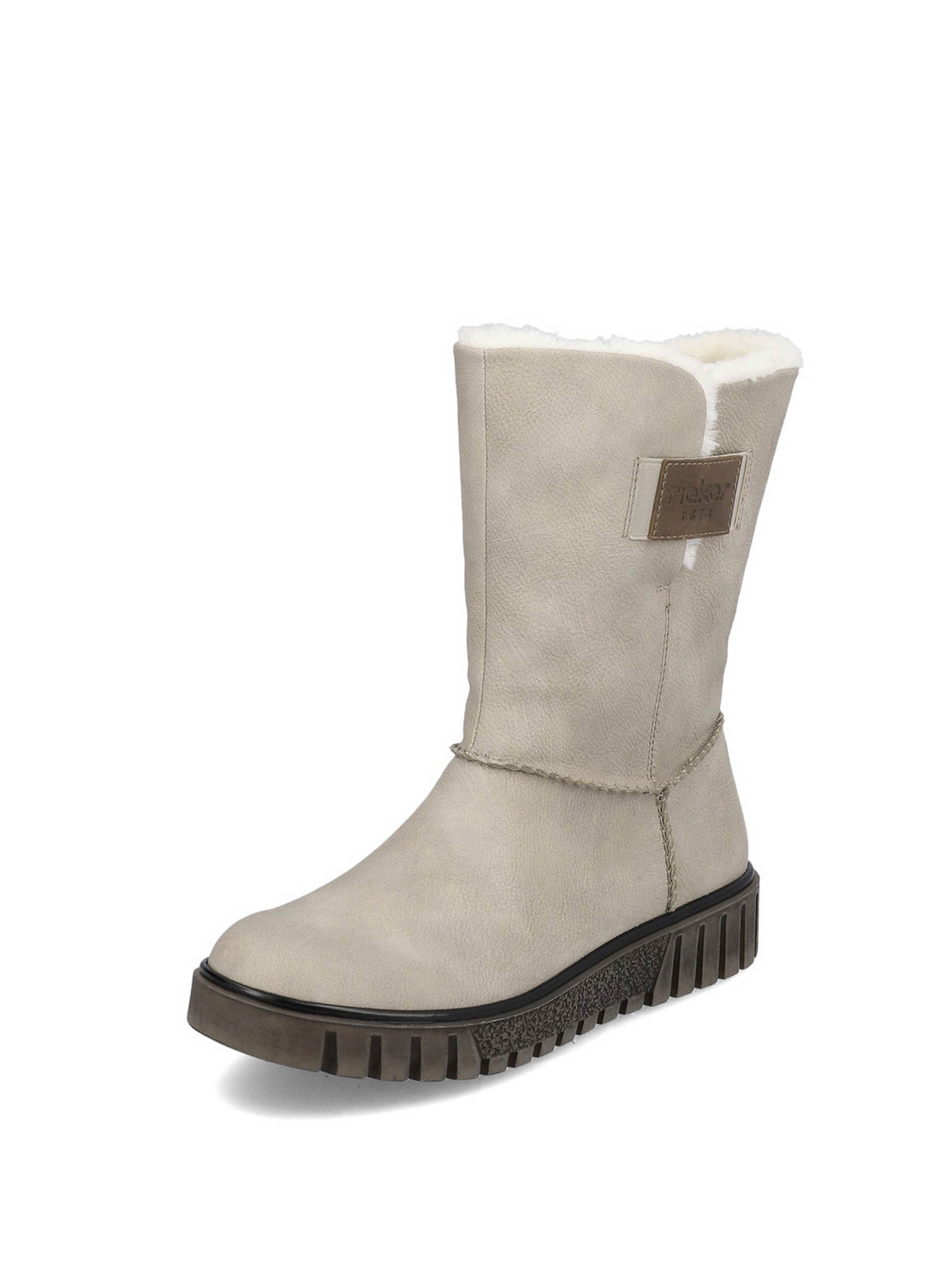 Полусапоги женские немецкого бренда Rieker. Верх изготовлен из искусственной кожи и текстильного материала бежевого цвета. Материал подкладки натуральная шерсть. Идеально подойдут на зиму и станут отличным завершением к Вашему гардеробу.