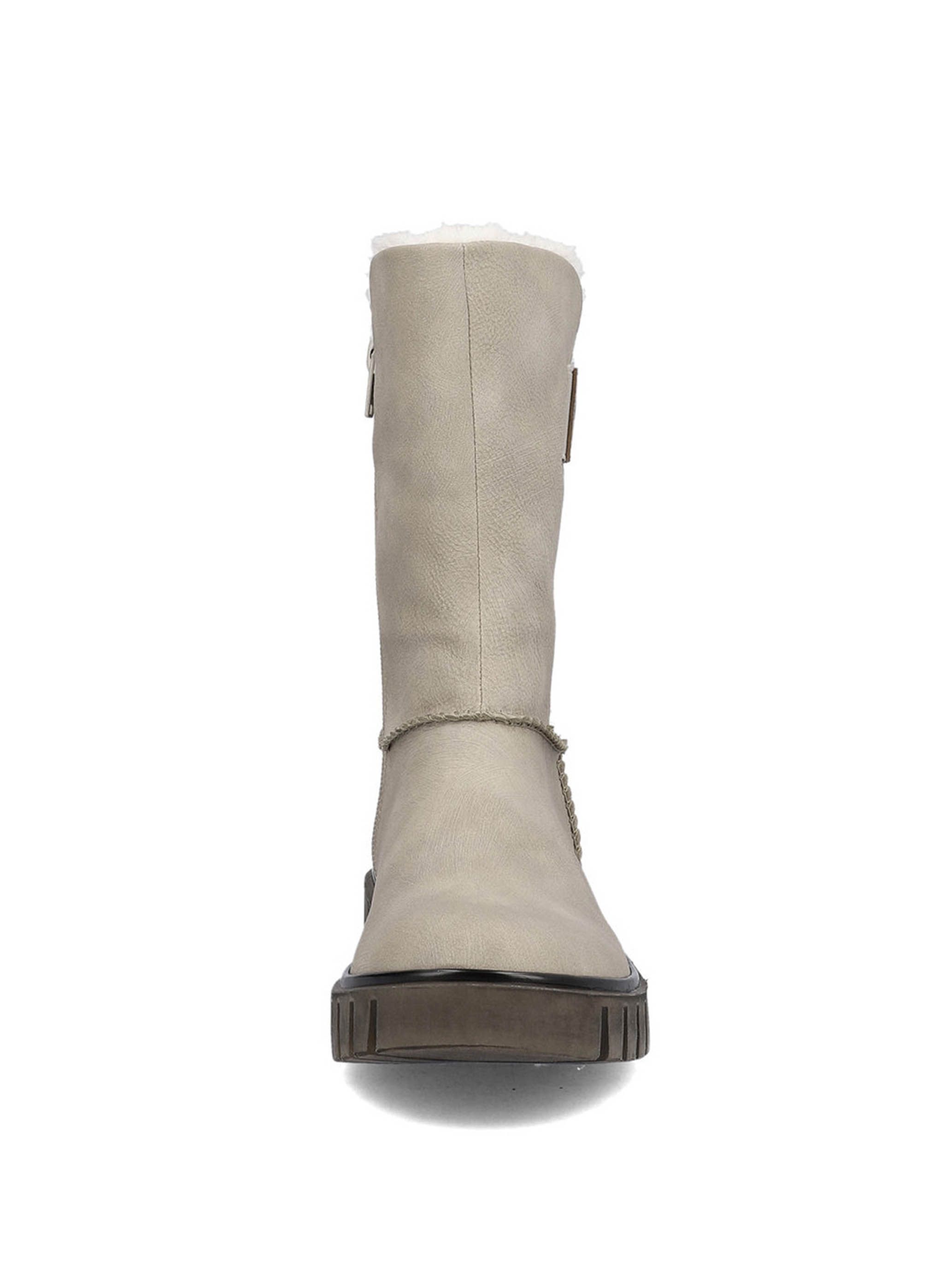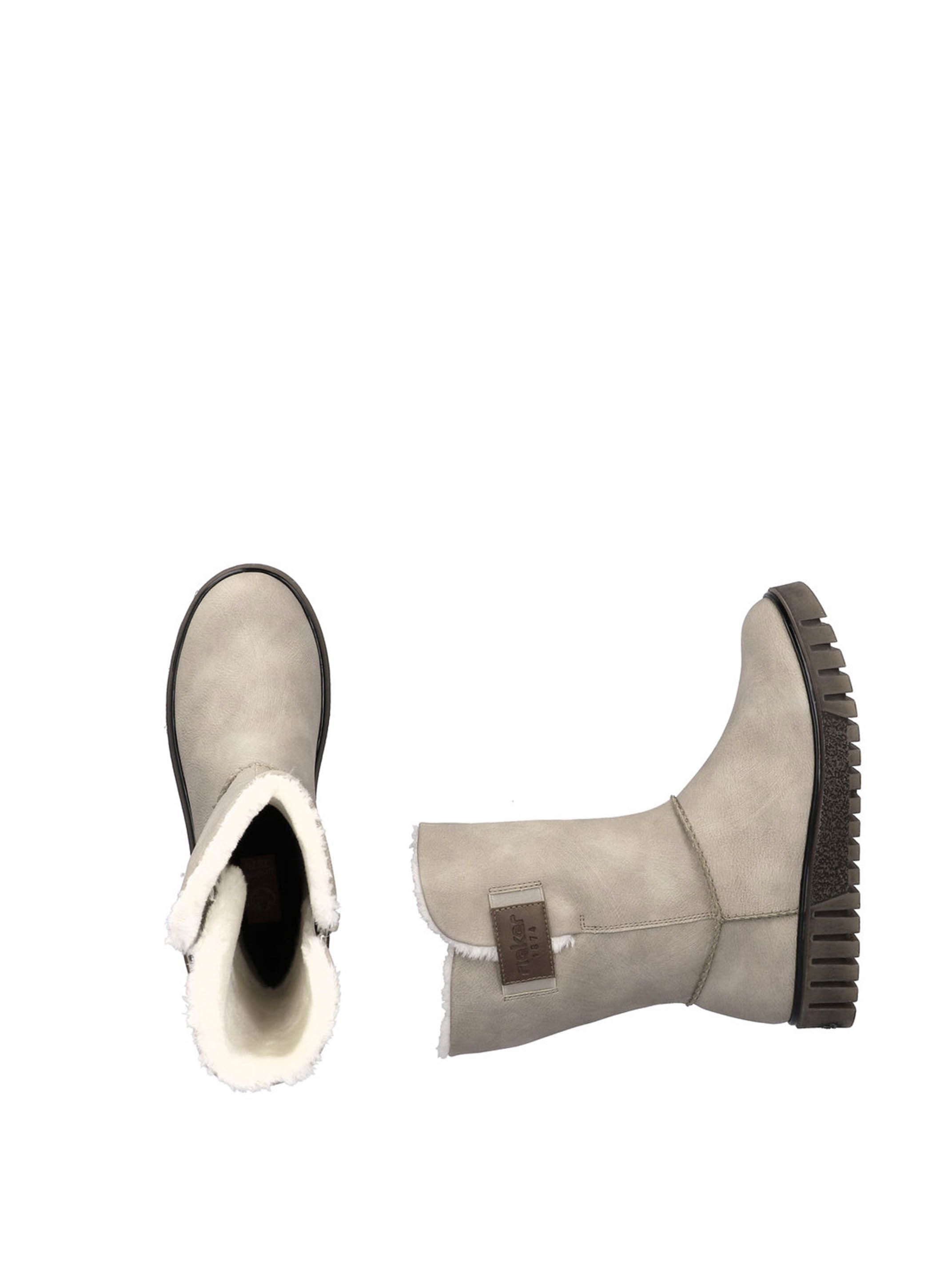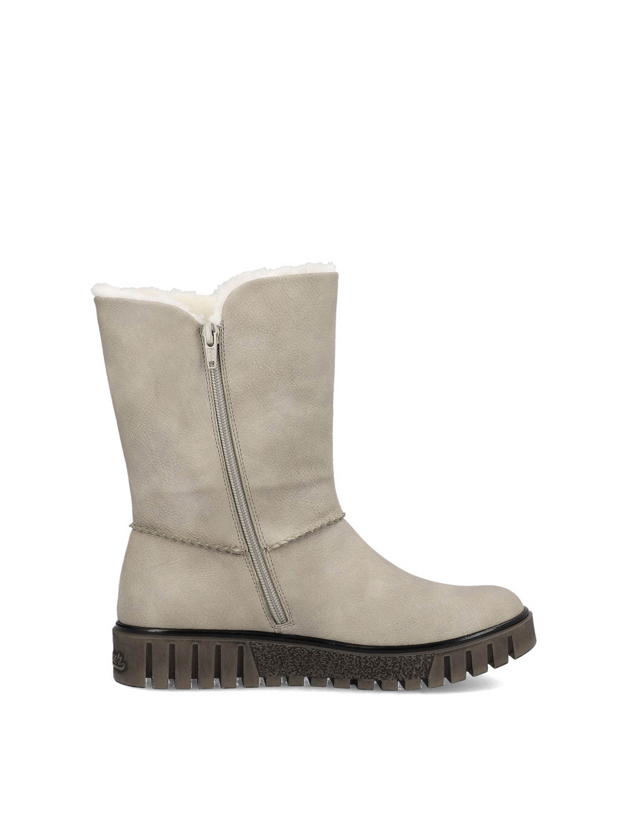 Полусапоги женские немецкого бренда Rieker. Верх изготовлен из искусственной кожи и текстильного материала бежевого цвета. Материал подкладки натуральная шерсть. Идеально подойдут на зиму и станут отличным завершением к Вашему гардеробу.