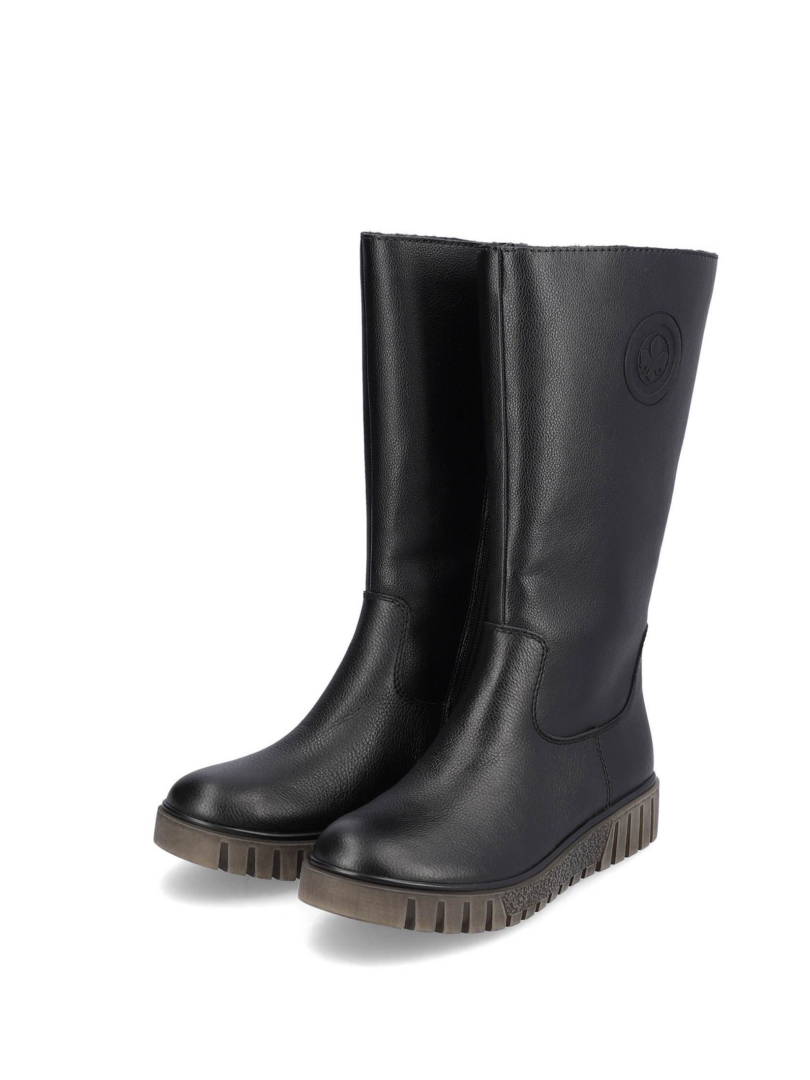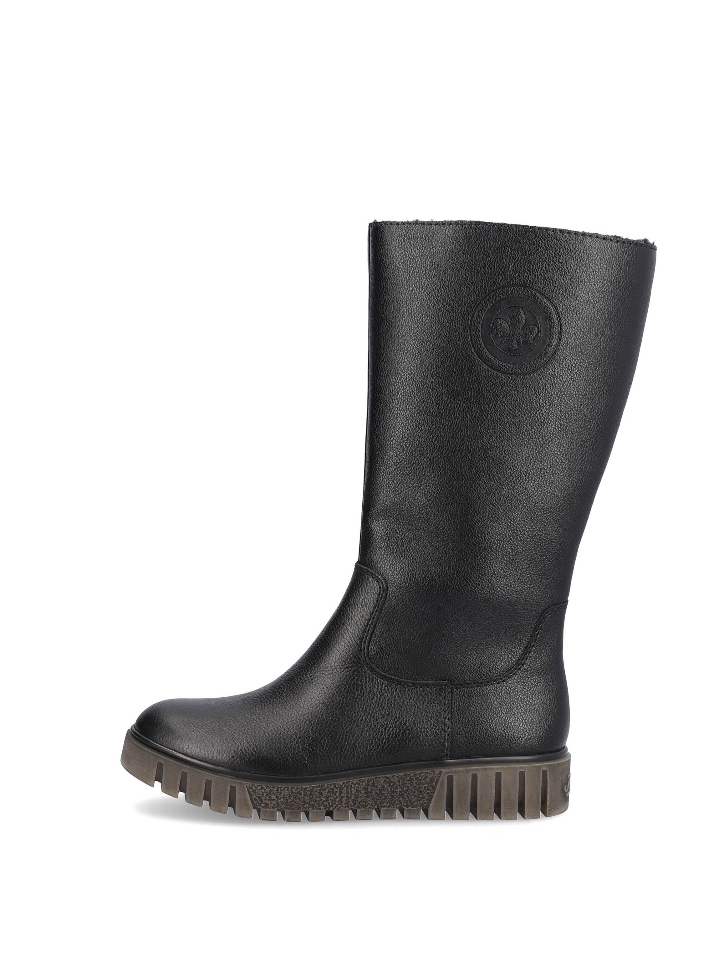 Рекомендуем рассмотреть черные женские сапоги на молнии от немецкого бренда Rieker, сочетающие в себе качество, комфорт, простой и современный дизайн.