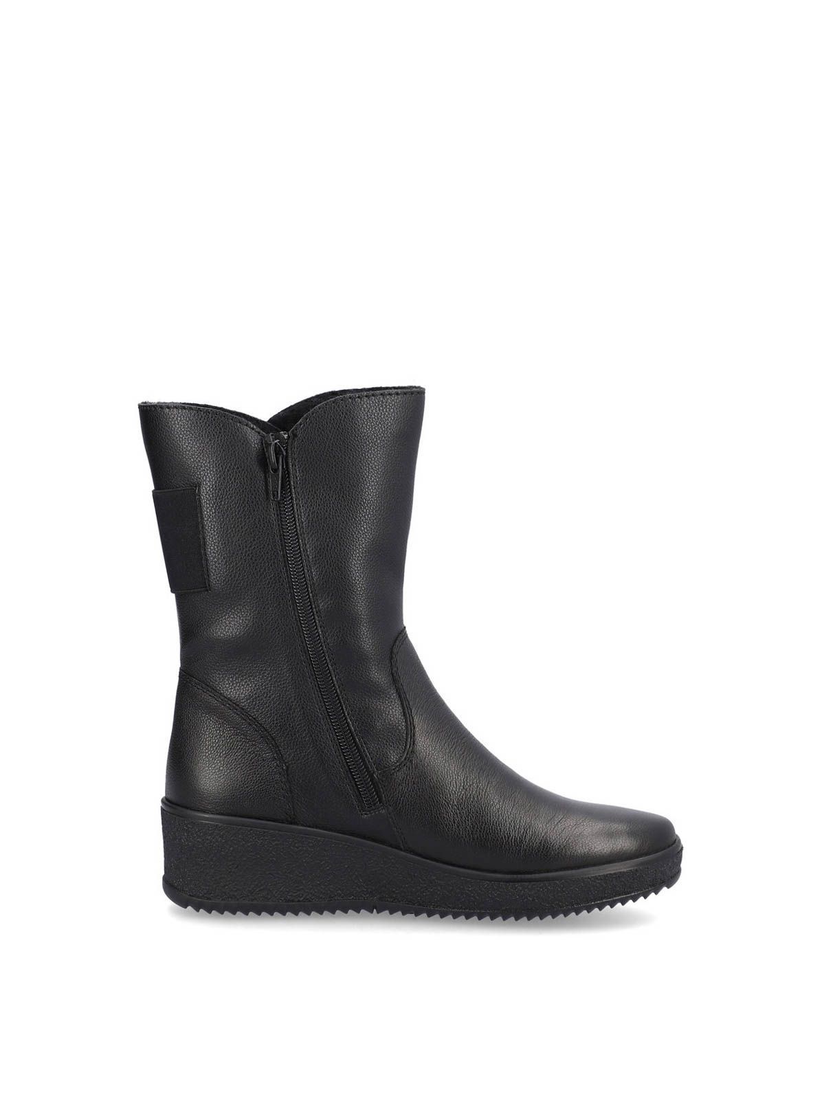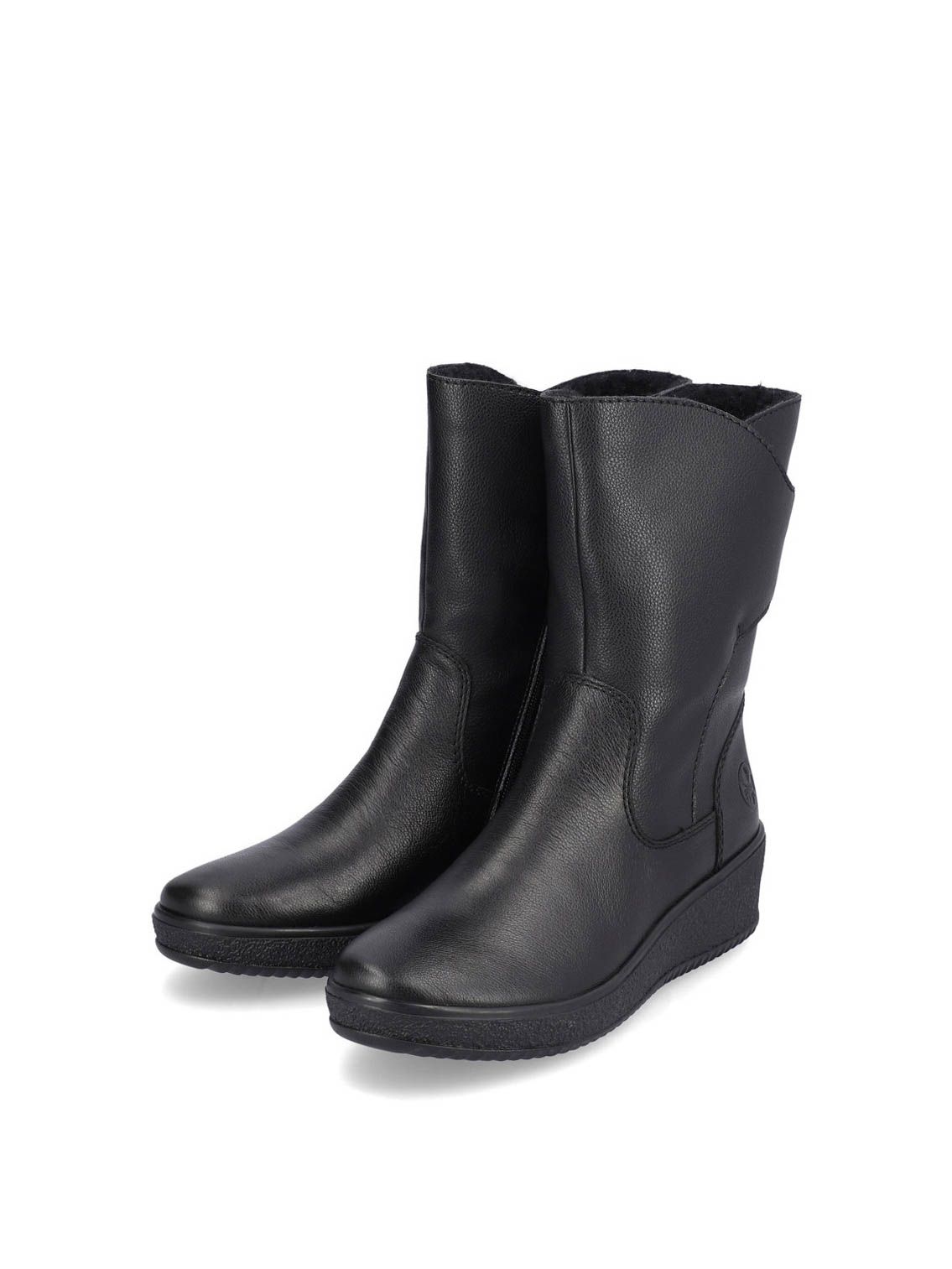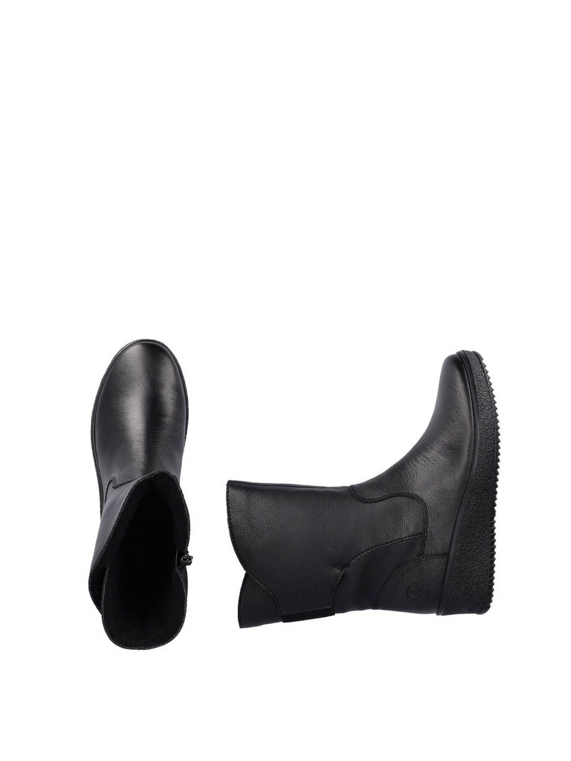Полусапоги женские немецкого бренда Rieker. Верх изготовлен из искусственной и натуральной кожи черного цвета. Материал подкладки натуральная шерсть. Идеально подойдут на зиму и станут отличным завершением к Вашему гардеробу.