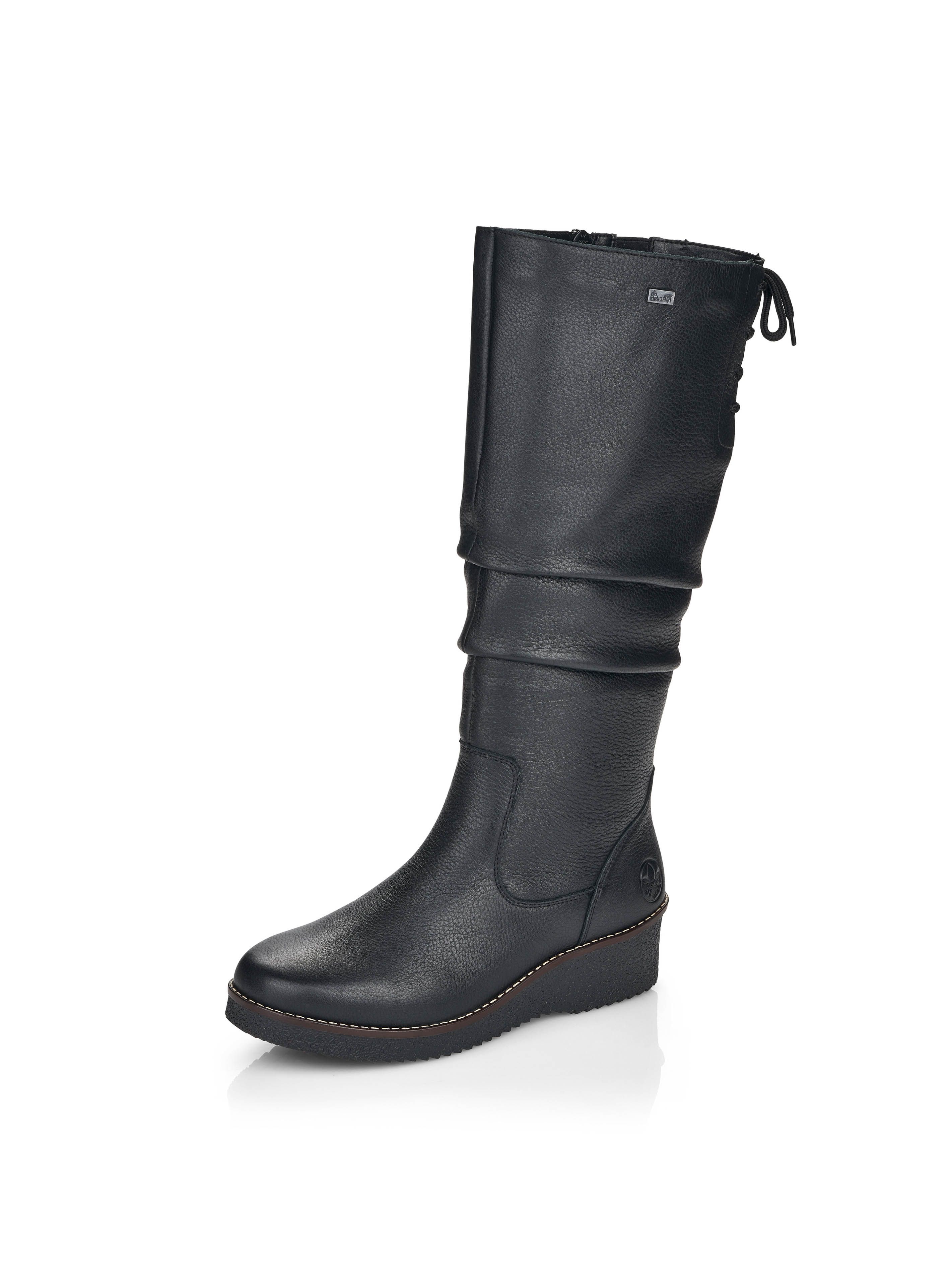 Рекомендуем рассмотреть черные женские сапоги на молнии от немецкого бренда Rieker, сочетающие в себе качество, комфорт, простой и современный дизайн.