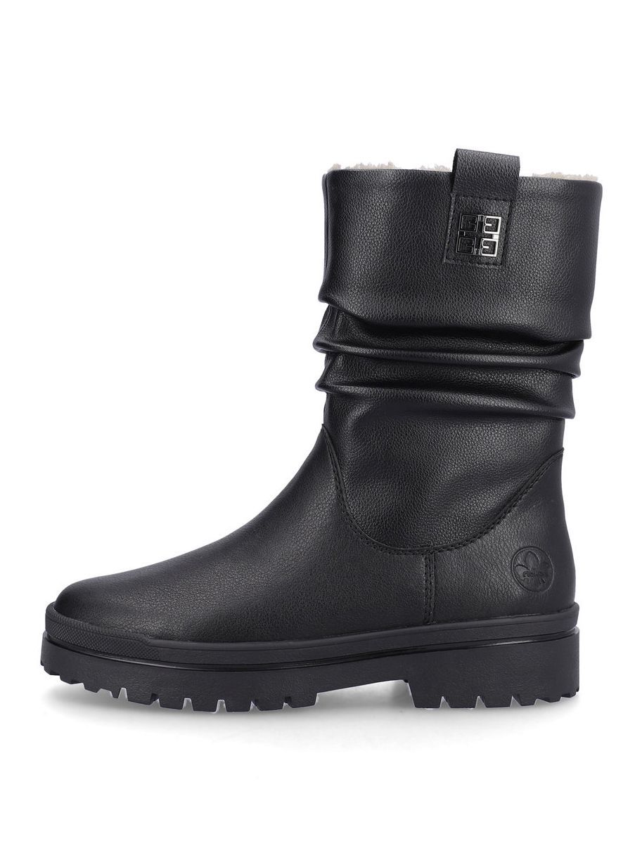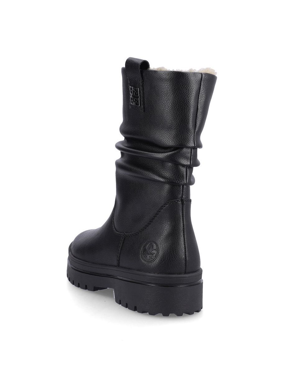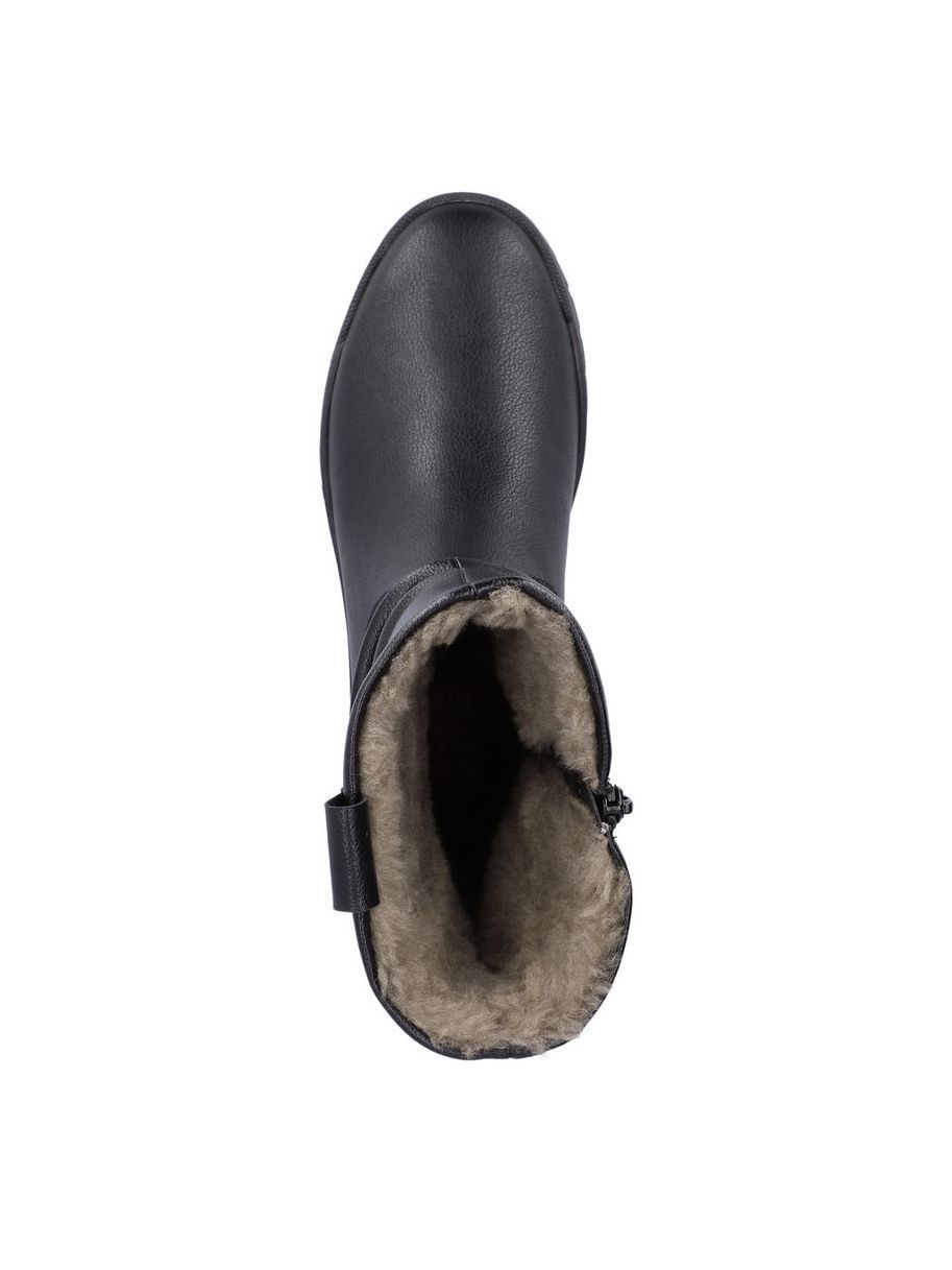 Полусапоги женские немецкого бренда Rieker. Верх изготовлен из искусственной и натуральной кожи черного цвета. Материал подкладки натуральный мех и искусственная шерсть. Идеально подойдут на зиму и станут отличным завершением к Вашему гардеробу.