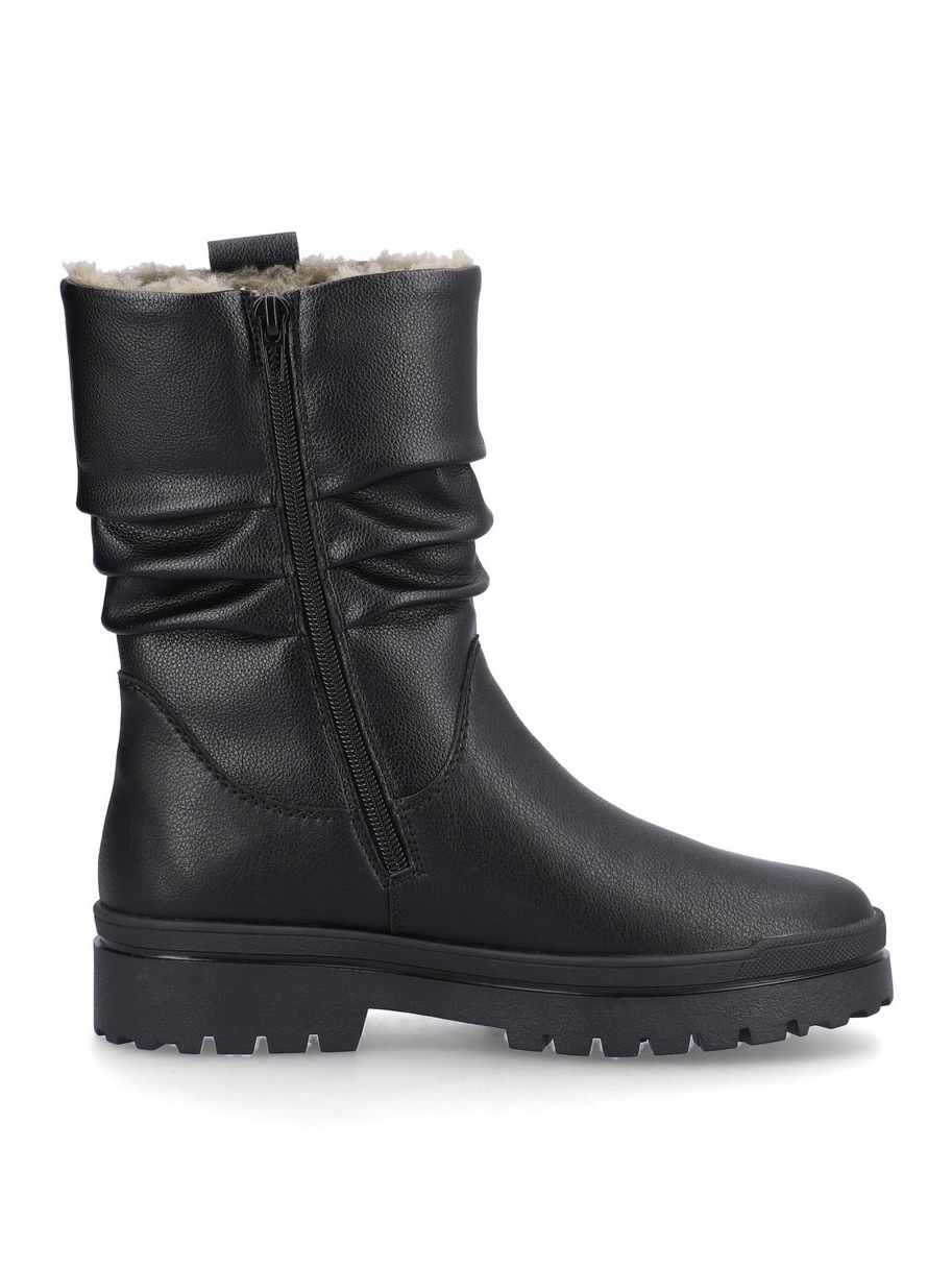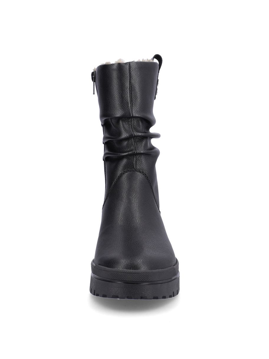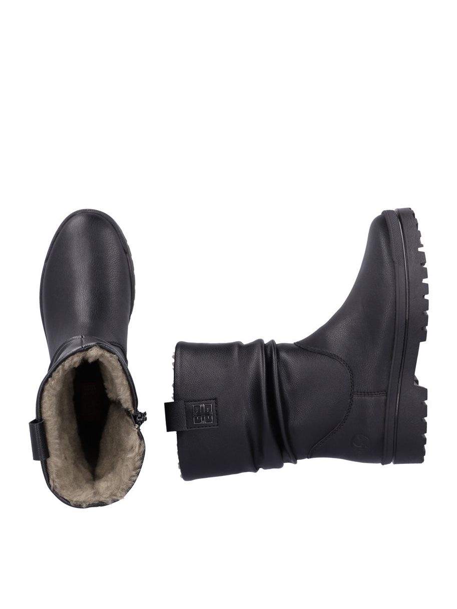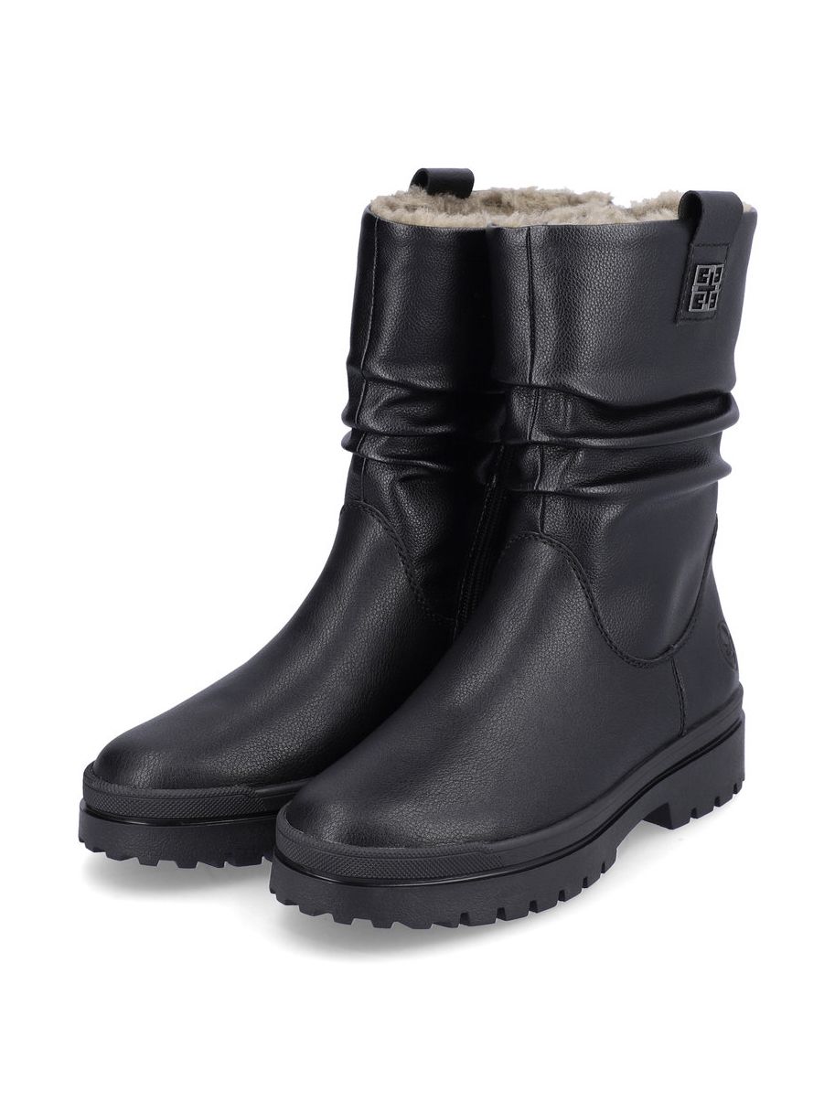 Полусапоги женские немецкого бренда Rieker. Верх изготовлен из искусственной и натуральной кожи черного цвета. Материал подкладки натуральный мех и искусственная шерсть. Идеально подойдут на зиму и станут отличным завершением к Вашему гардеробу.