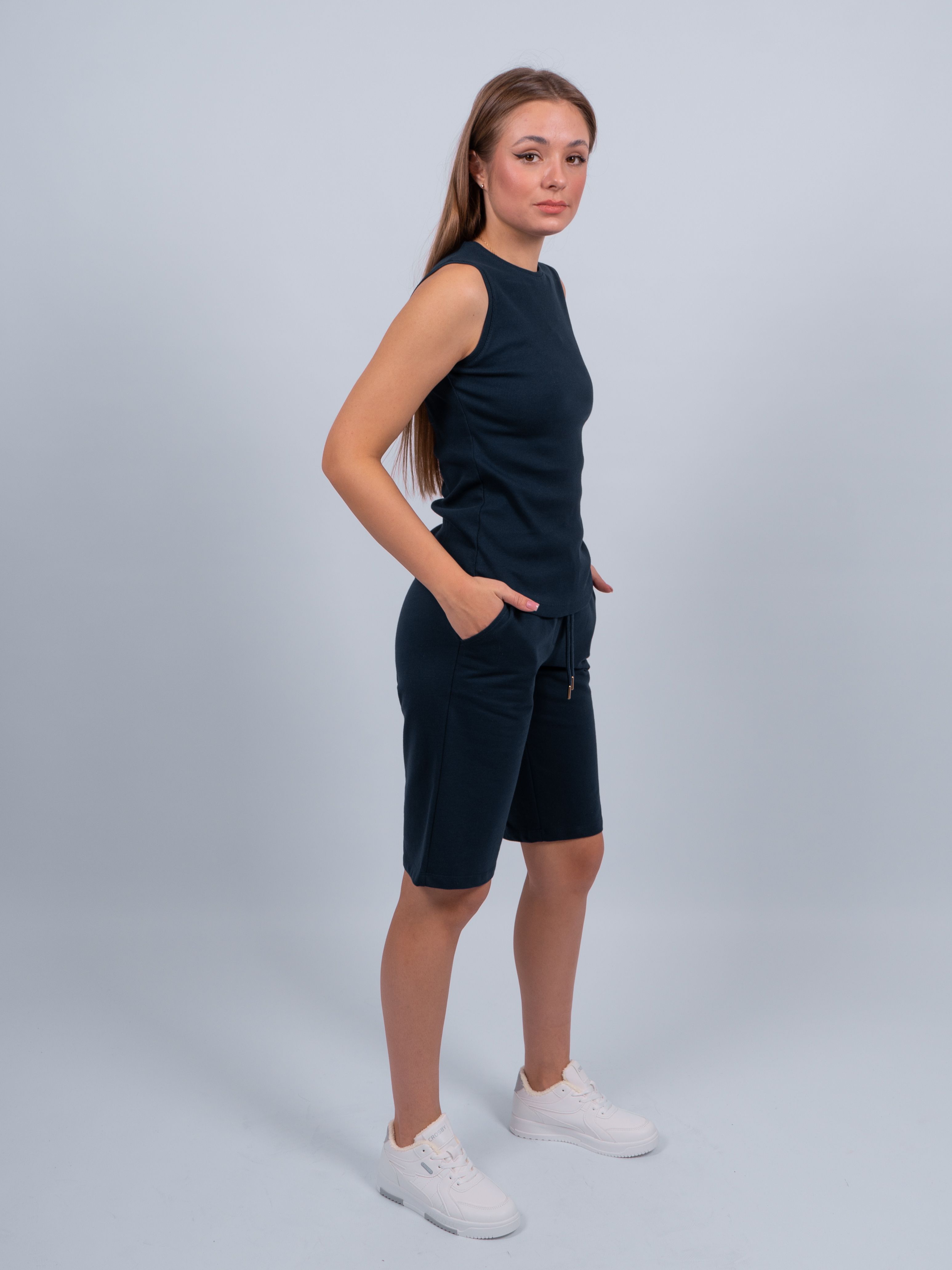 Стильные шорты женские прямые из 100% хлопка прекрасная основа для любого гардероба. Можно носить как повседневный базовый вариант, на работу, на учебу, либо для занятий спортом, в зале или на улице. Прямой крой делает образ более подтянутым и стройным. Комфортная длина чуть выше колена не стесняет движения и подходит для любого роста и фигуры. Шорты спортивные красиво подчеркивают силуэт, прекрасно сочетаются с туфлями, кроссовками, кедами, босоножками или шлепками.