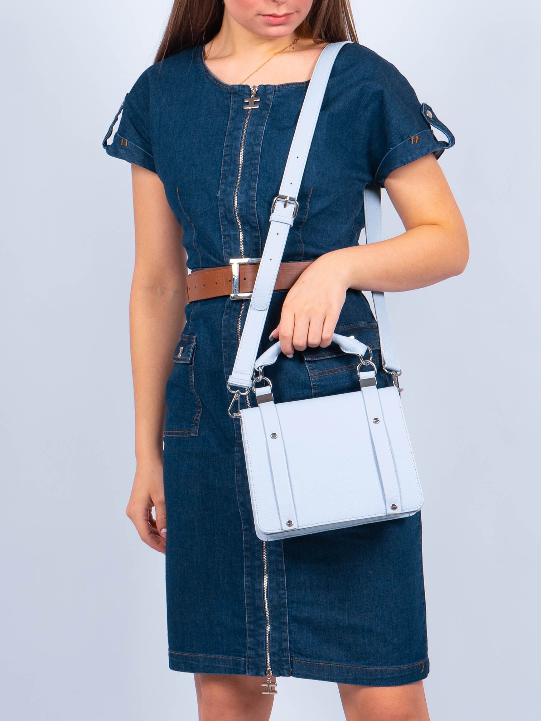 Сумка женская. Верх изготовлен из 100% экокожи голубого цвета. Материал подкладки текстиль (100% полиэстер). Станет отличным завершением Вашего гардероба.