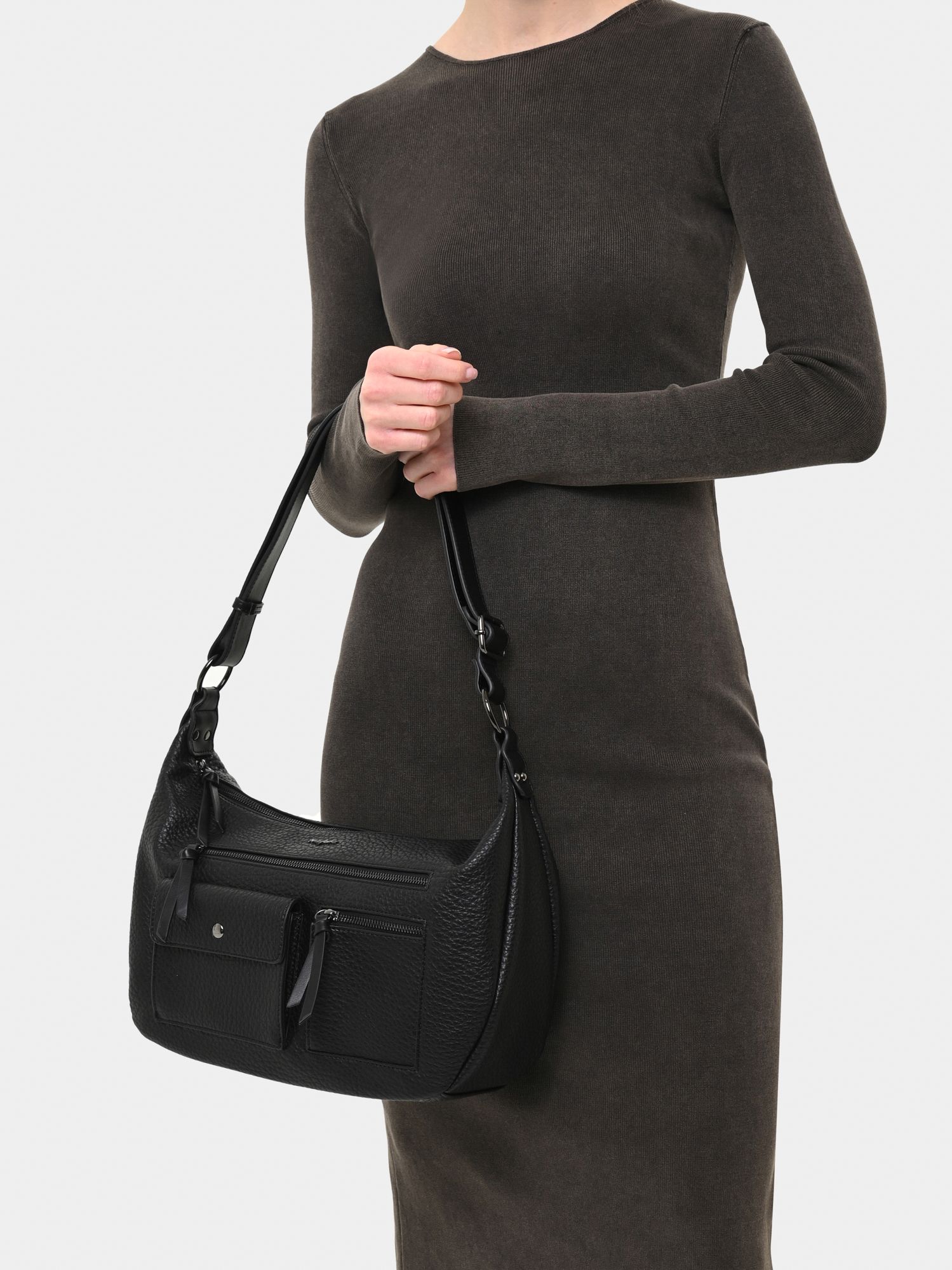 Сумка женская от бренда Portofiano. Верх изготовлен из 100% экокожи черного цвета. Материал подкладки текстиль (100% полиэстер). Станет отличным завершением Вашего гардероба.